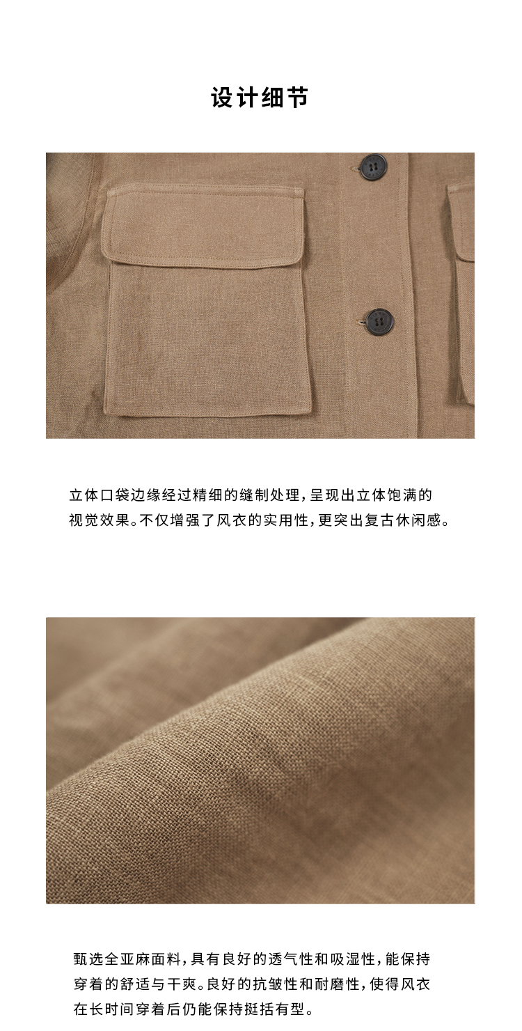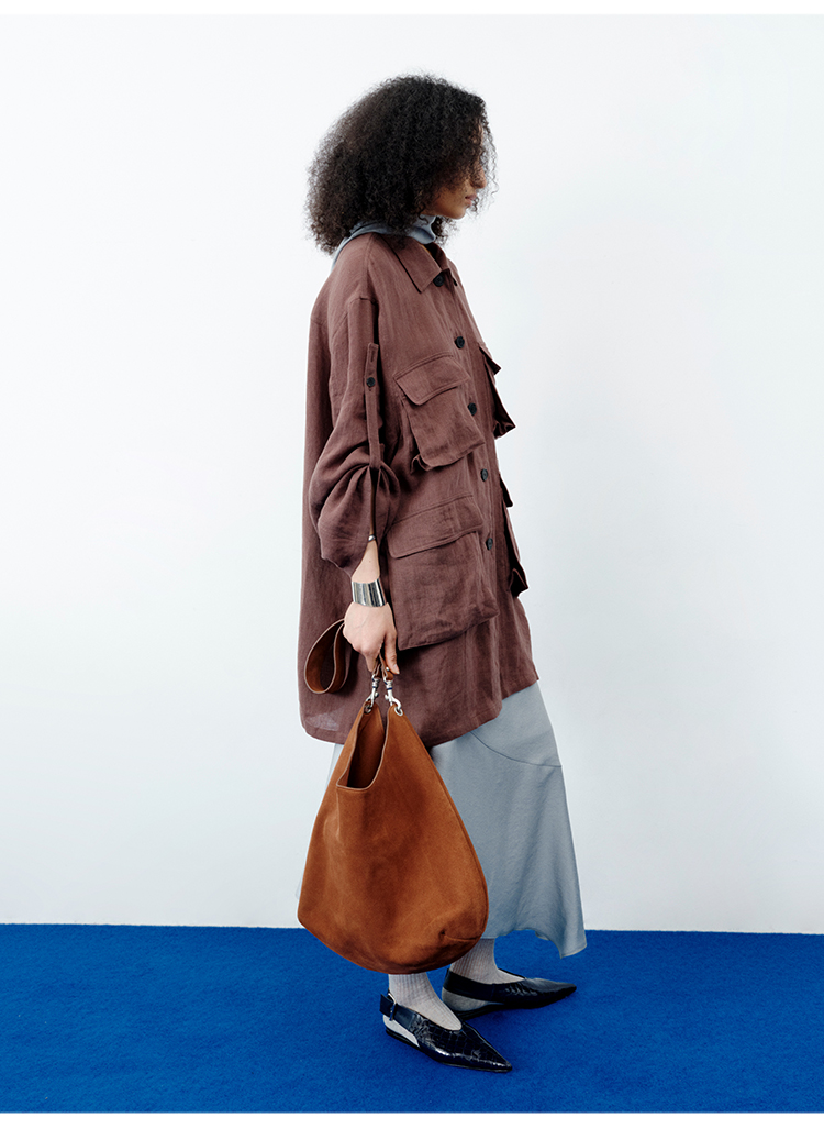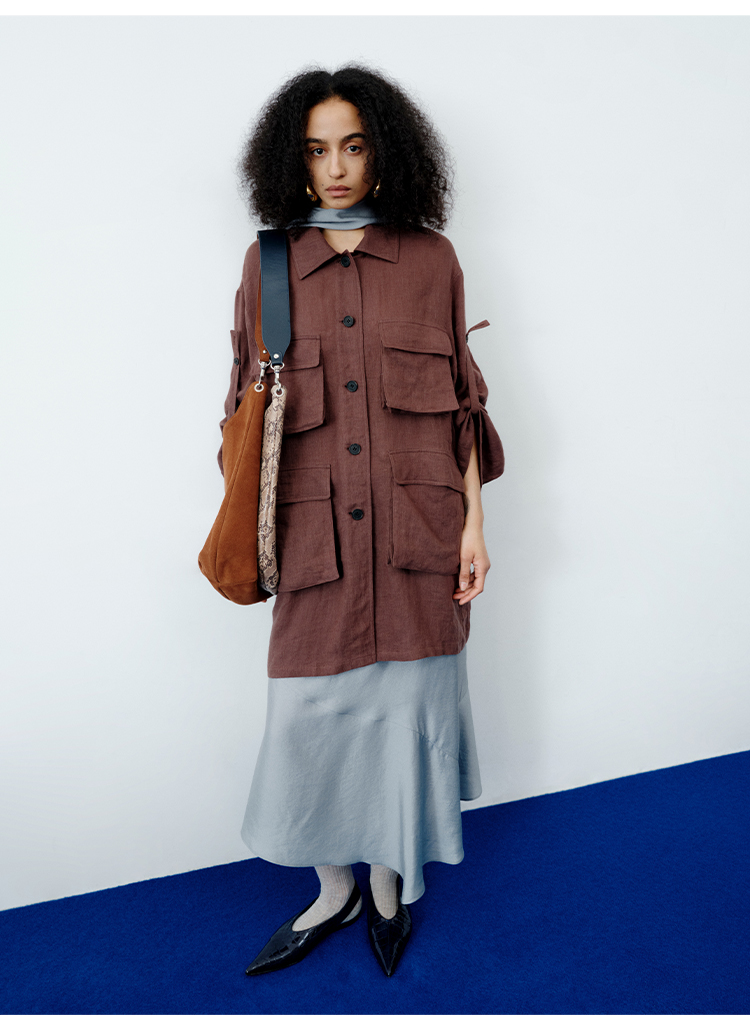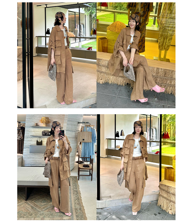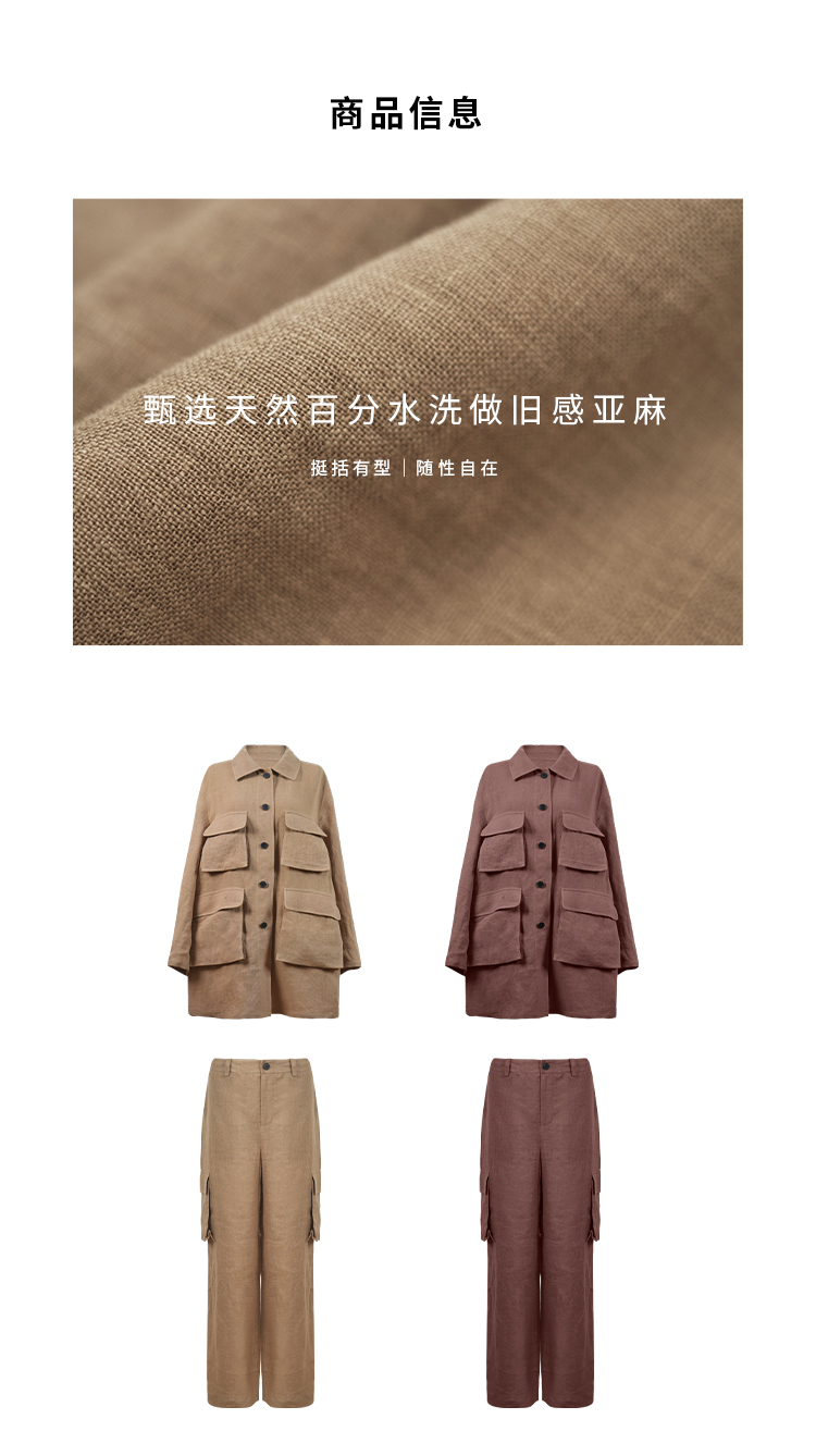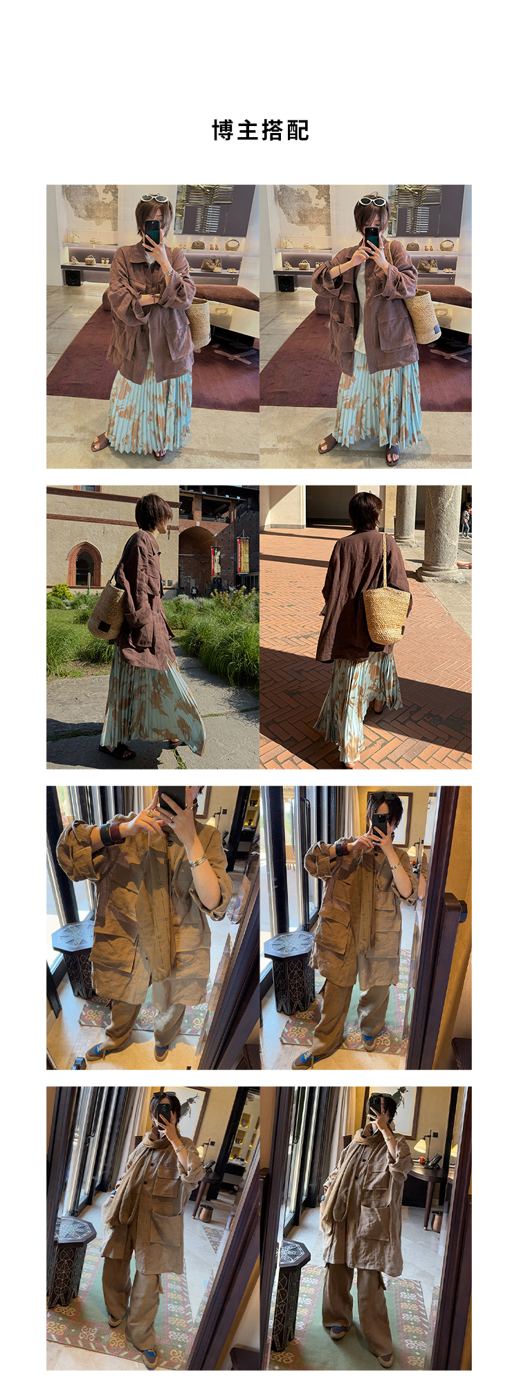 HIDEMI 水洗做旧感亚麻立体口袋猎装廓形薄外套阔腿裤两件套套装