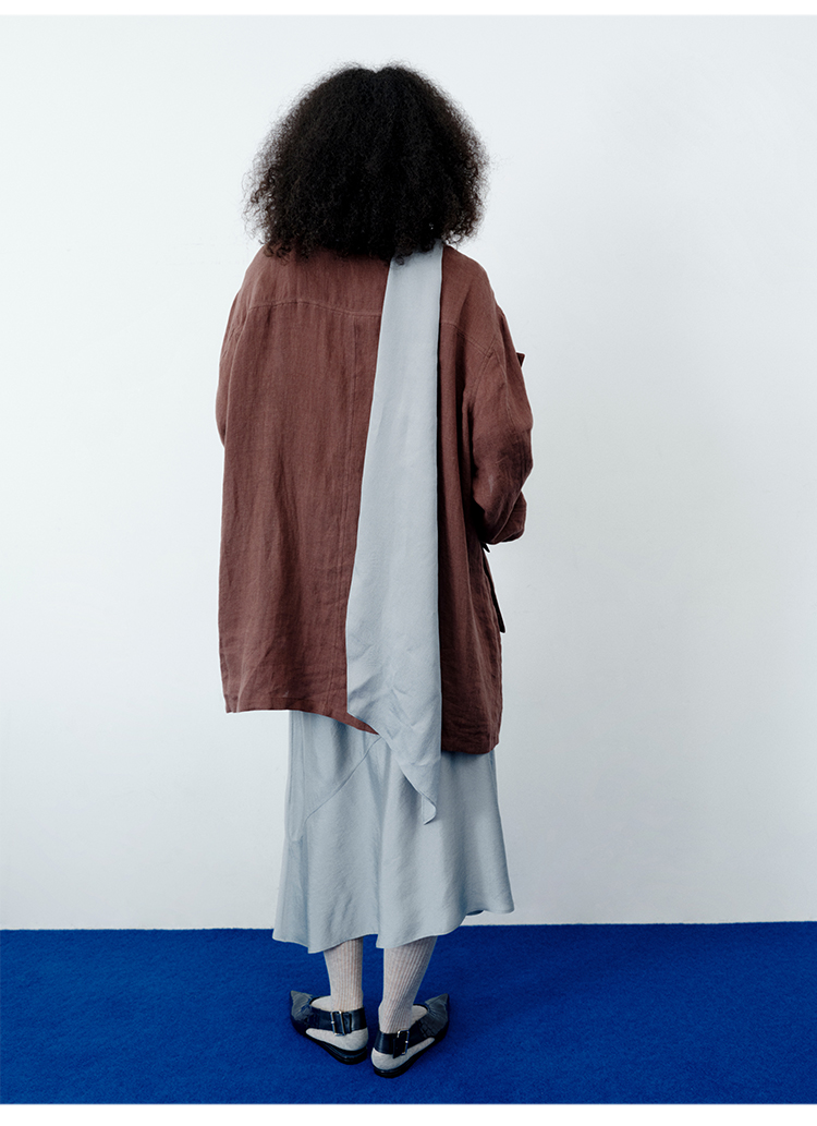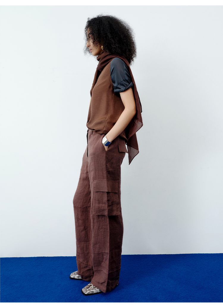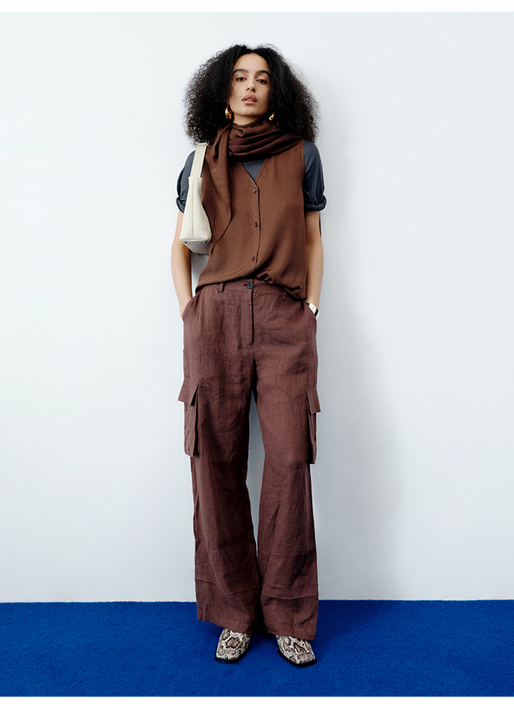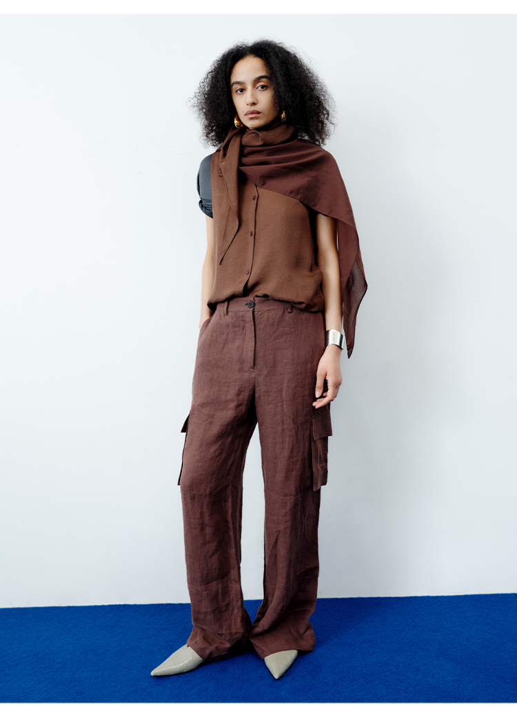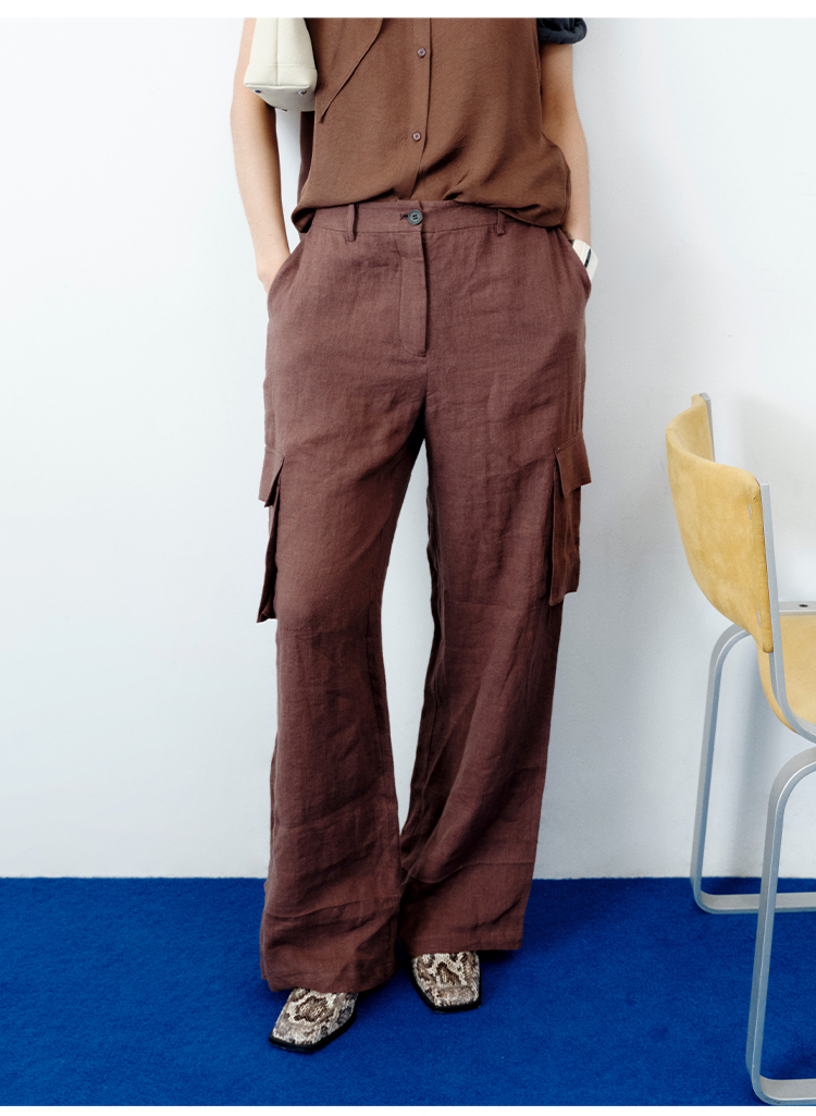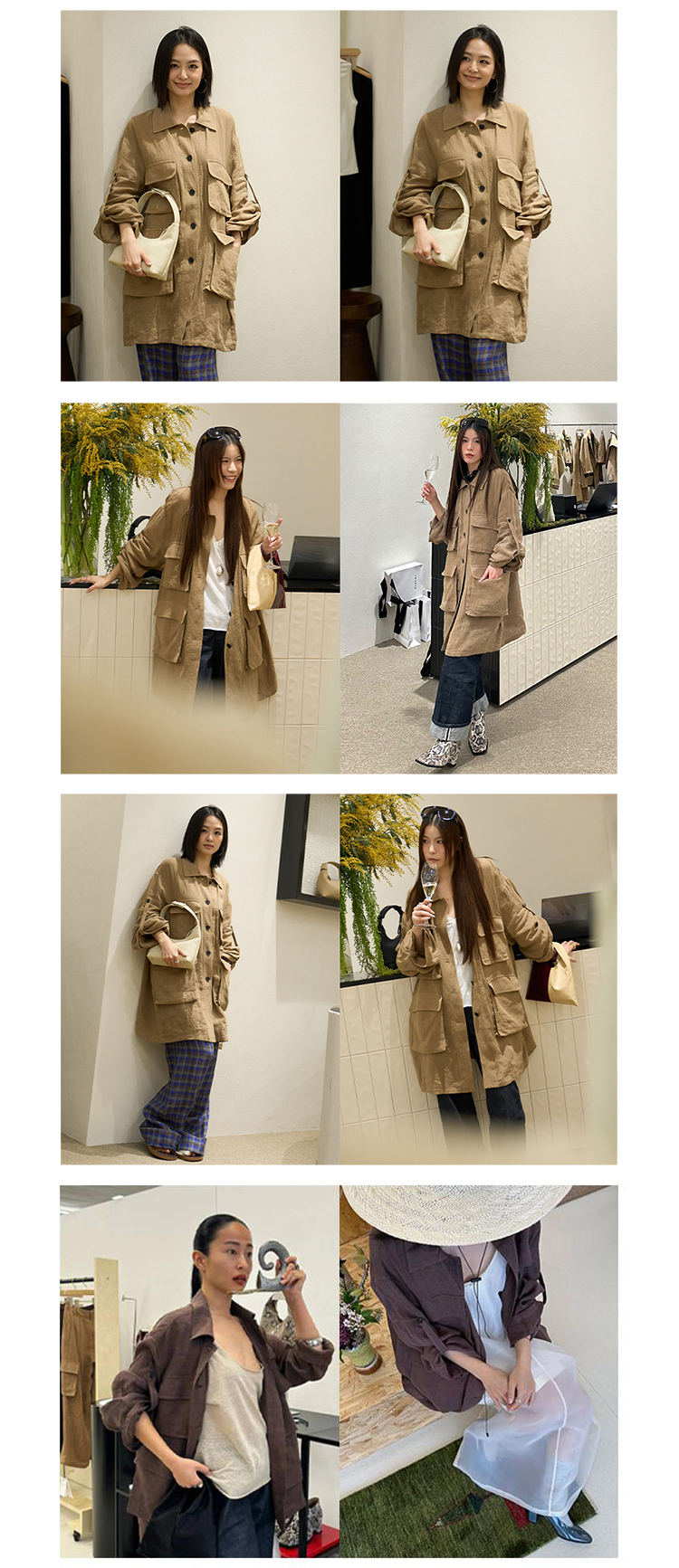 HIDEMI 水洗做旧感亚麻立体口袋猎装廓形薄外套阔腿裤两件套套装