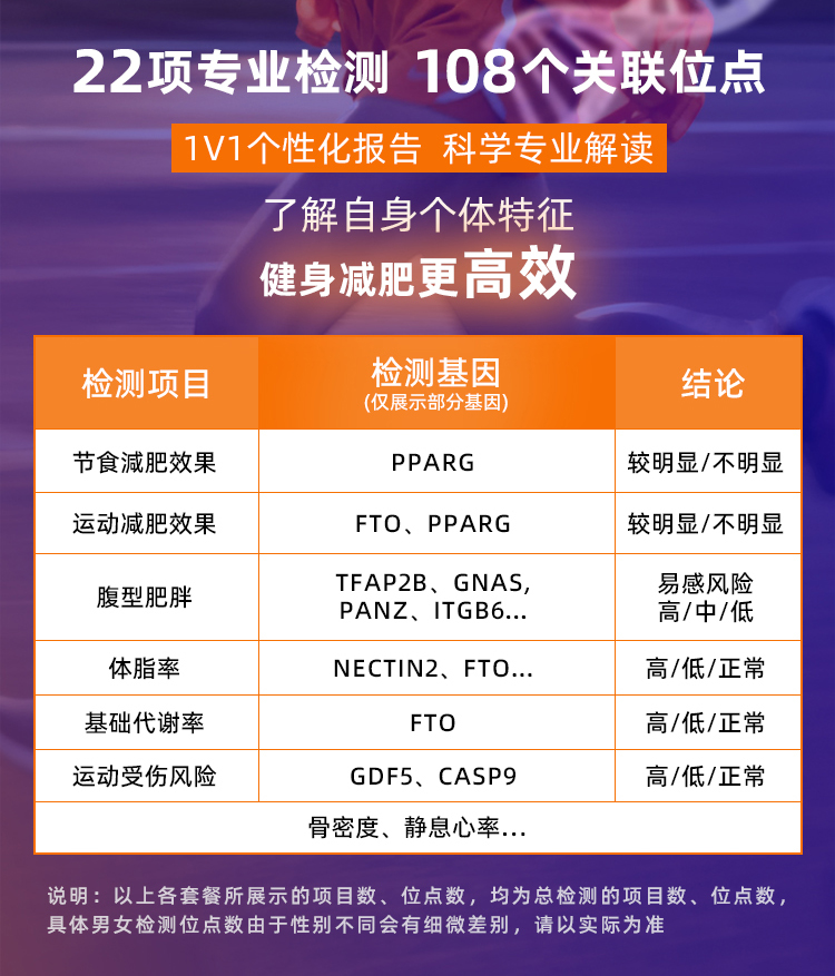 基因宝dna基因检测套餐运动健康体质体重管理受伤风险评估