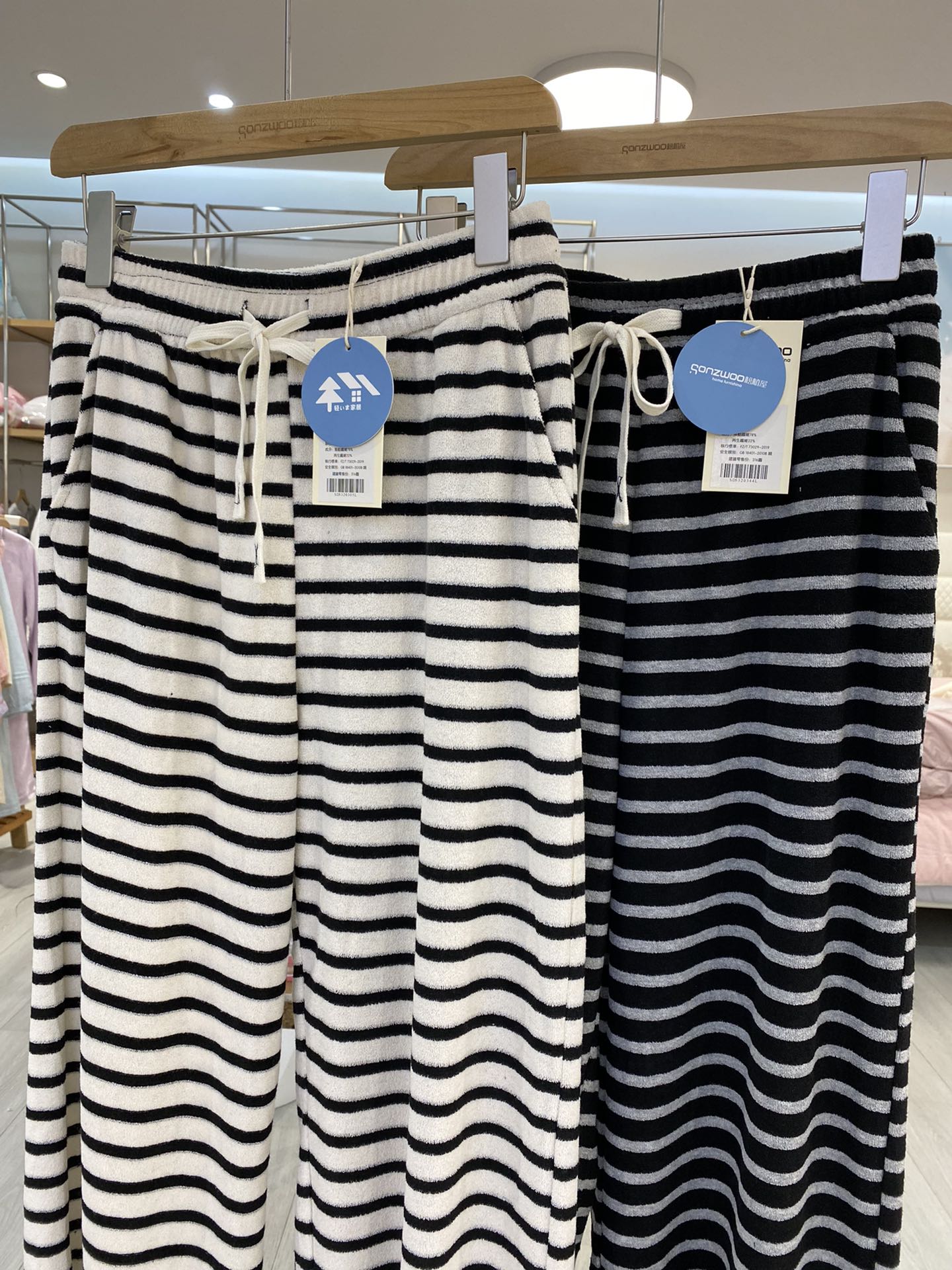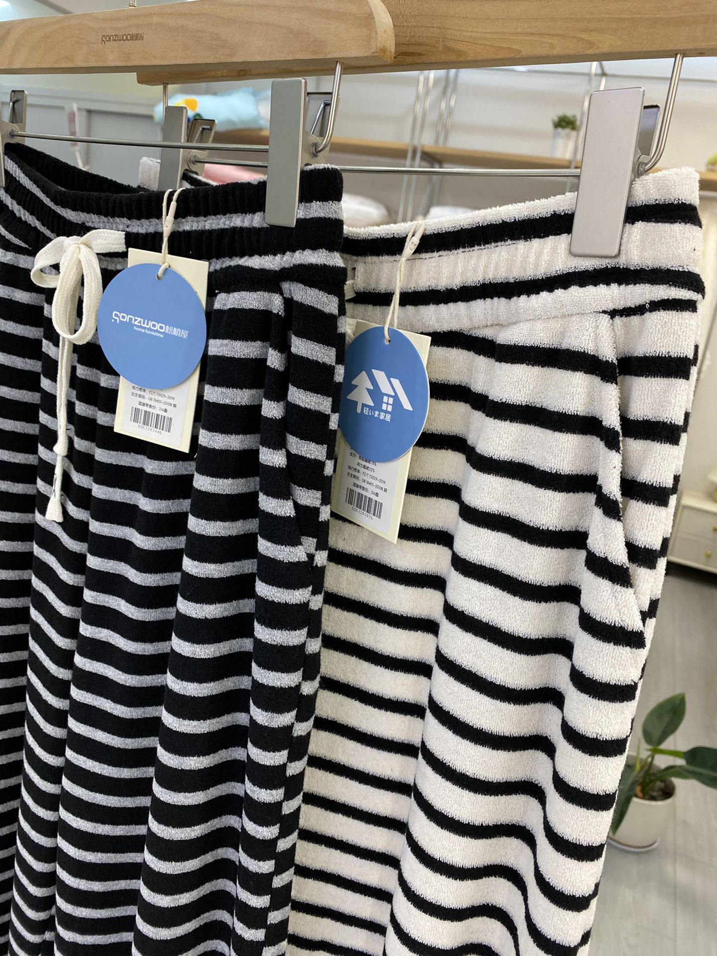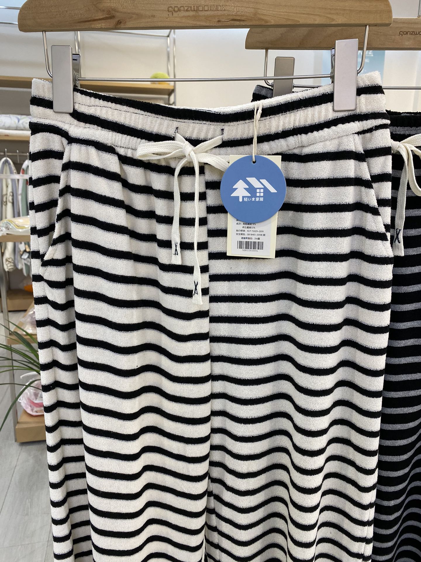 👖 软糯绒感面料,78%聚酯纤维+22%再生纤维,亲肤又有质感,穿上就像被云朵包裹~ 经典条纹设计,简约不单调,慵懒随性还特别显腿长!