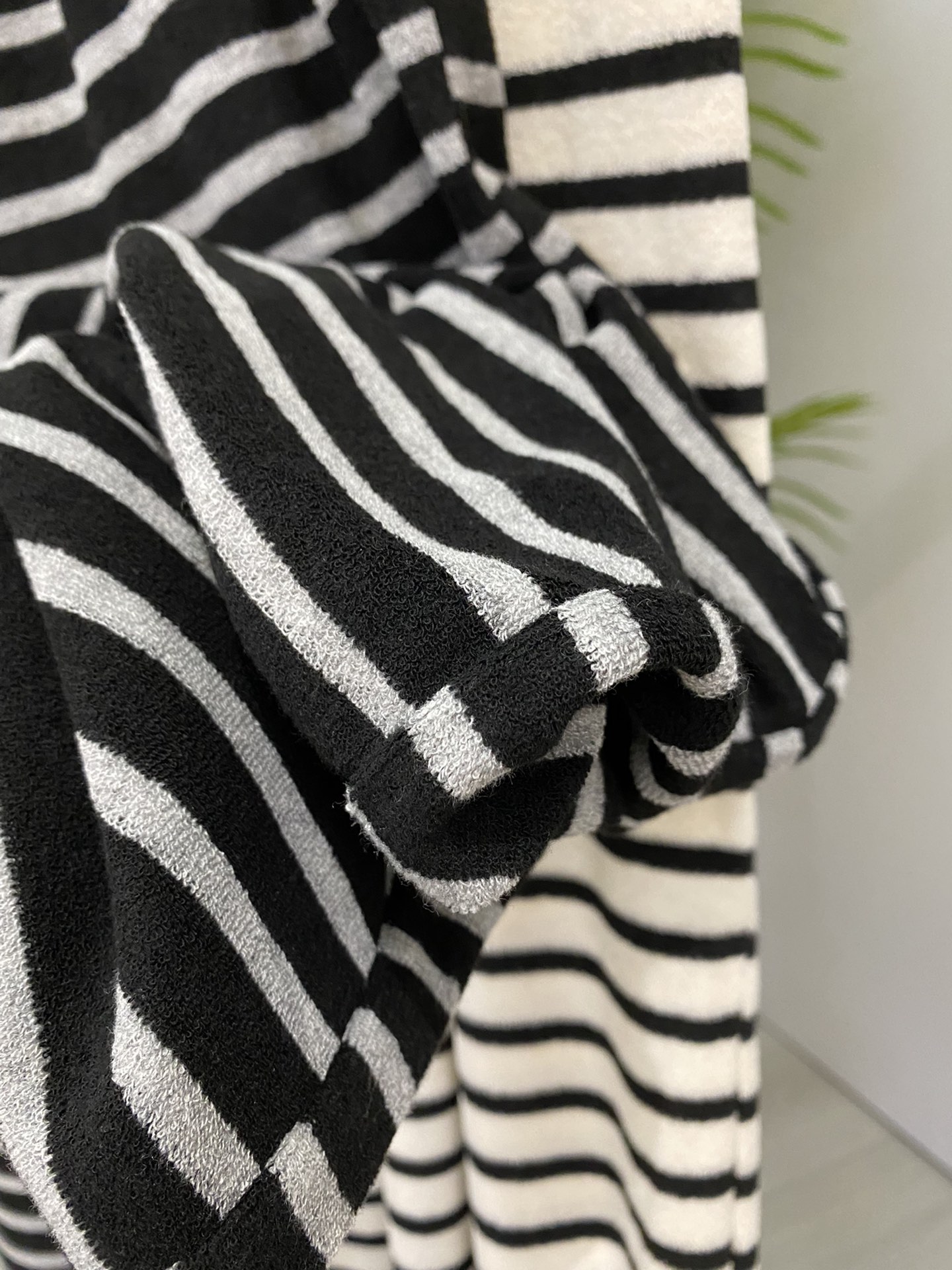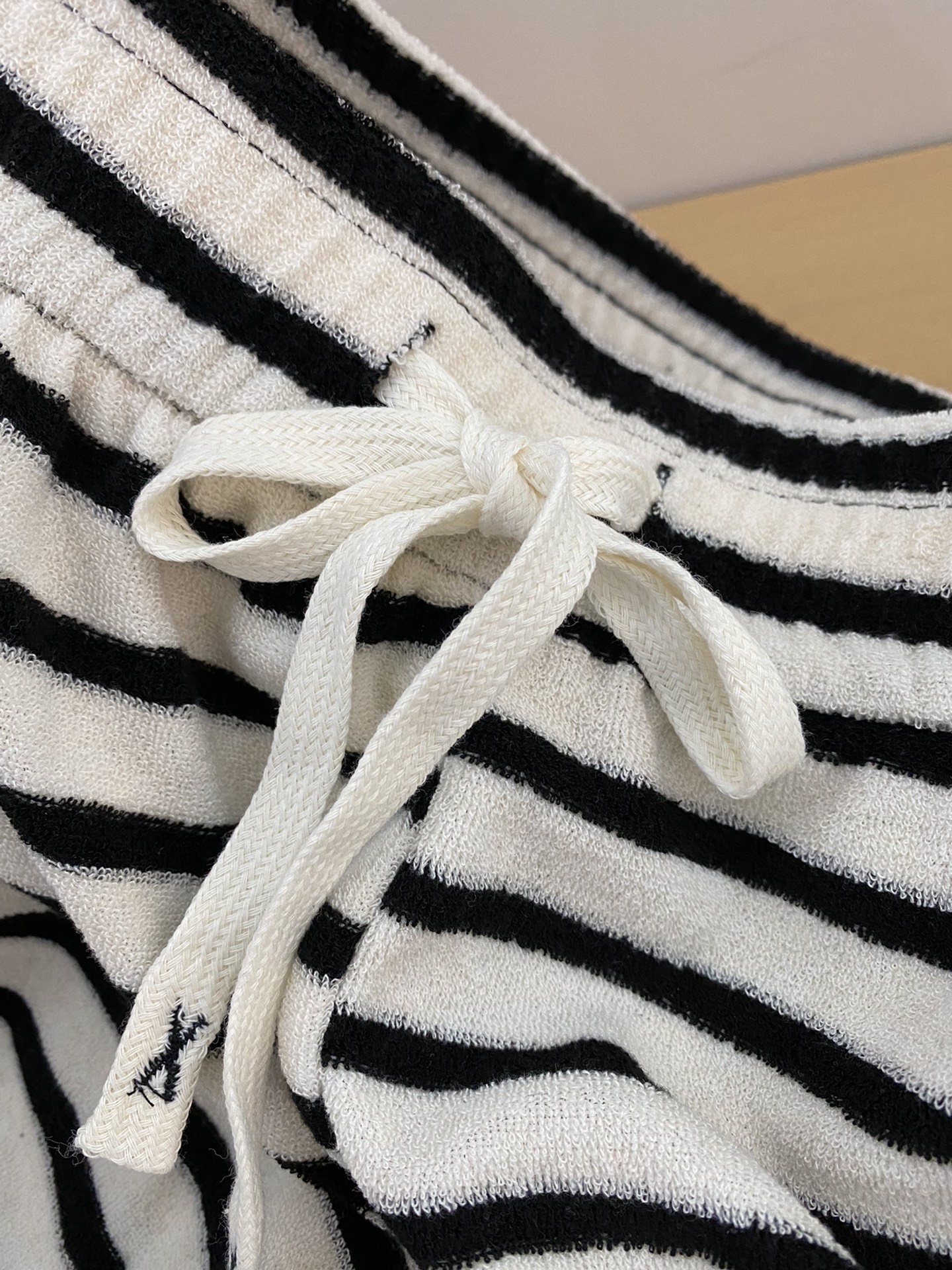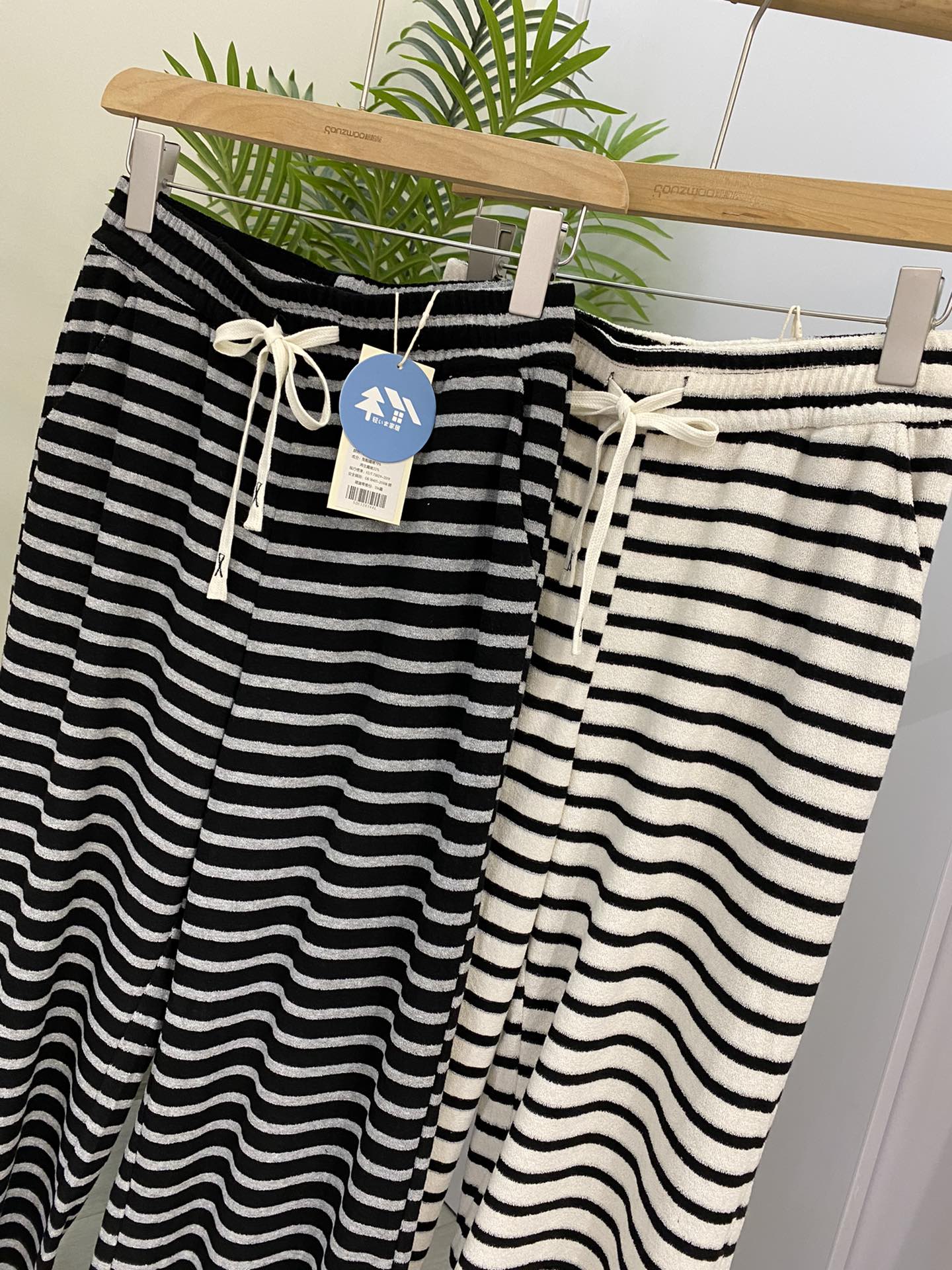 👖 软糯绒感面料,78%聚酯纤维+22%再生纤维,亲肤又有质感,穿上就像被云朵包裹~ 经典条纹设计,简约不单调,慵懒随性还特别显腿长!