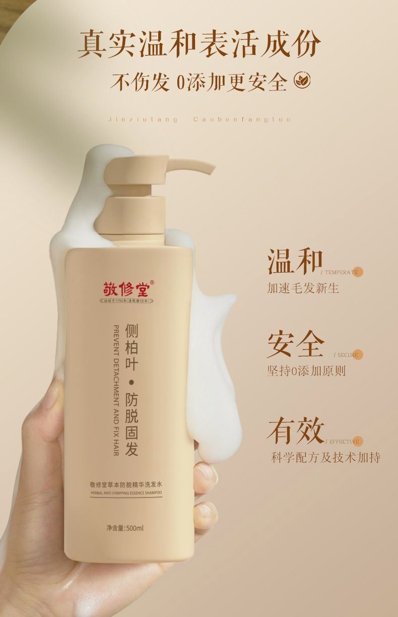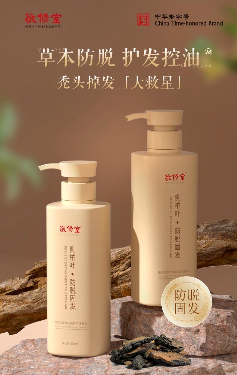 【新品上线 买2瓶送护发素1瓶】敬修堂侧柏叶草本防脱发固发洗发水500ml大瓶装 去屑官方正品