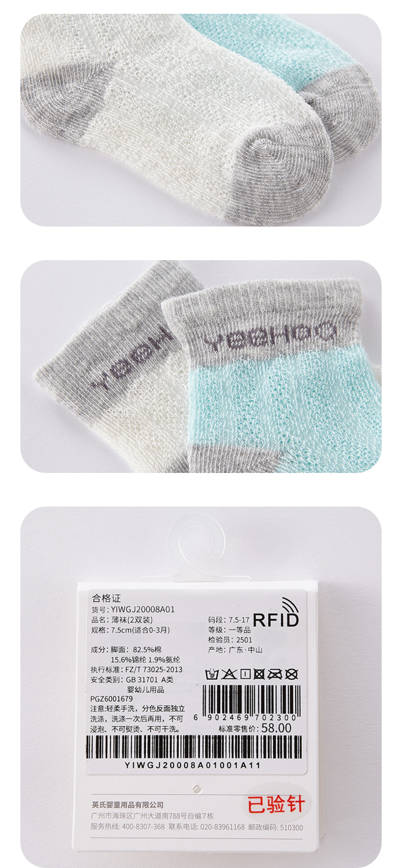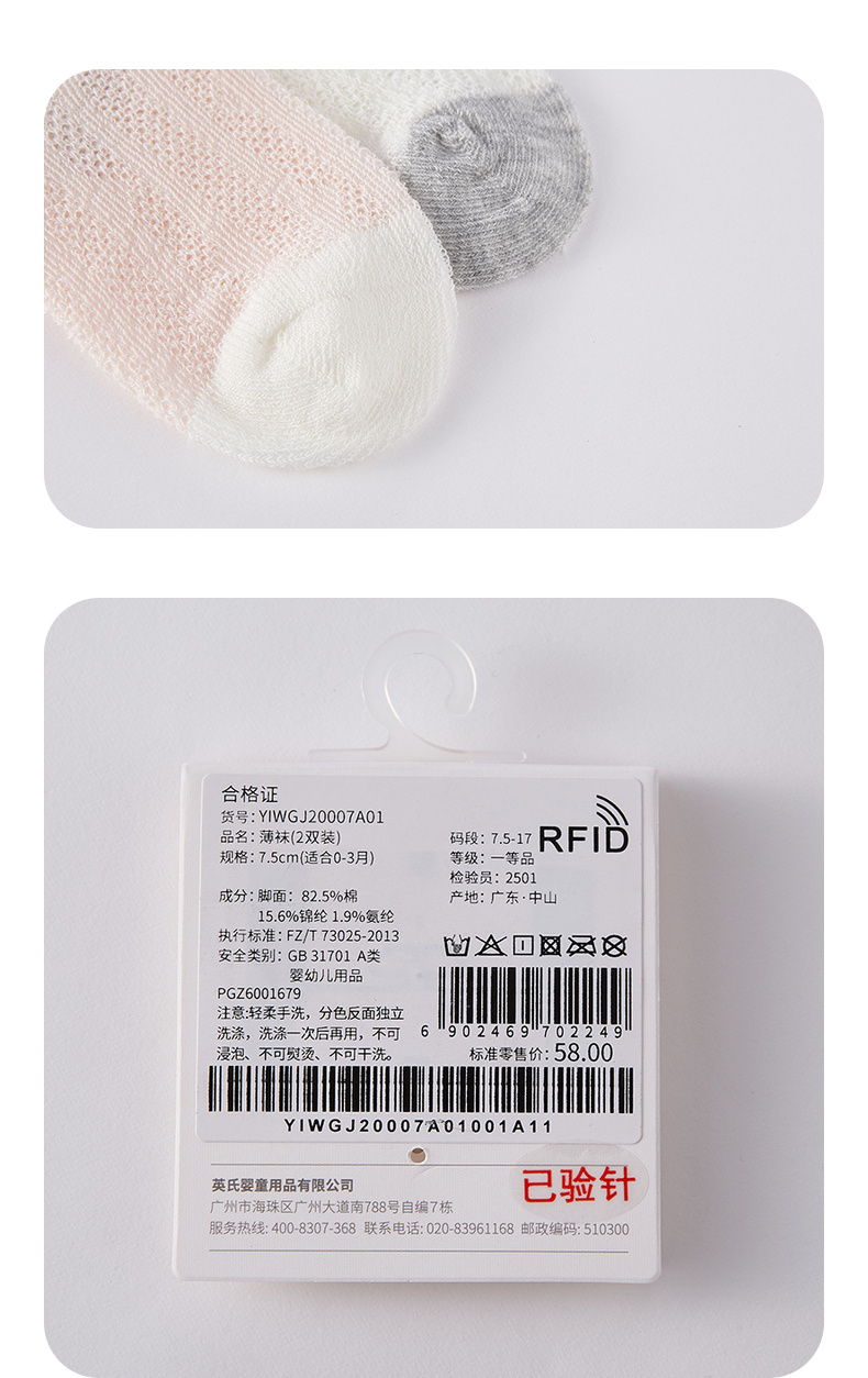 英氏宝宝春夏中筒透气网眼薄袜子2双YIWGJ20007A01 YIWGJ20008A01