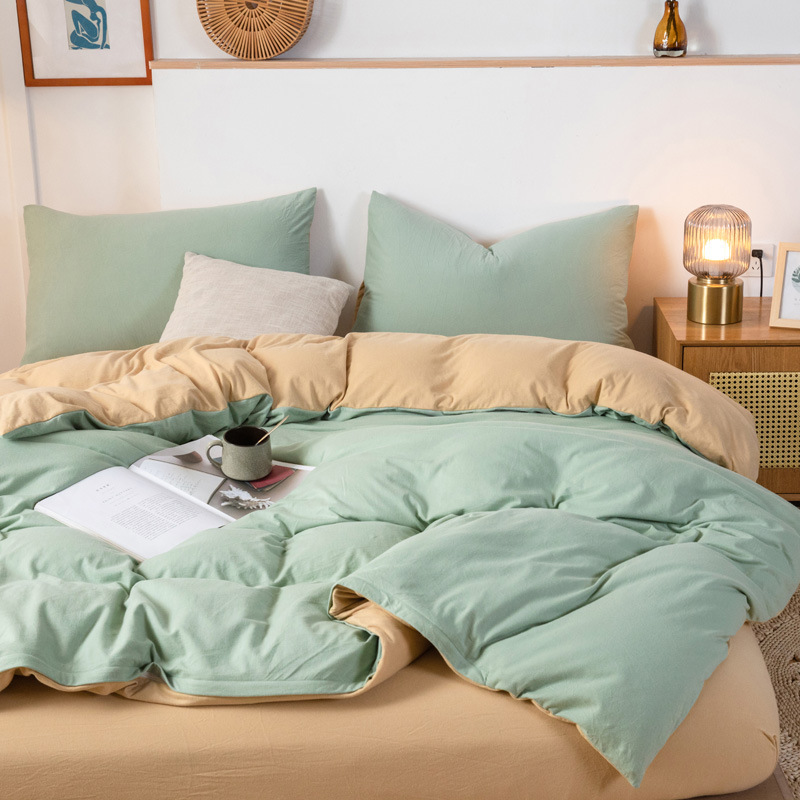 【天竺棉双拼四件套】纯色针织棉四件套双拼天竺棉床品套件柔软针织件套