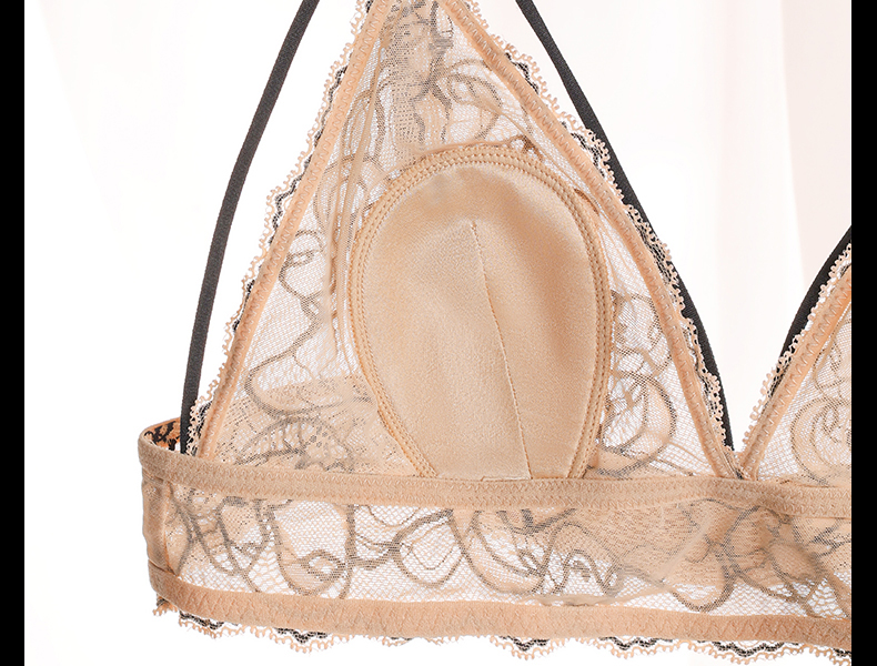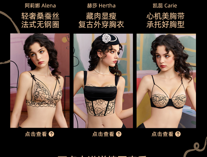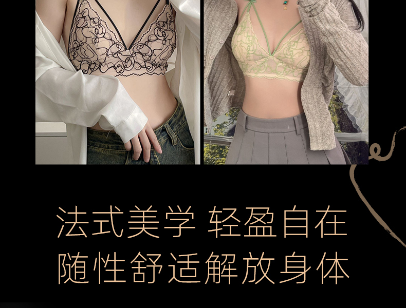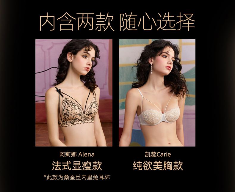 好奇蜜斯法式内衣女士蕾丝性感文胸罩套装新款薄款无钢圈三角杯黑新款-阿莉娜