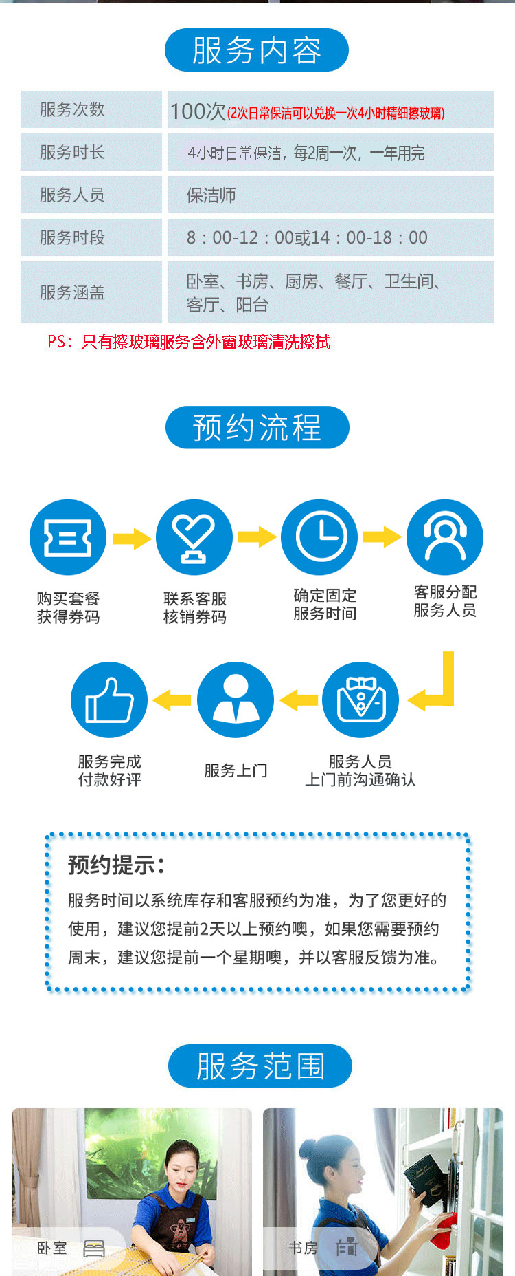 (每张券仅派1个保洁员,一次性可多张券叠加使用,例如:若需要2个保洁员同时服务,可使用2张券同时预约)