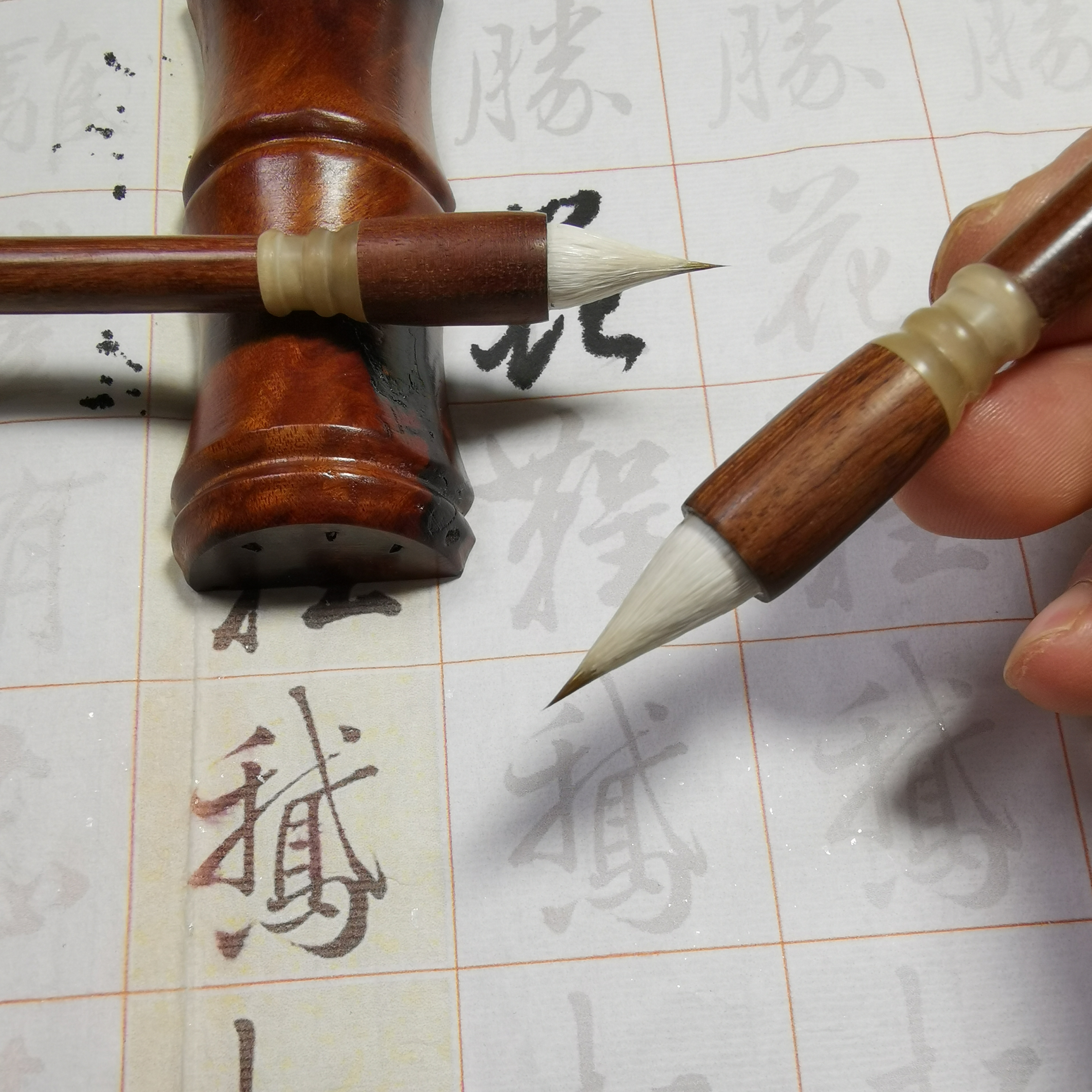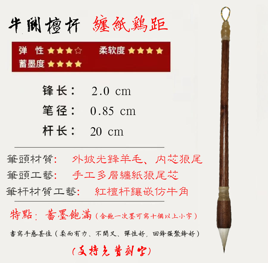 【牛斗檀杆.缠纸鸡距】含墨饱满 书写手感甚佳 不分叉 回锋聚锋好
