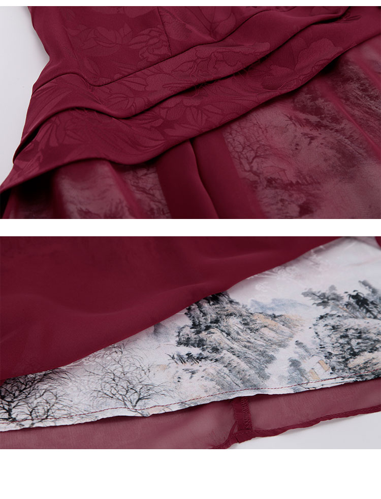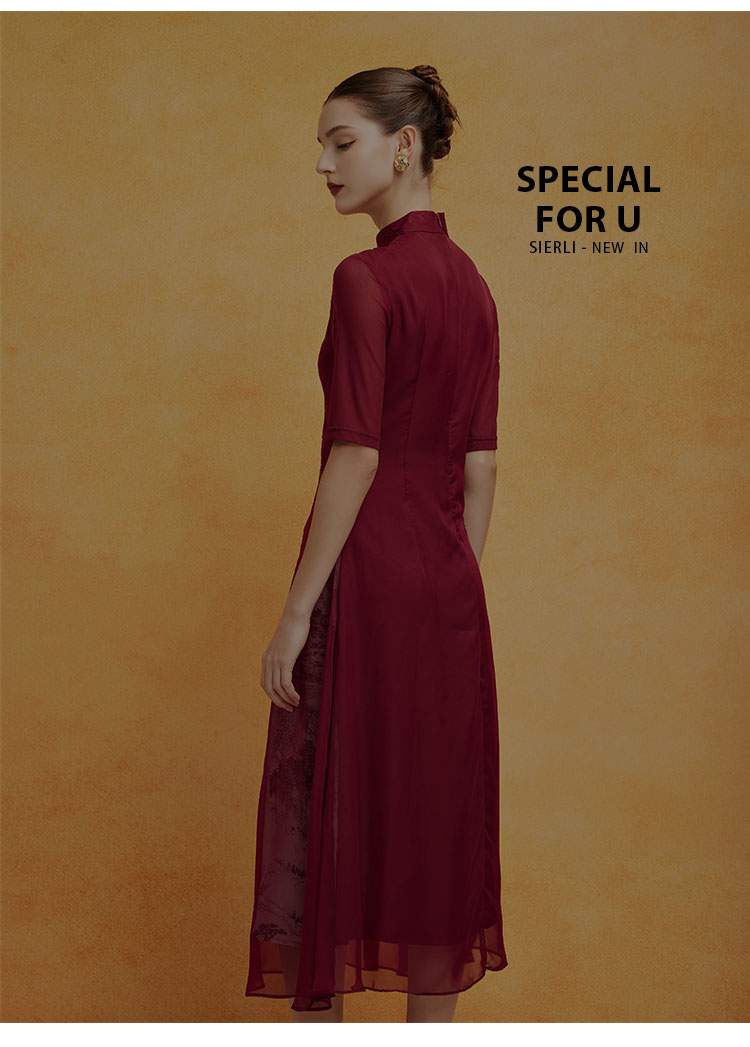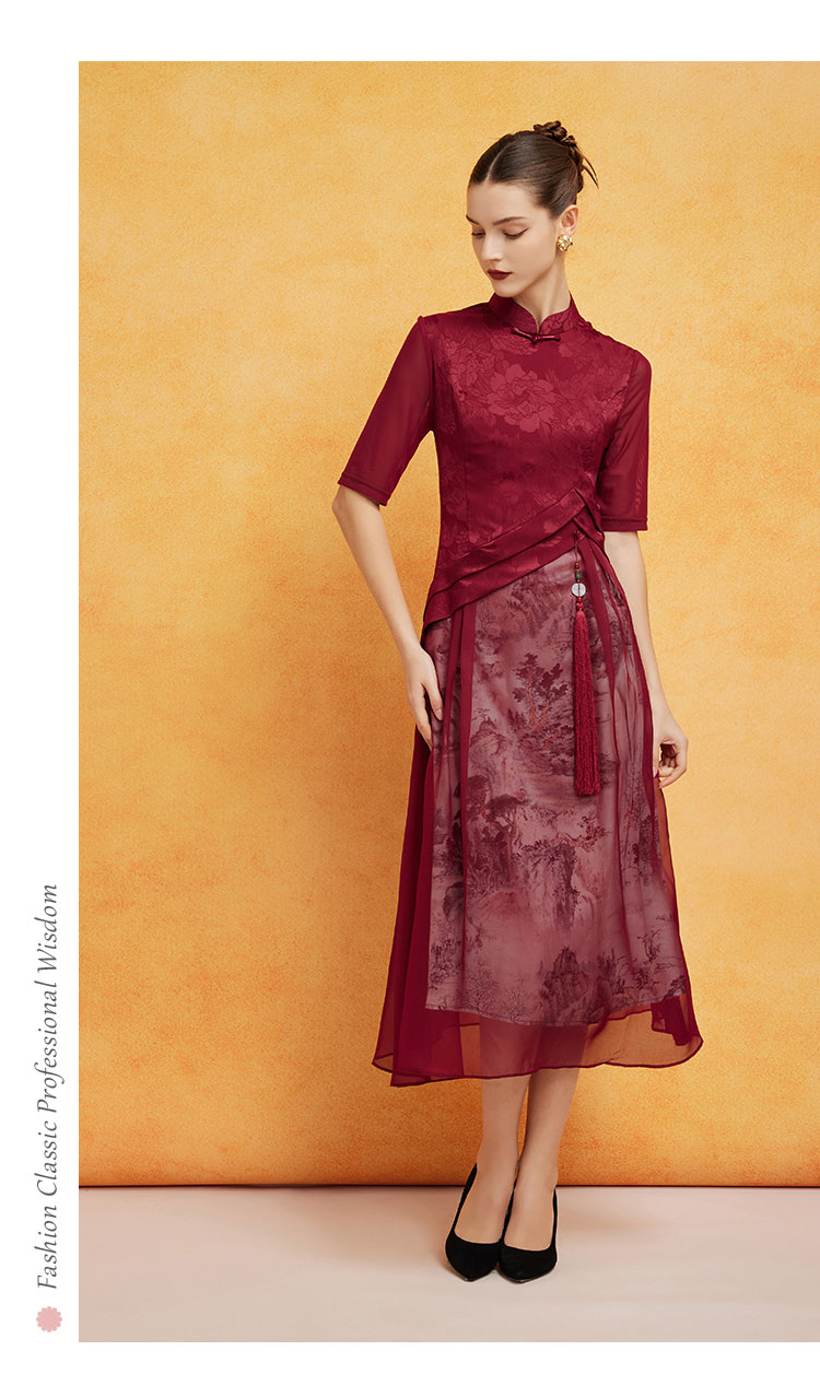 PF8G6斯尔丽2024新款改良旗袍拼接薄透朦胧水墨画精致流苏连衣裙
