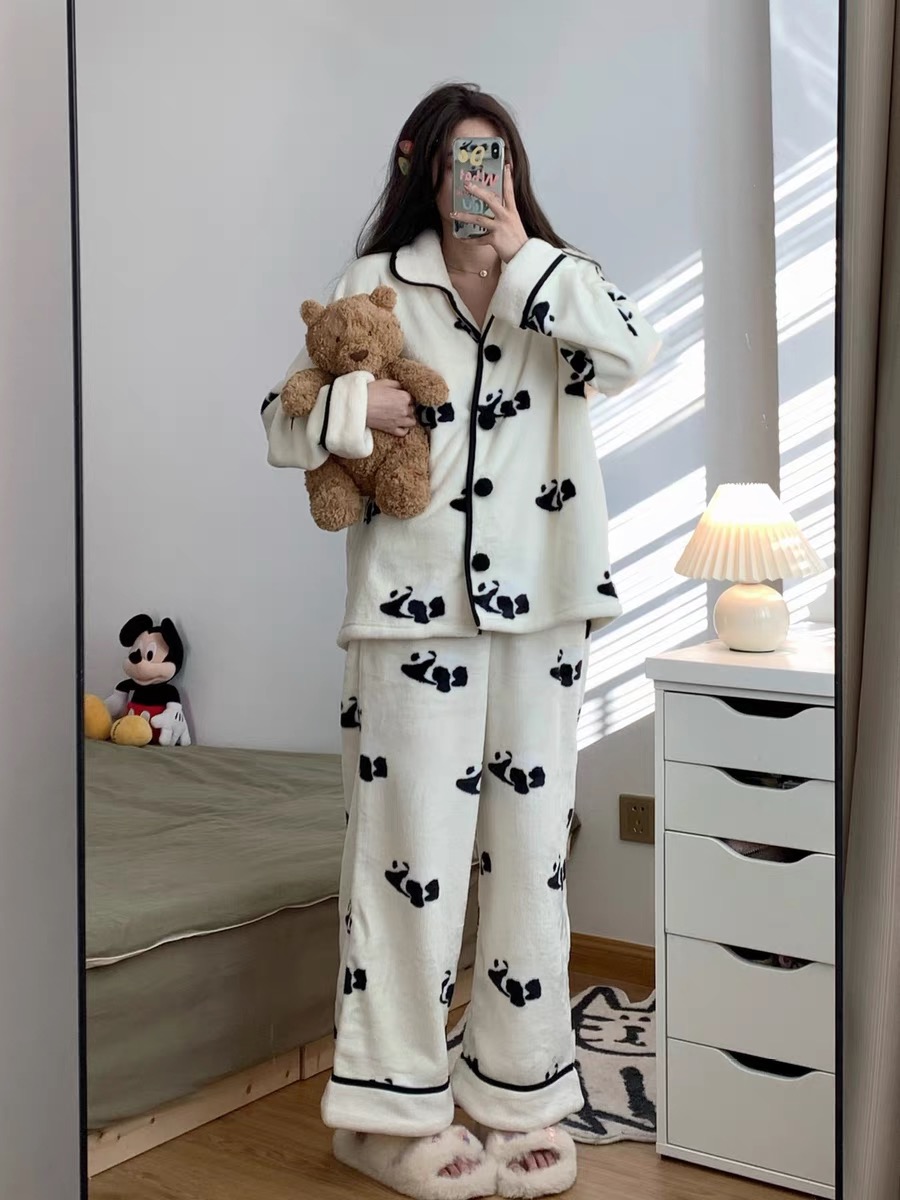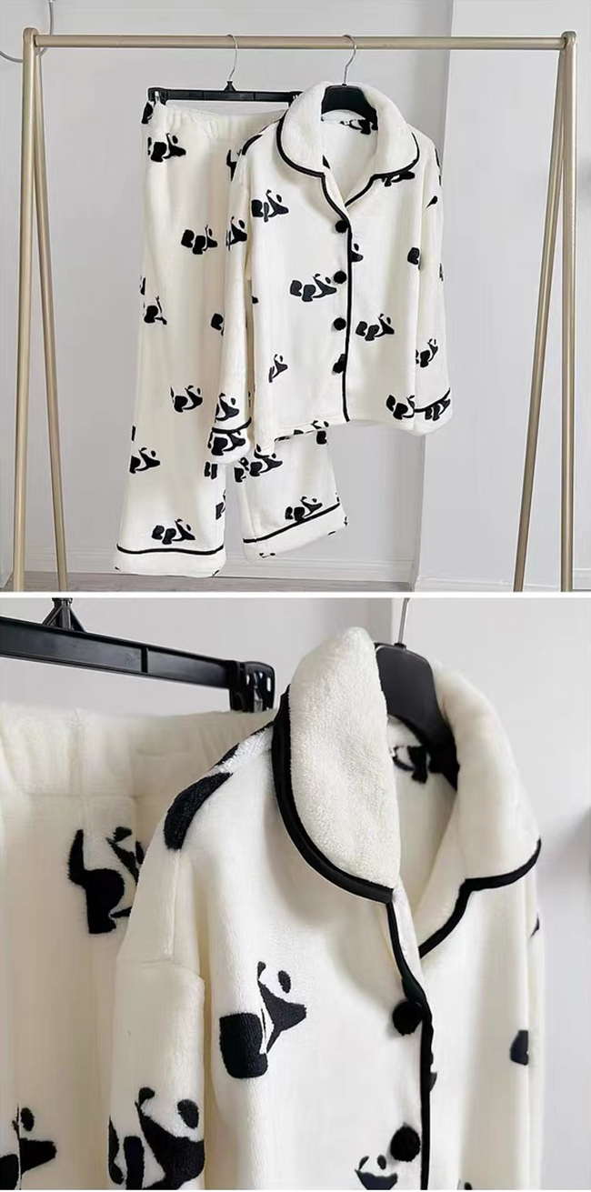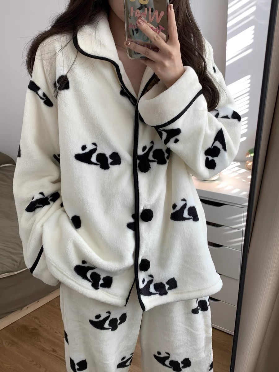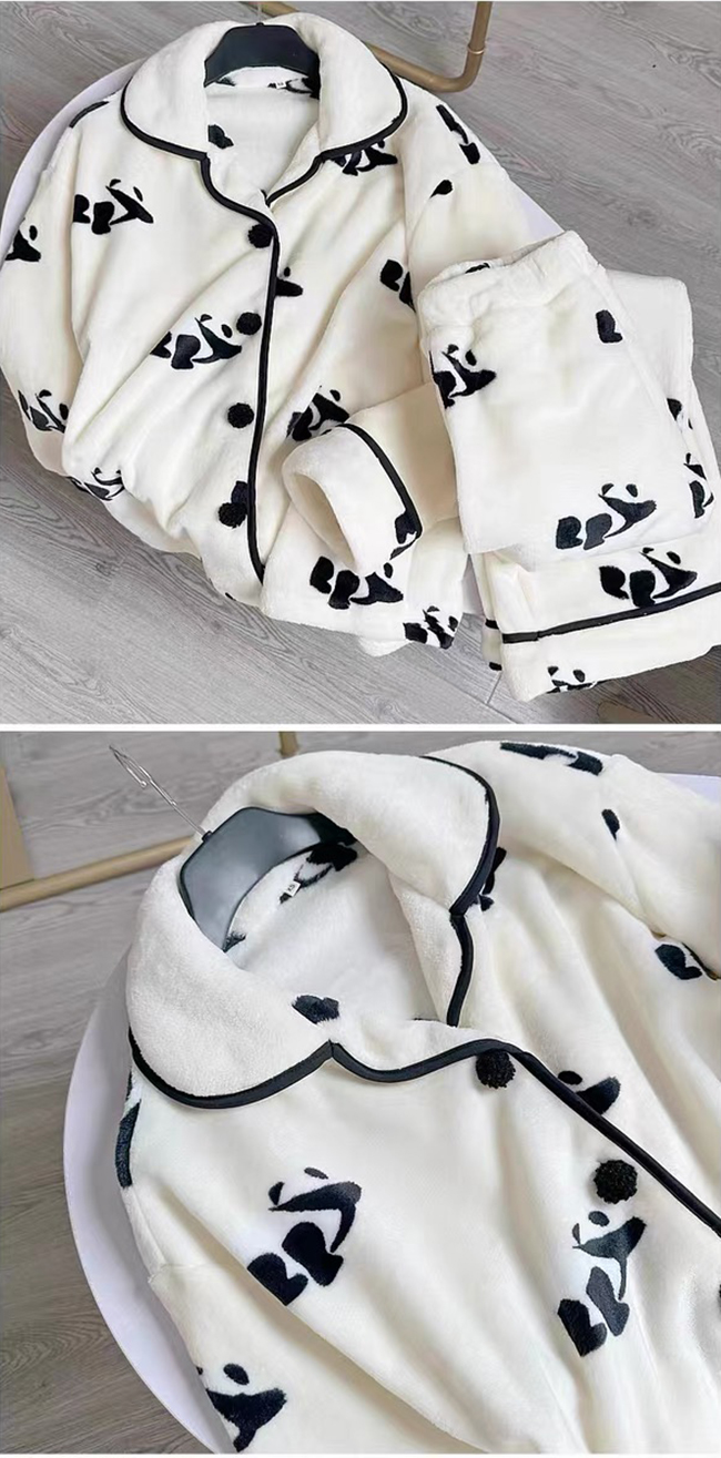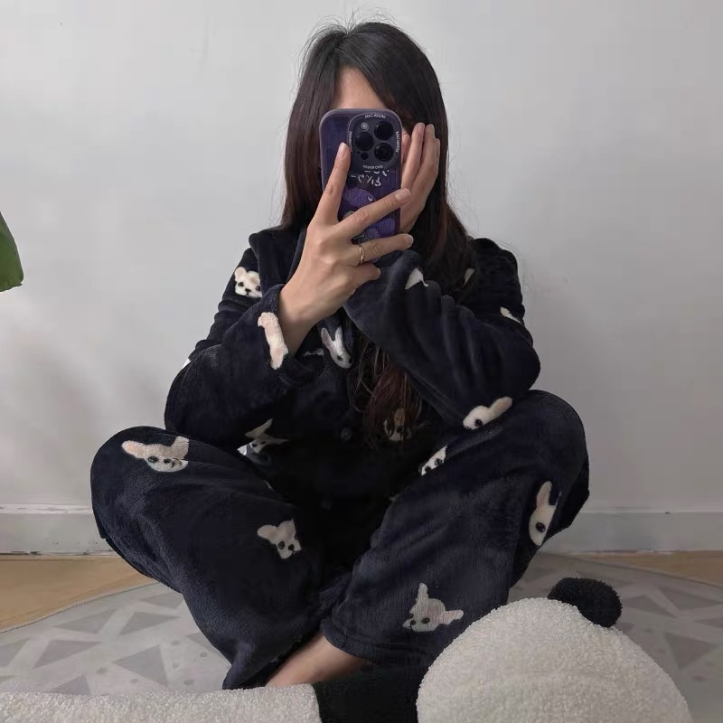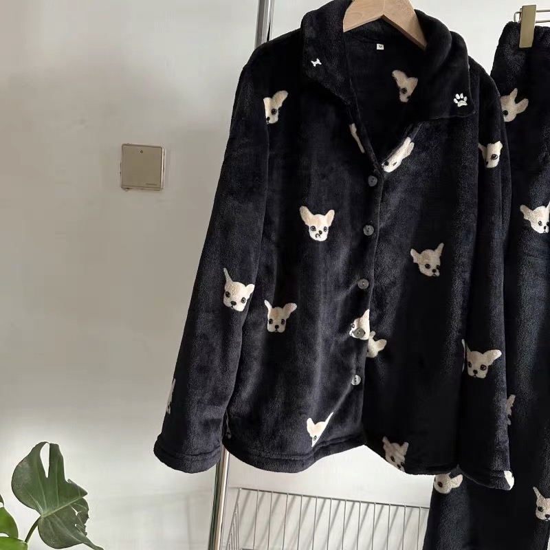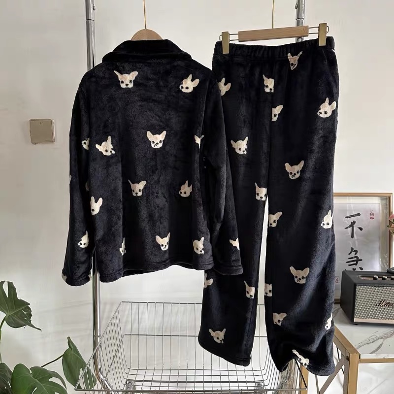 MOMMY KIKO 法兰绒家居服套装 法兰绒熊猫嘭嘭/满印狗