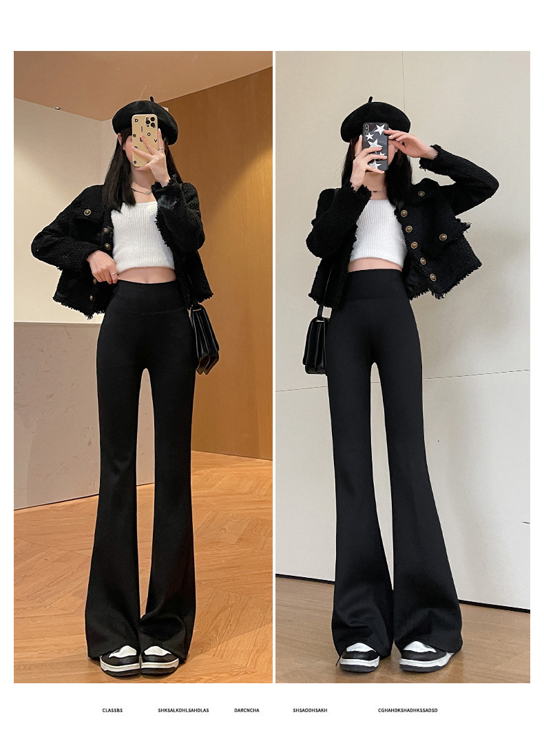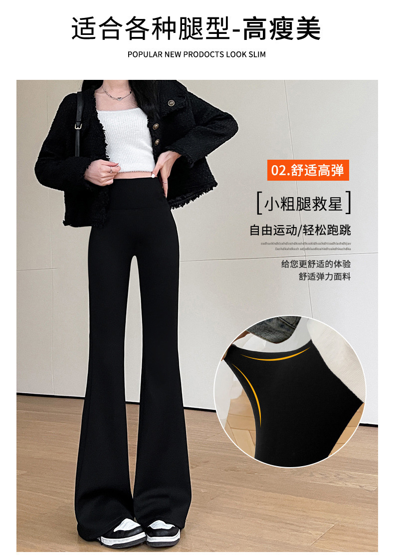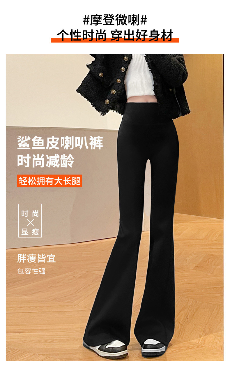 加绒鲨鱼裤高腰显瘦打底裤女黑色外穿瑜伽芭比裤微喇叭阔腿裤 MUX 000 9128