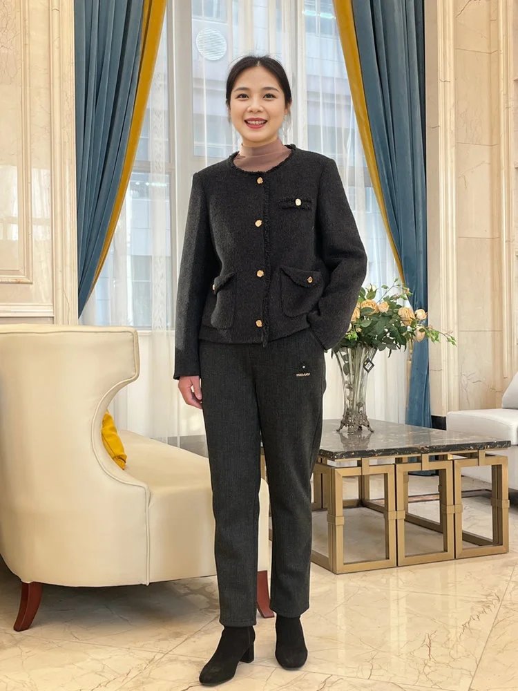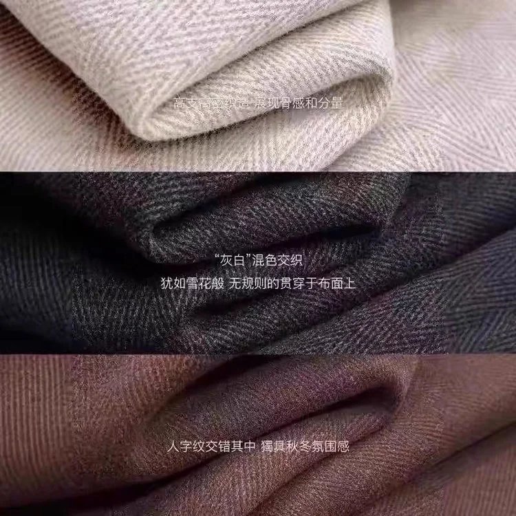 采用人字纹毛呢➕羊绒与珍贵桑蚕丝混纺面料