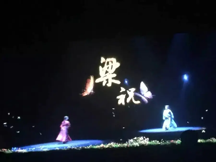 国内首创四面通透式幻影成像,结合真人舞台表演,随着音乐和唯美的场景如神仙眷侣轻盈飞舞,忽而花开满墙,忽而墙面崩塌甚至消失,真实再现梁山伯与祝英台缱绻缠绵的壮美爱情。跨越时空,梁祝化蝶,亦真亦幻的场景将千古绝恋娓娓道来。