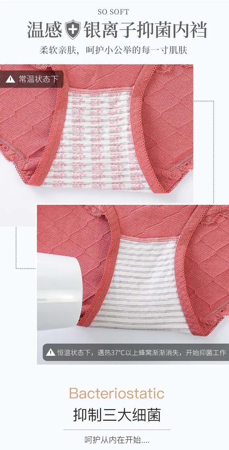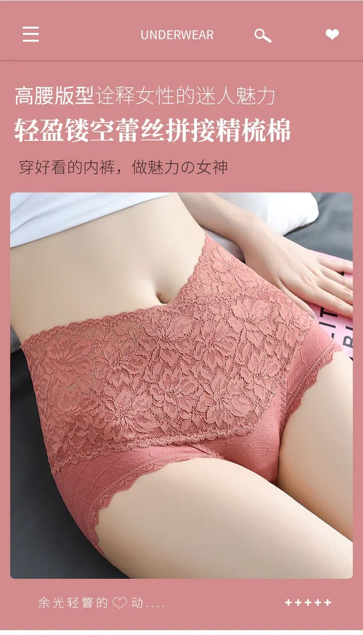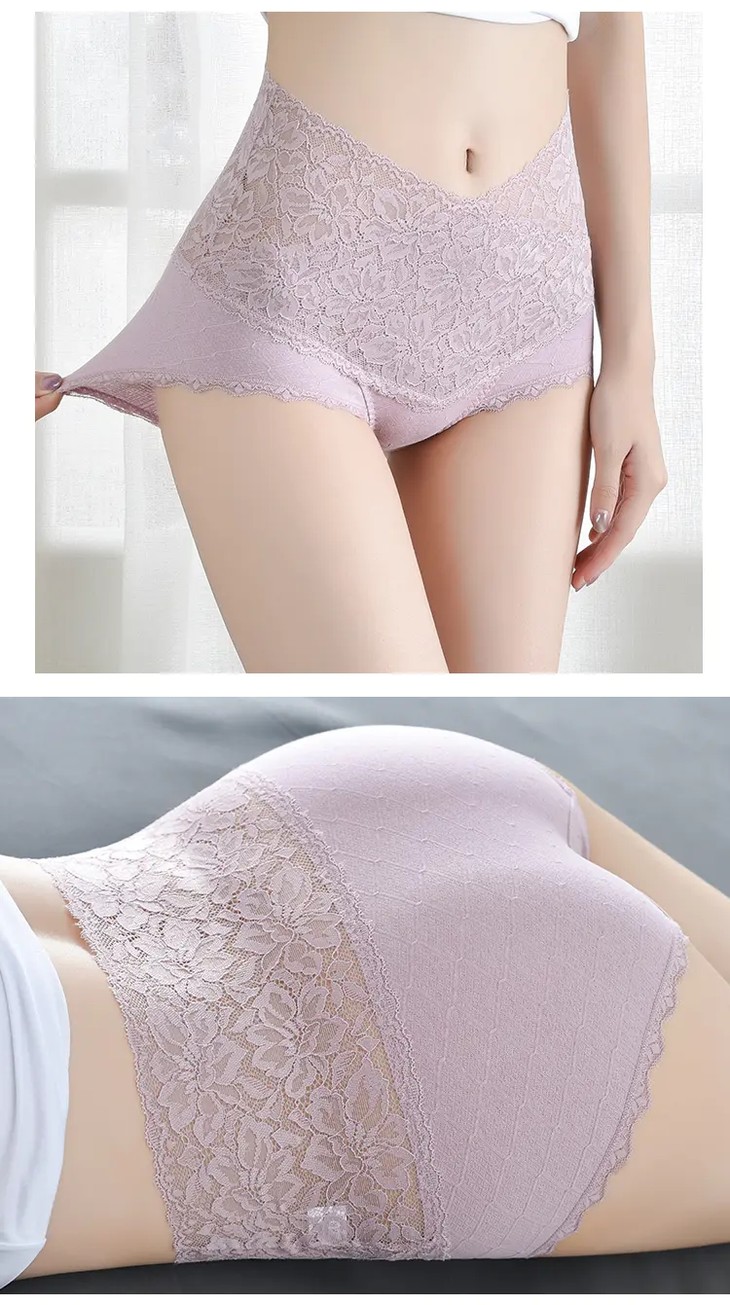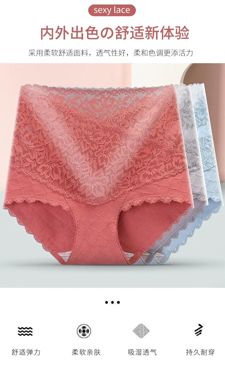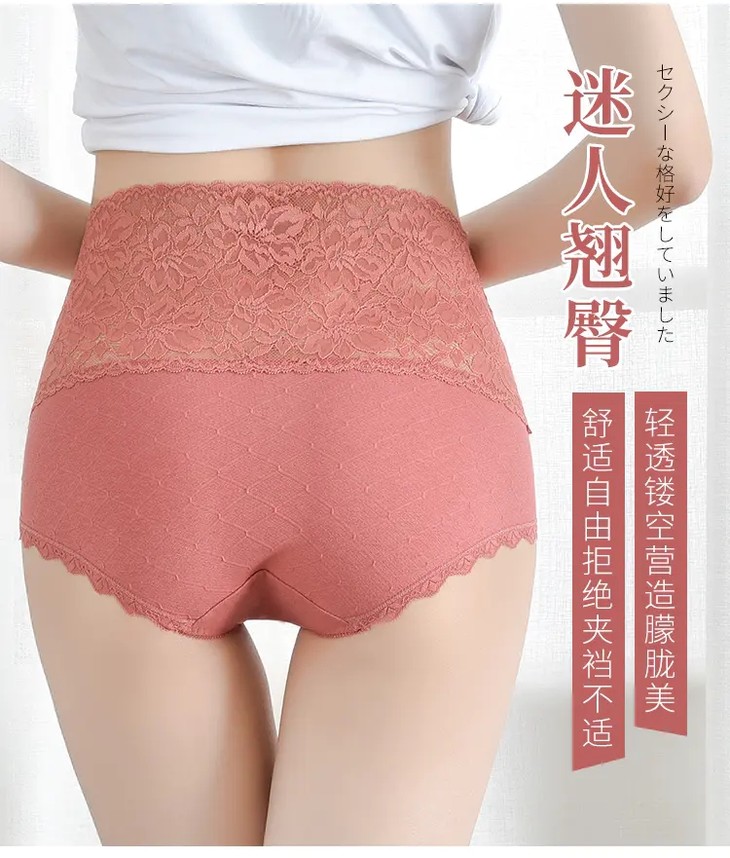 【6条优惠价】新款高腰蕾丝拼接精梳棉女士内裤,轻盈舒适不夹臀银离子抑菌裆内裤FXZ1880