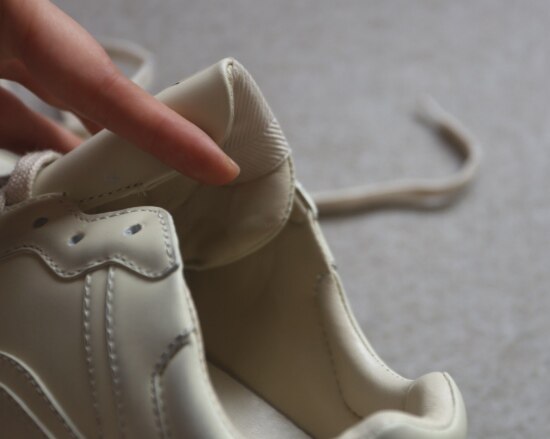 鞋身中段收进来 后跟适度加宽 虽有厚重感 但不是蠢笨的那种