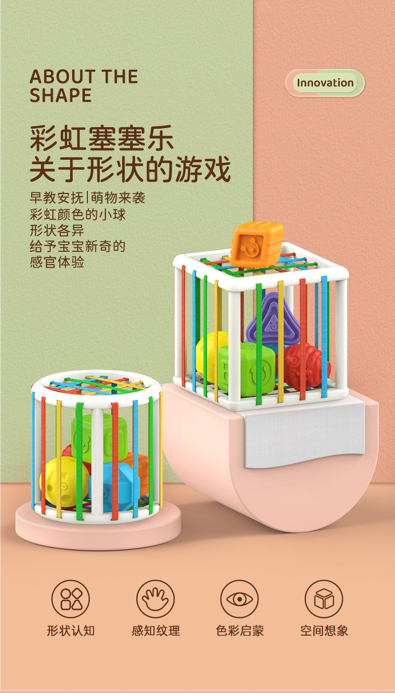 【早教安抚 彩虹魔方塞塞乐】Pagibear儿童探索塞塞乐手抓球认知玩具