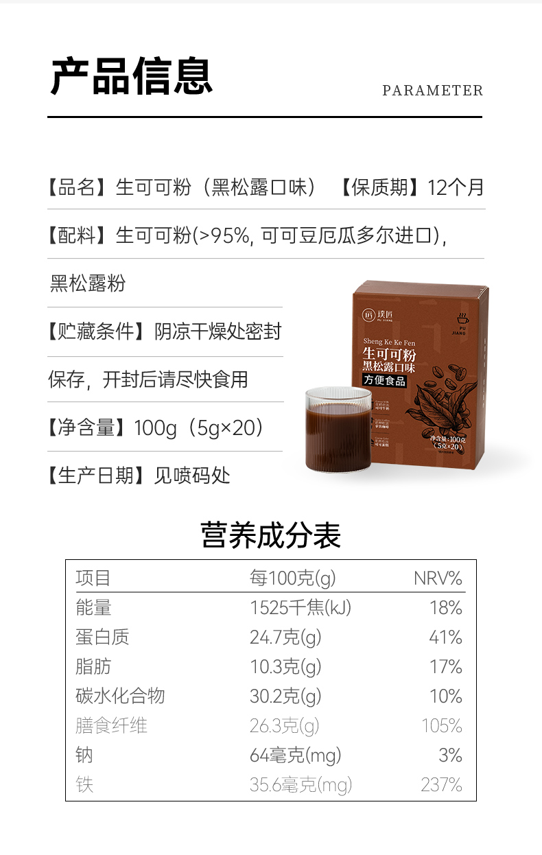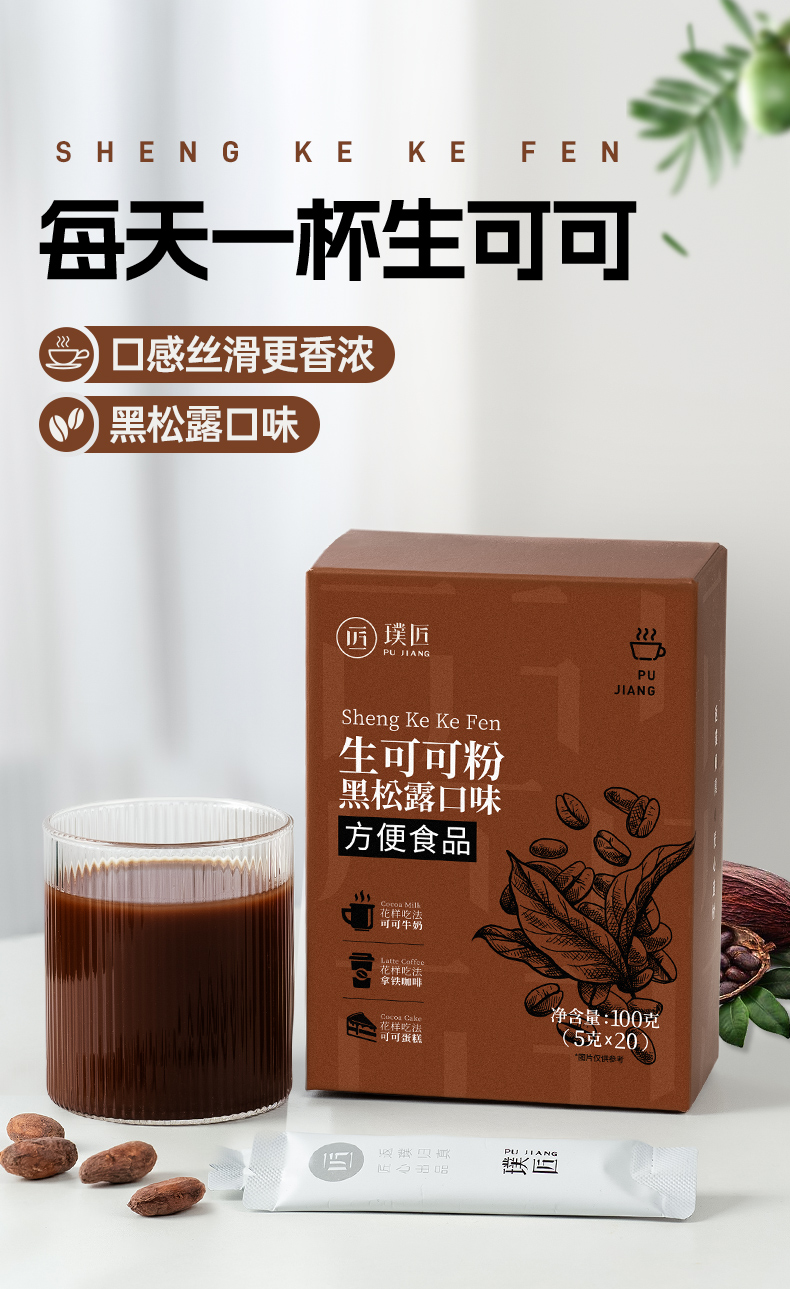 璞匠未碱化生可可粉黑松露口味冲饮健身饮品烘焙咖啡专用巧克力粉
