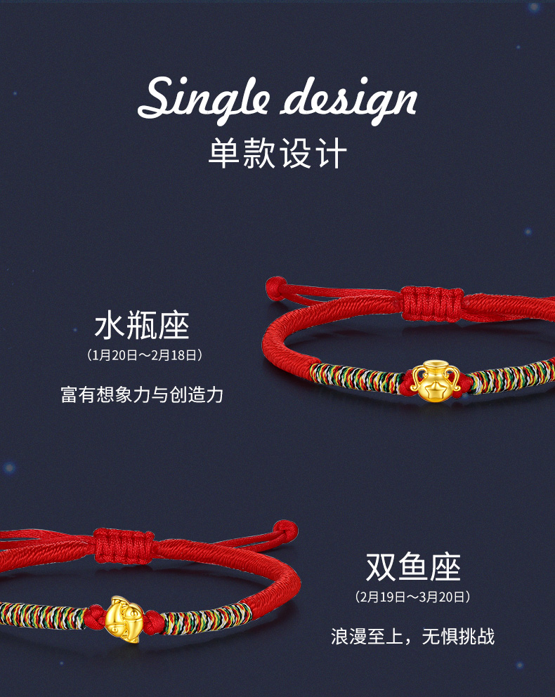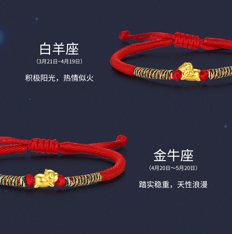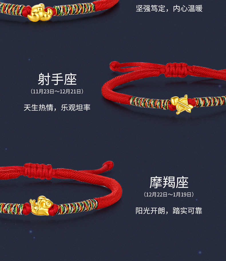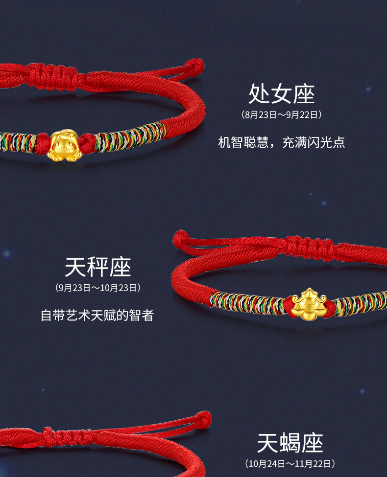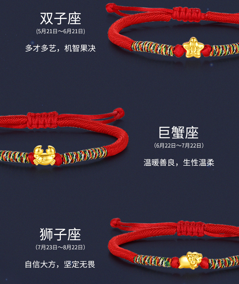 周六福 十二星座守护系列黄金手链 星座手绳 定价