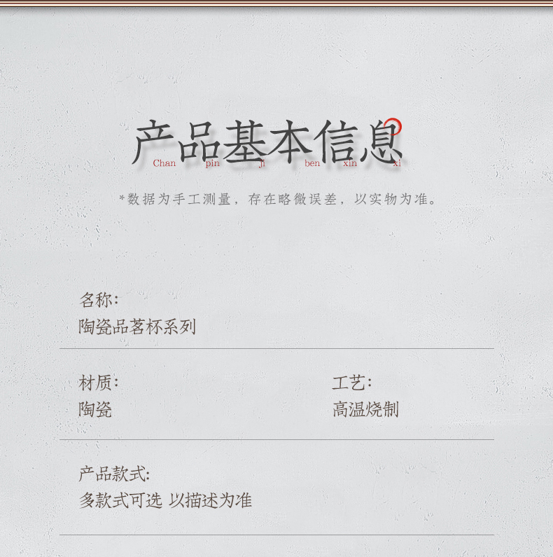成艺 陶瓷主人杯 单杯家用男女士品茗杯个人专用功夫小茶杯茶盏轻奢礼盒