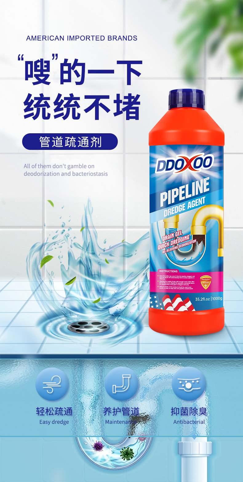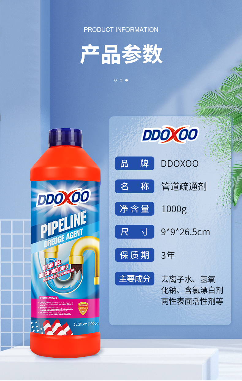 【给管道洗个澡】DDOXOO管道疏通剂 强力疏通 抑菌祛味 高粘性凝胶配方 不同管道1瓶全搞定 1000g/瓶