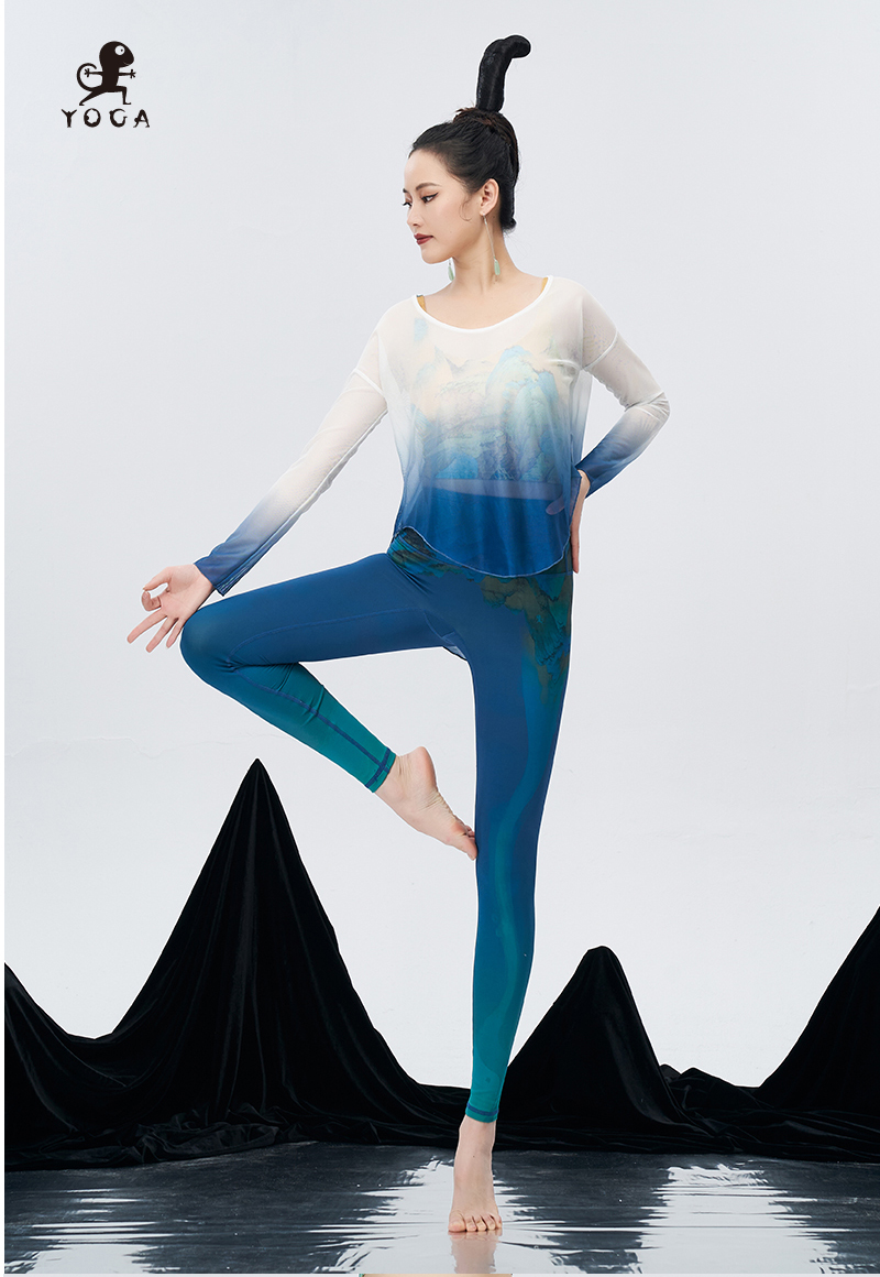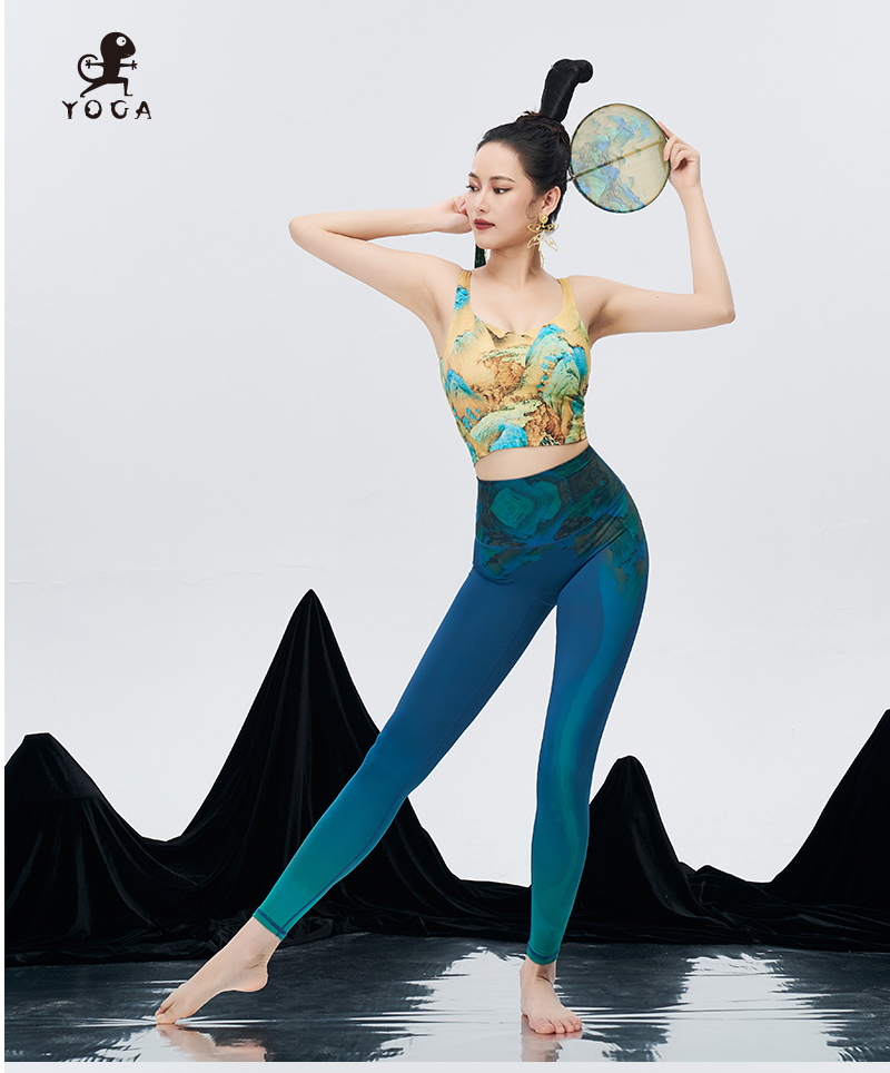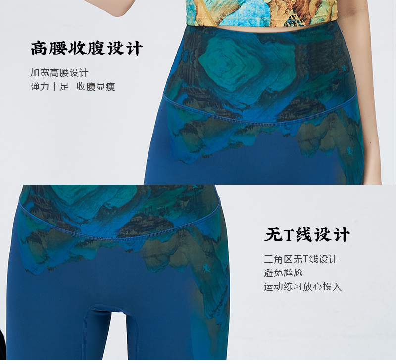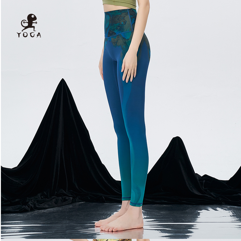 壁虎瑜伽鳗光锦面料【万水千山】超高弹限量款印花瑜伽九分云感裤 【可定制】(标准码)