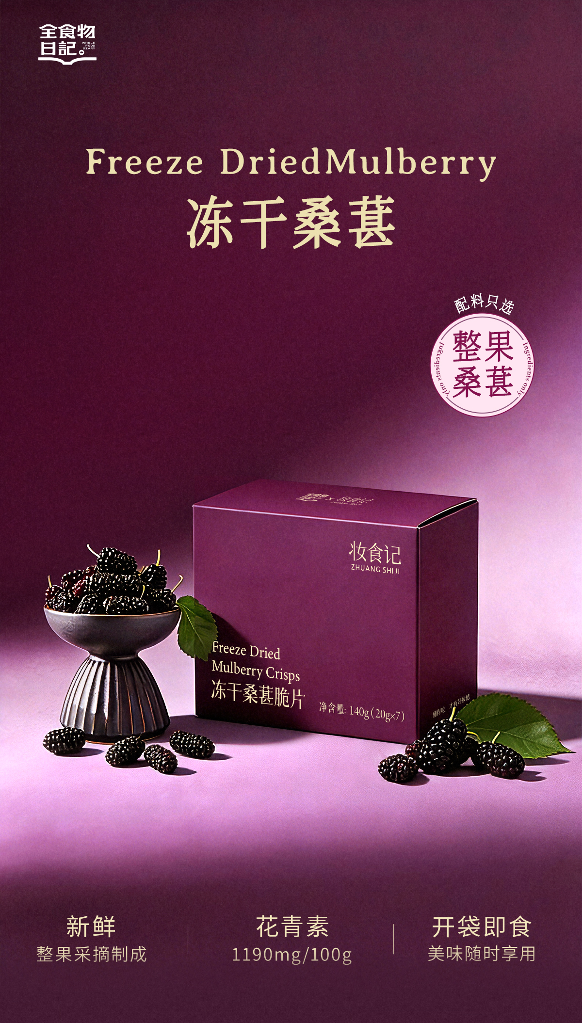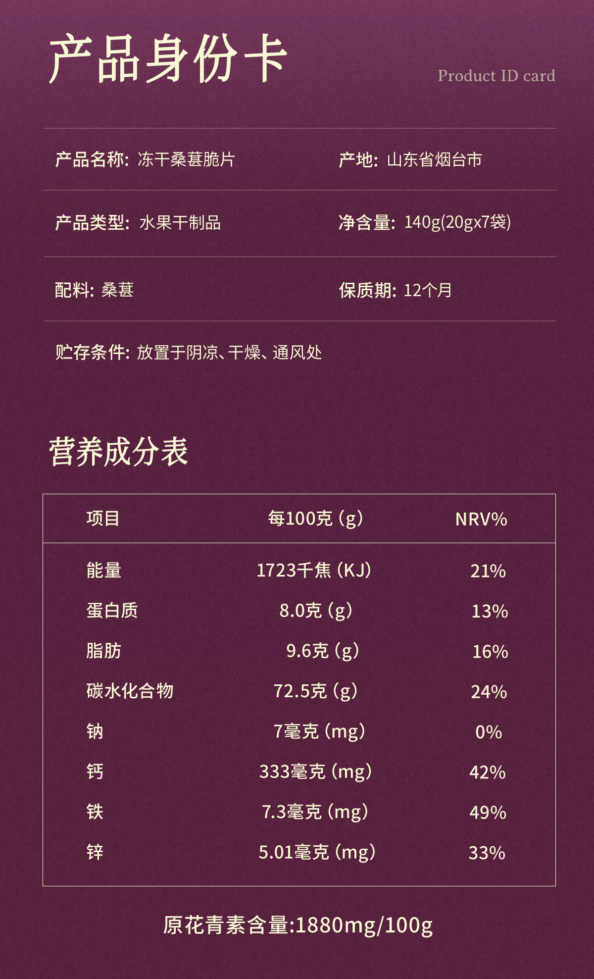 全食物日记 冻干黑桑葚脆片 20g*7包/盒 即食低温冷冻干燥