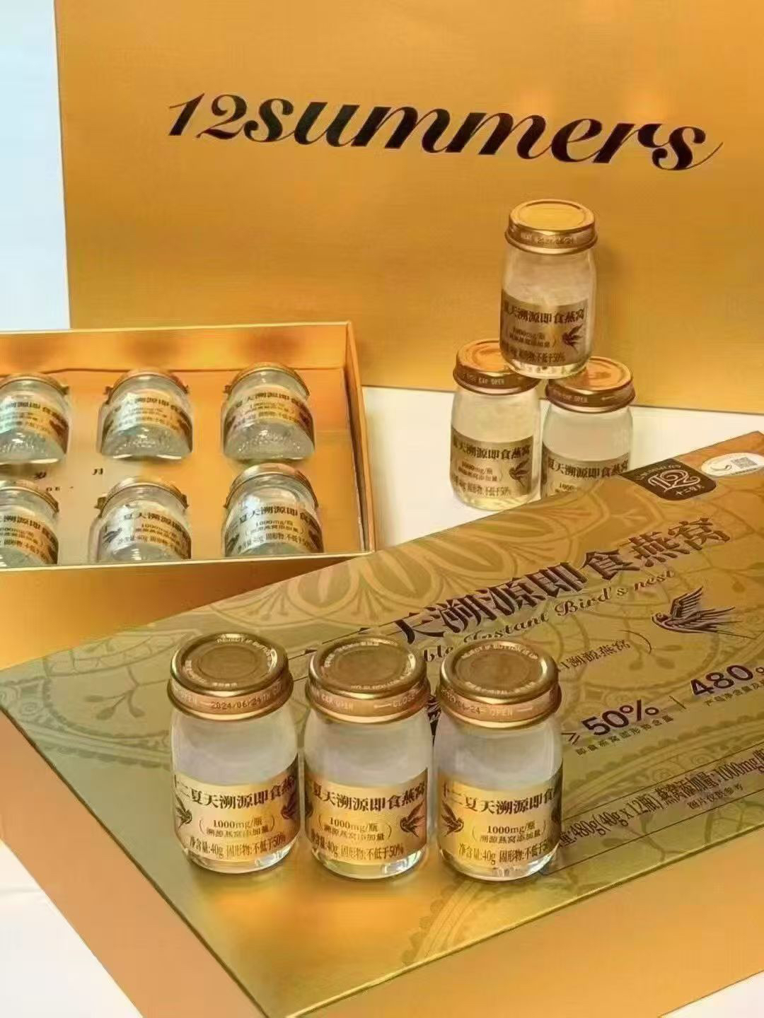 十二夏天溯源即食燕窝 无任何添加,干净配料的纯粹! 早晚1克,滋养每时美刻✨ 臻奢烫金礼盒,自用细腻呵护,送礼纳藏美意💝