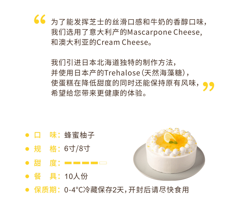 烤爱·生日蛋糕系列·蜂蜜柚子奶油·低糖纯动物淡奶油·蜂蜜柚子·长辈聚会生日节日【仅限深圳同城配送】