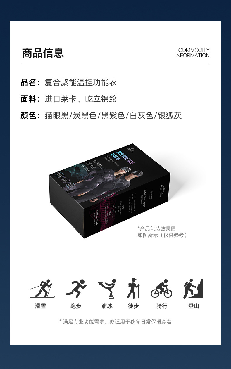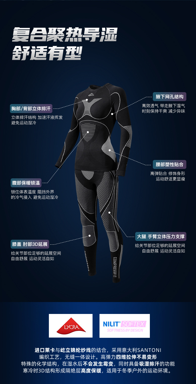 【冰雪大世界必备】 Golovejoy秋冬滑雪速干衣男女户外运动骑行压缩保暖功能内衣打底套装