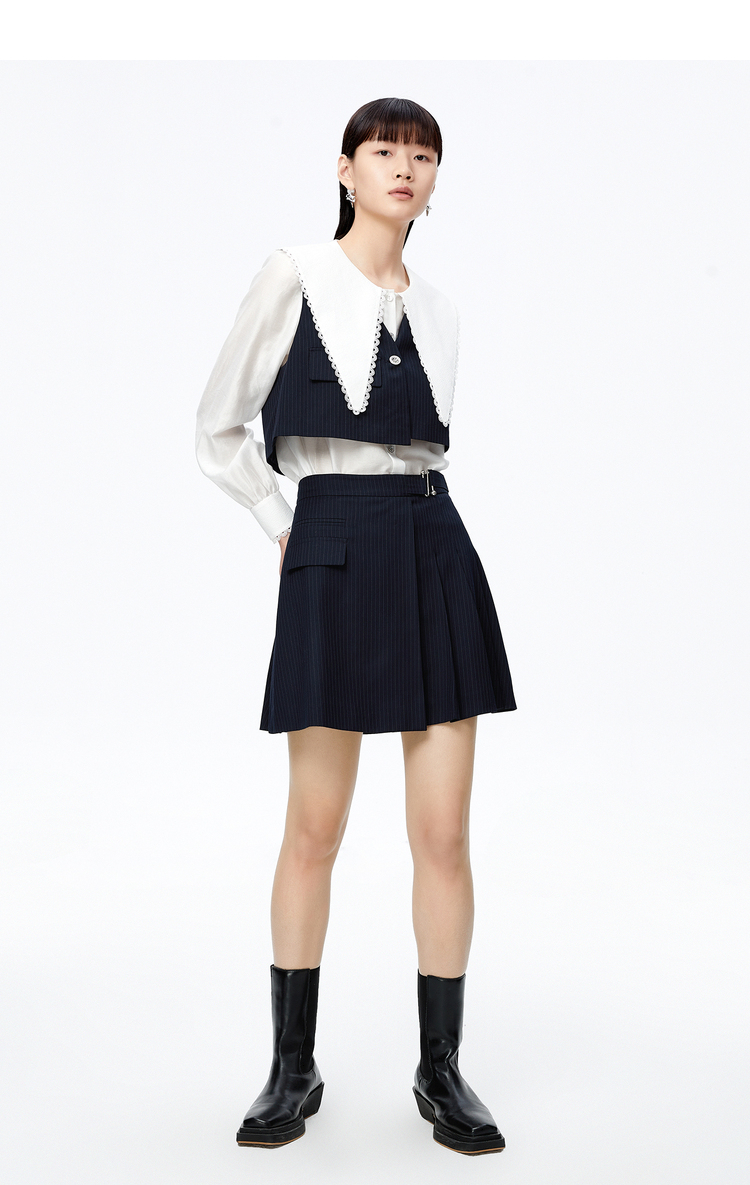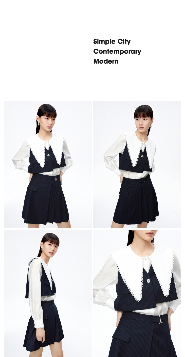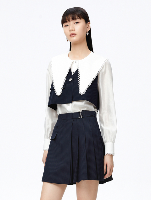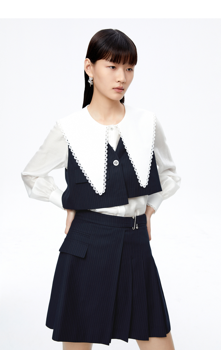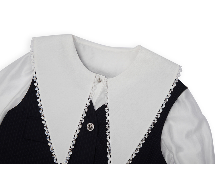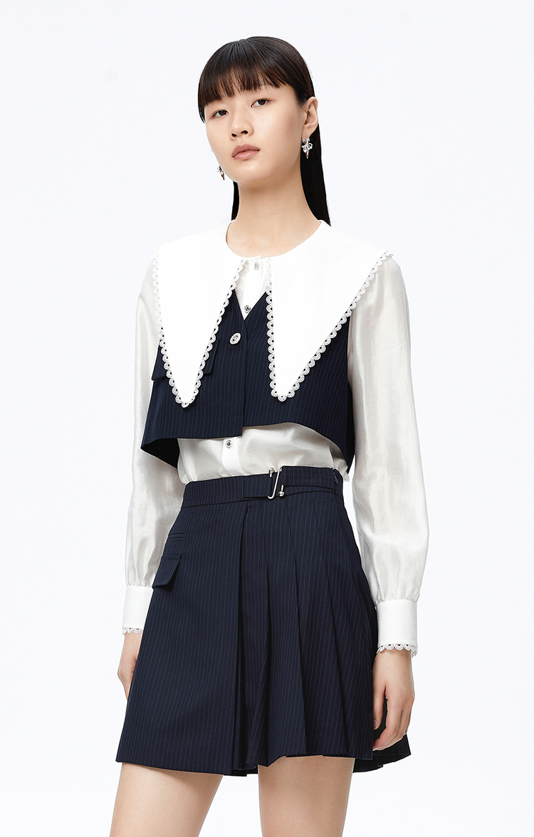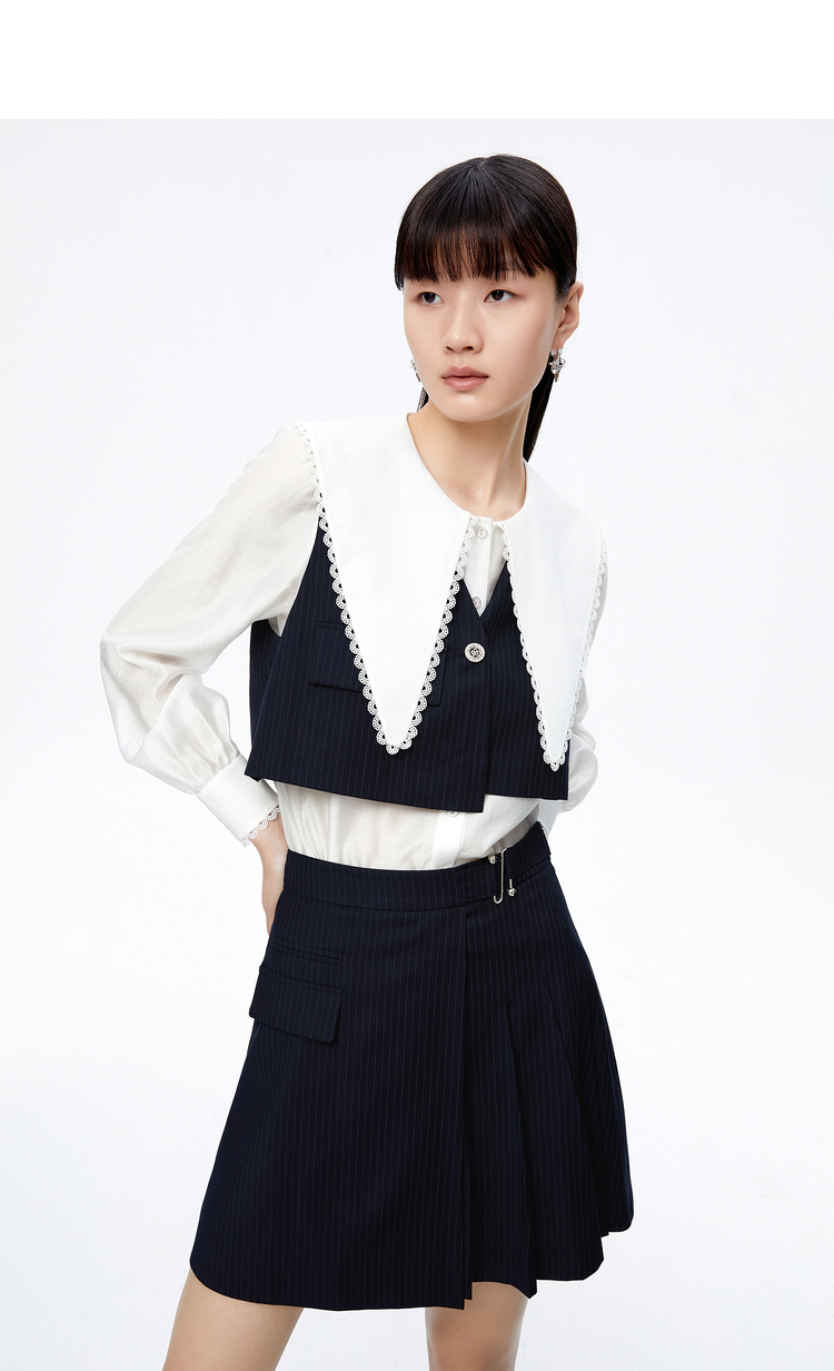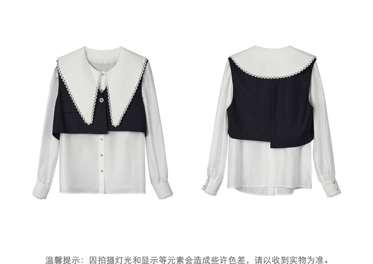 NEELLY纳俪大翻领衬衫两件时尚套装衬衫小众减龄新款条纹马甲百搭N22081B01051