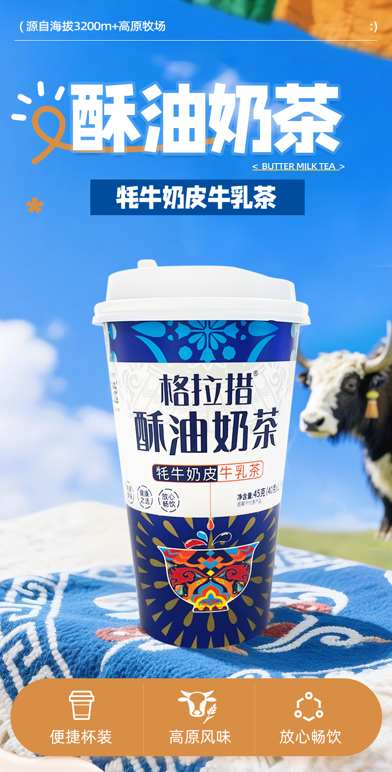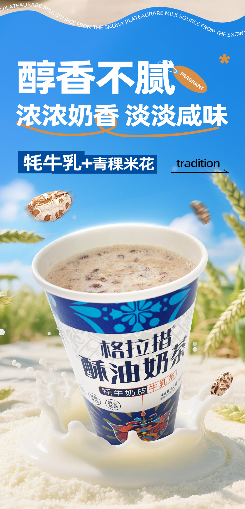 牦牛奶皮牛乳茶45g/杯*4 高原青稞花+奶皮粉 苏香不腻 极简配方 高钙高蛋白 方便携带 即冲即饮