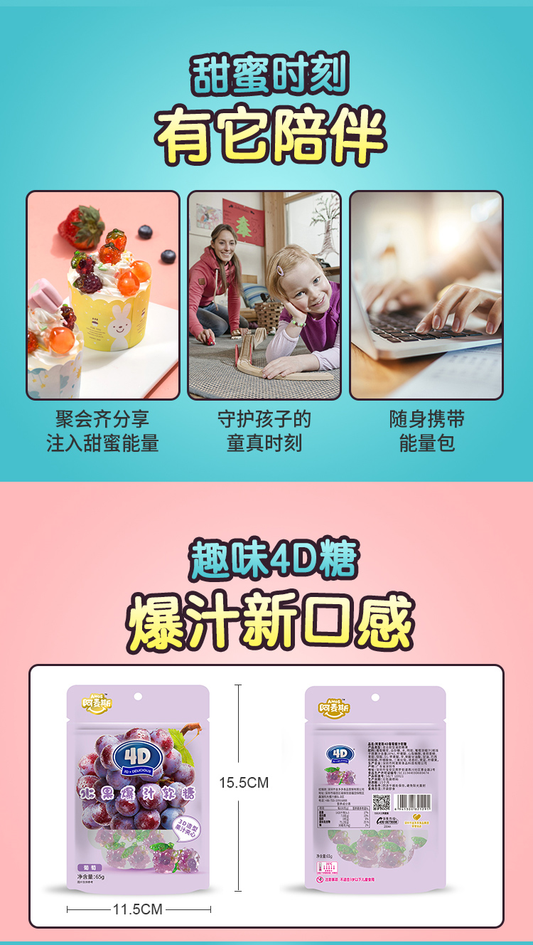 【爆汁软糖】阿麦斯4d爆浆爆汁水果果汁夹心软糖65g橡皮糖果零食喜糖水果QQ糖