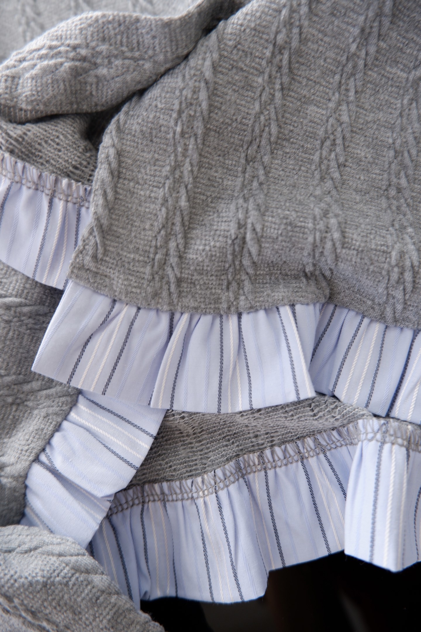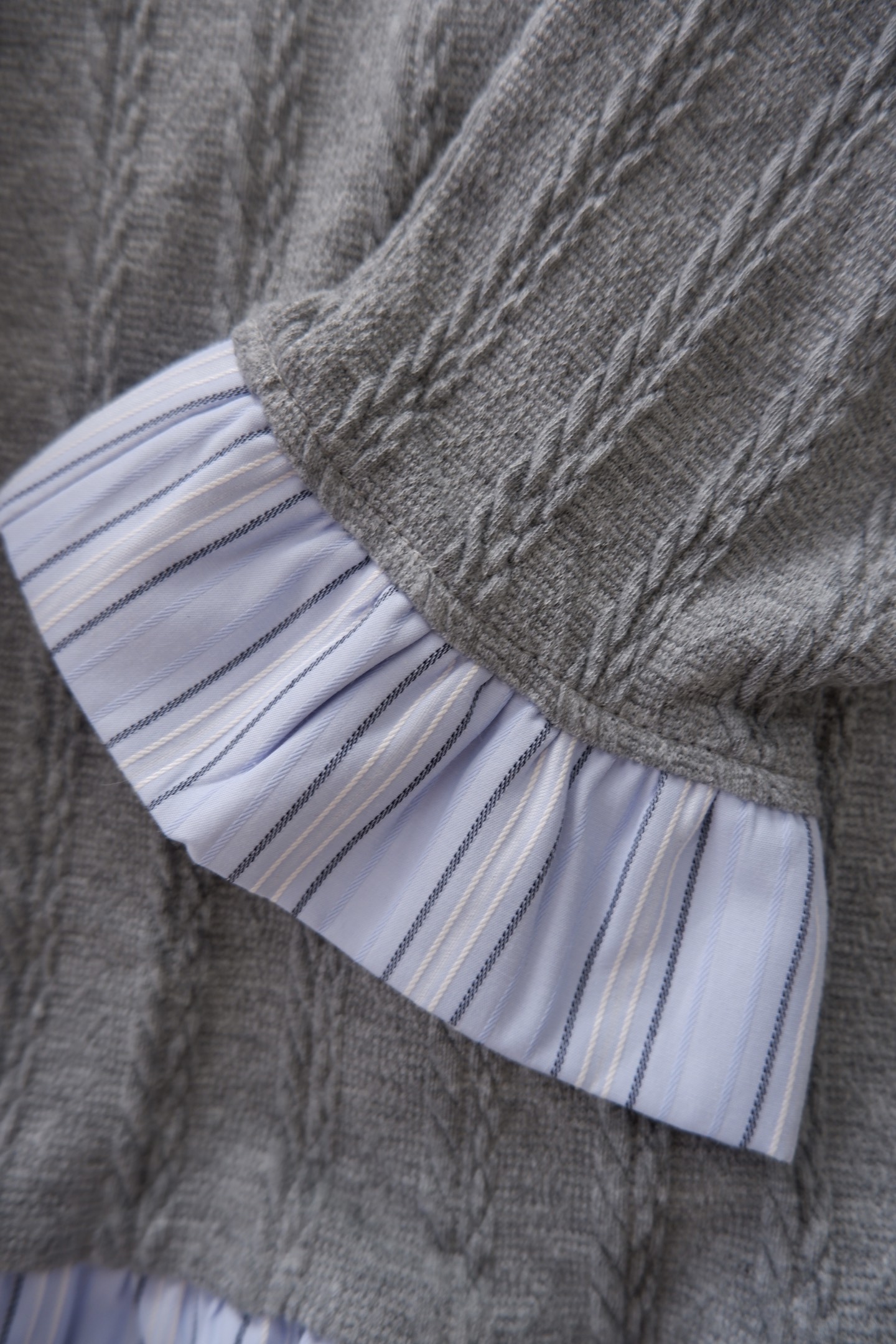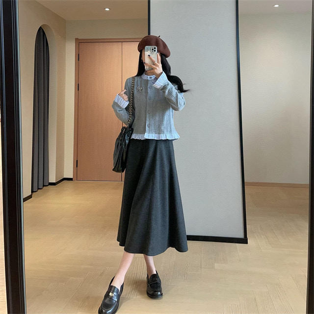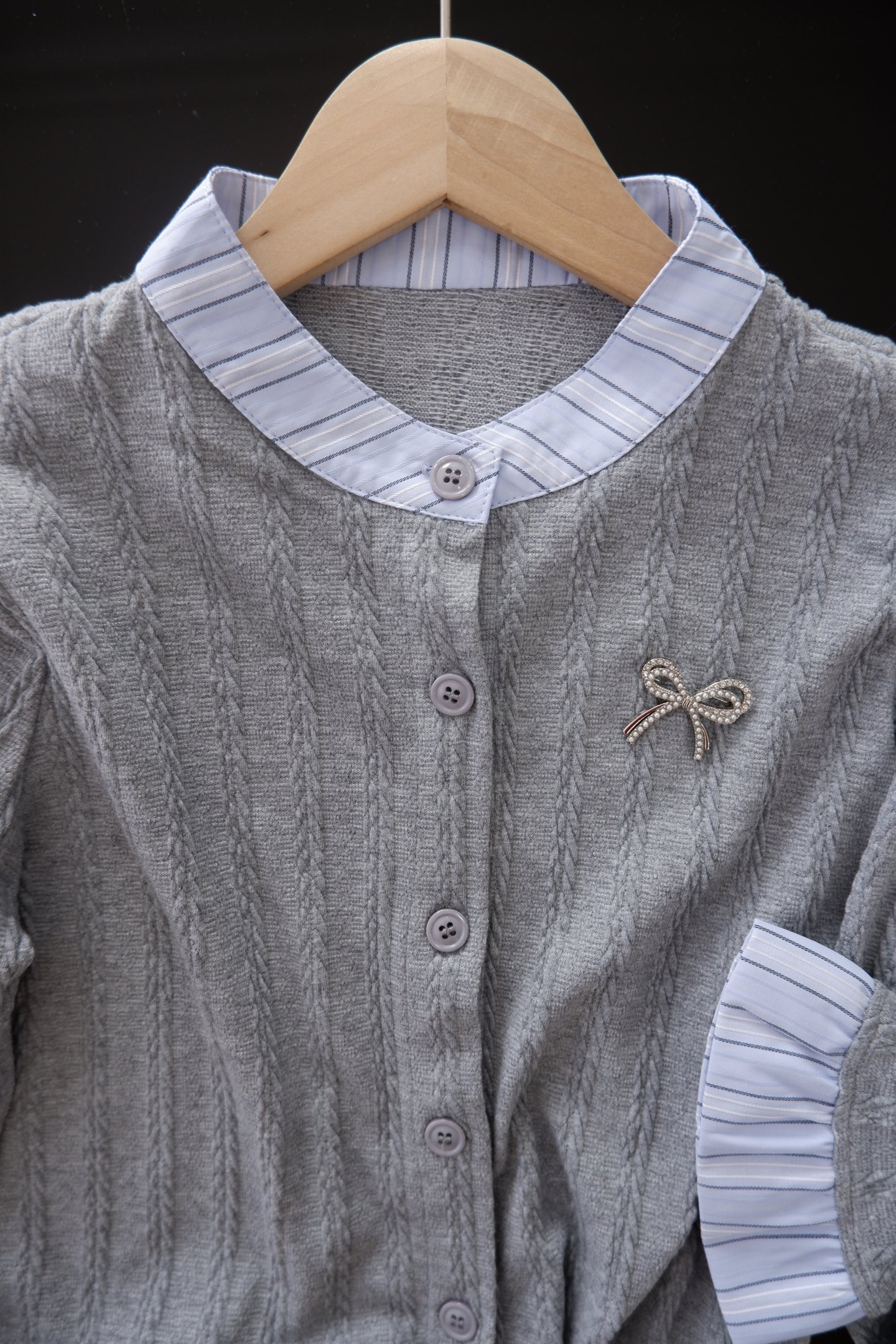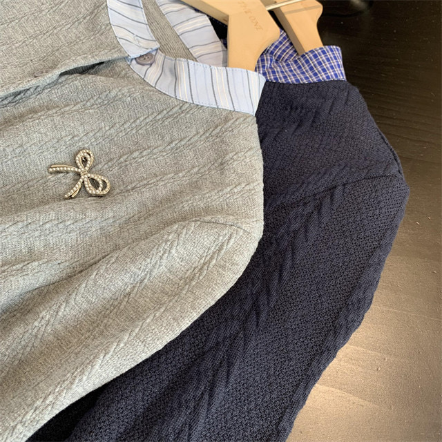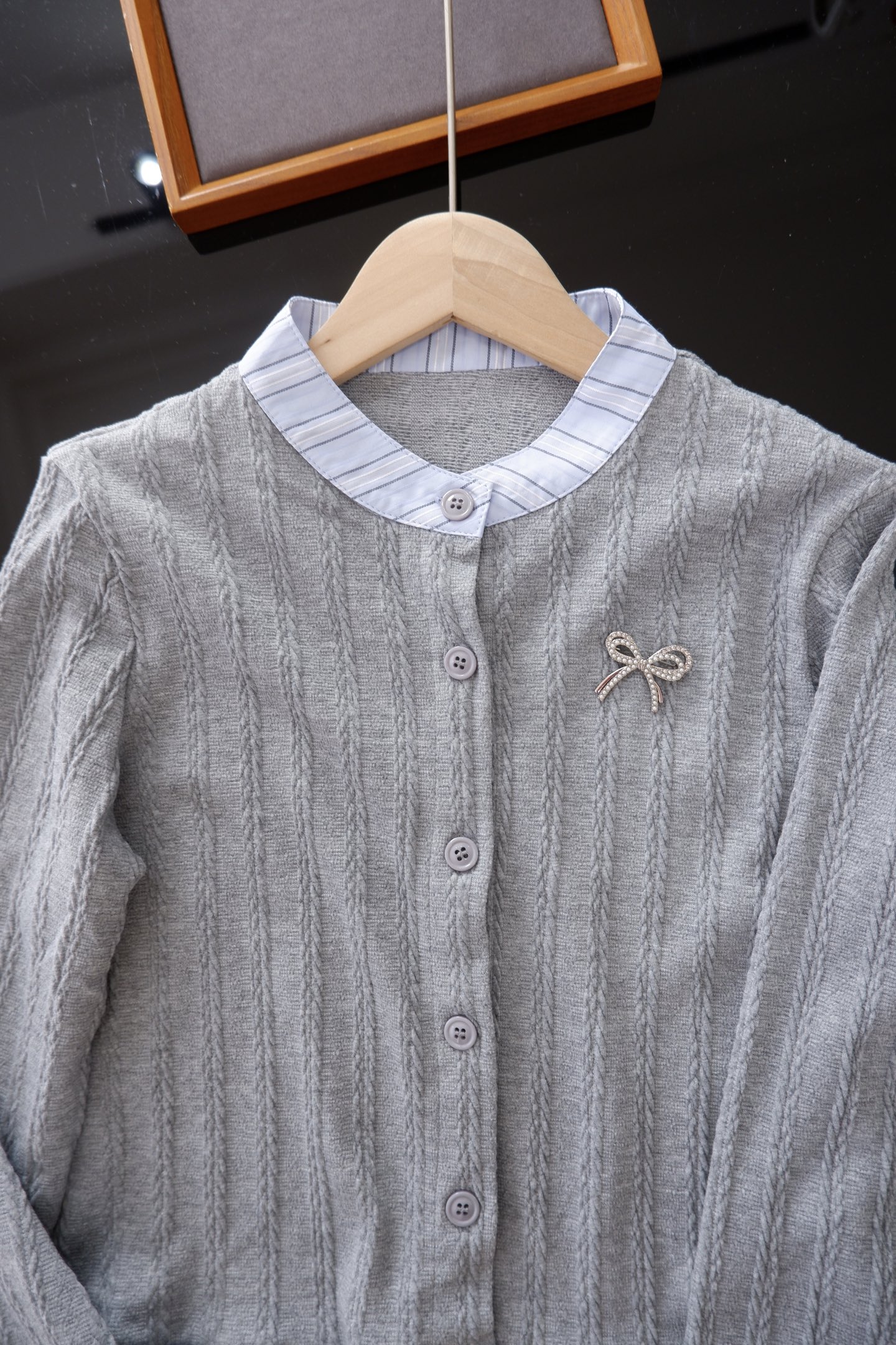 💰79元包邮, 【9512】miu系 设计感假两件法式开衫荷叶边上衣(送蝴蝶别针) 复古优雅T恤打造毫不费力的通勤穿搭颜色:灰色 藏蓝色