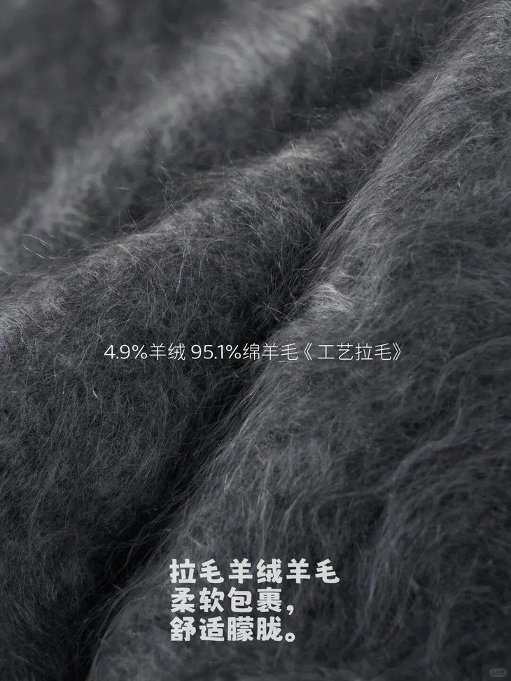 本来羊毛羊绒纱线就是山羊 “软黄金” ,比全羊绒价格低很多,但是品质和手感上完全不输!性价比拉满~再加拉毛工艺,直接把 “软” 放大 N 倍!