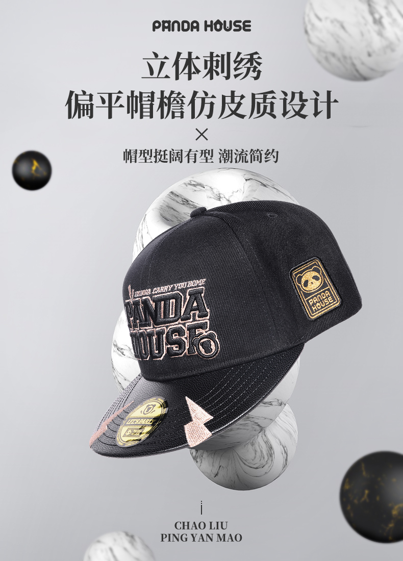 熊猫屋PANDAHOUSE 电音平沿帽 两色可选