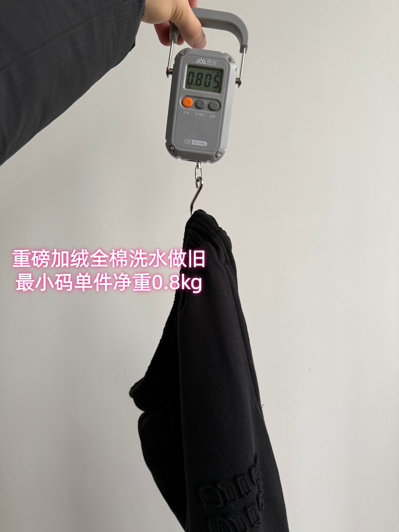 M1UM1U 秋冬重磅做旧宽松直筒加绒加厚针织长裤