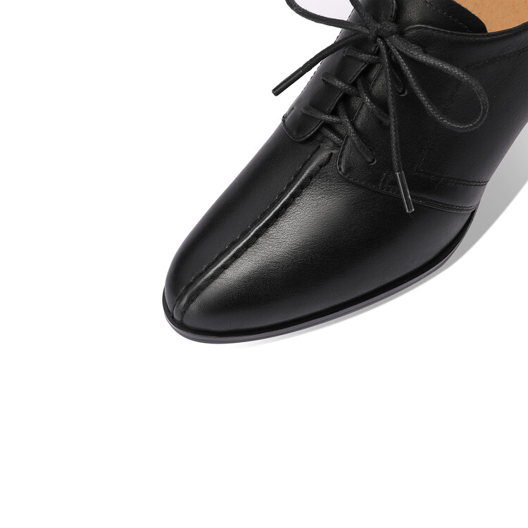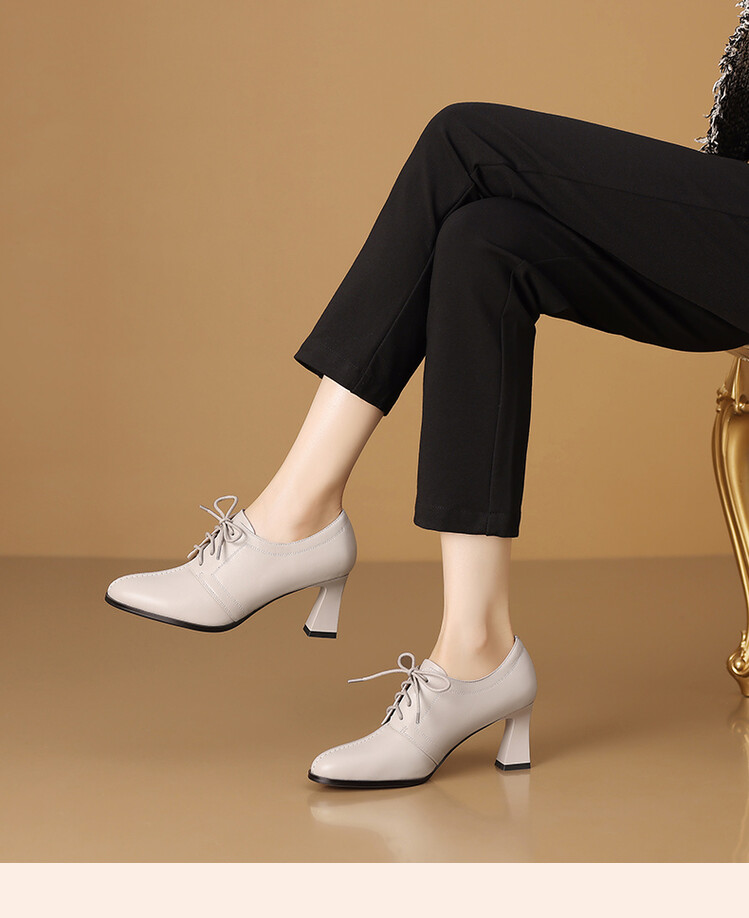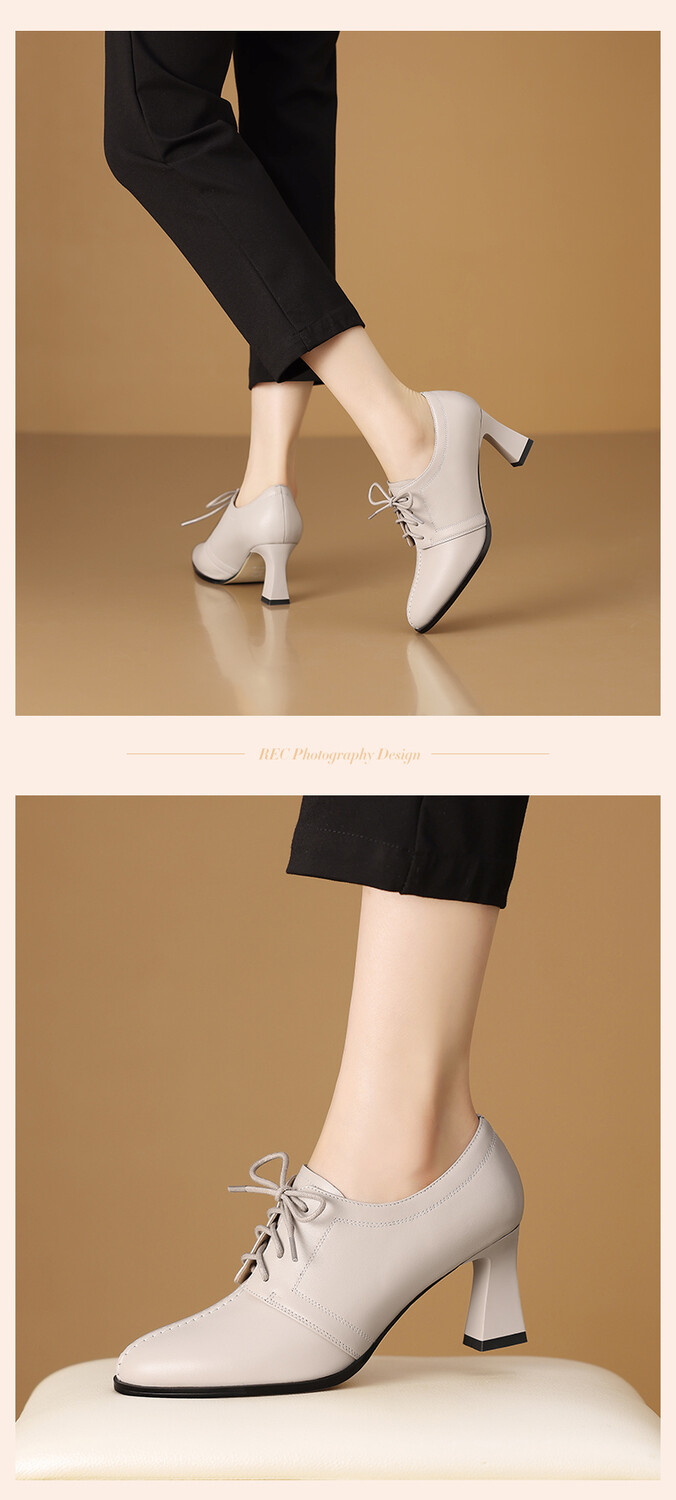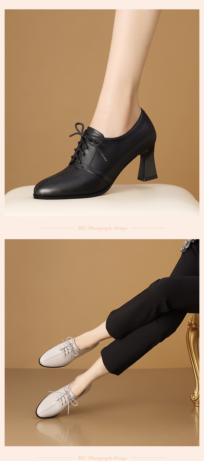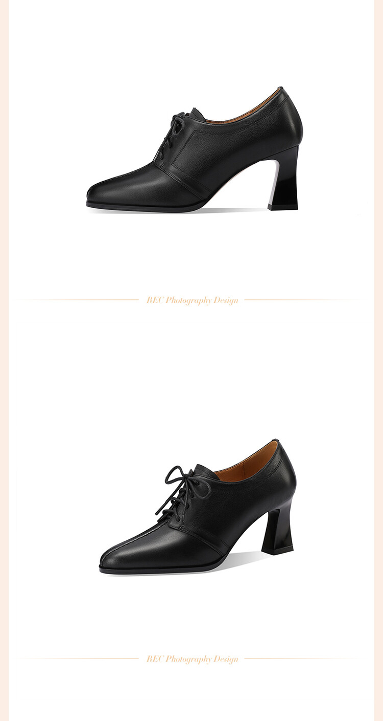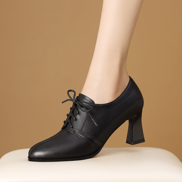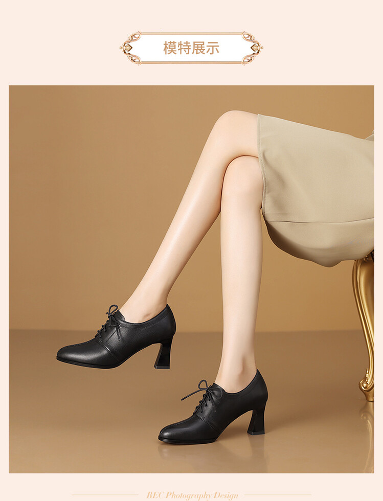 【预售5天】春秋款深口真皮单鞋粗跟高跟鞋系带女鞋时尚百搭英伦尖头小皮鞋HY&H3503