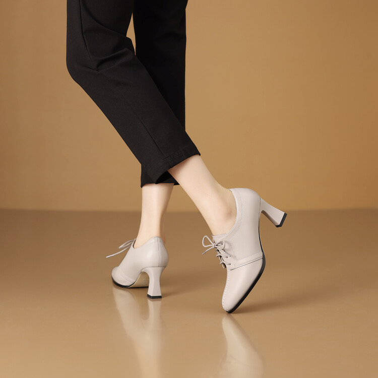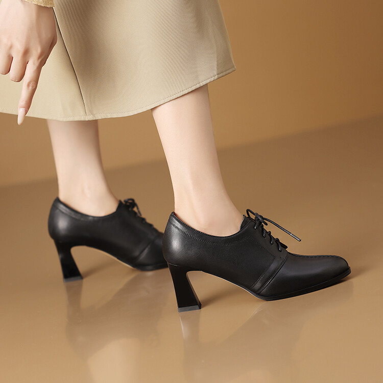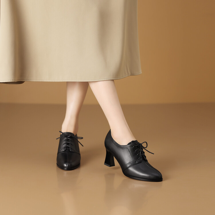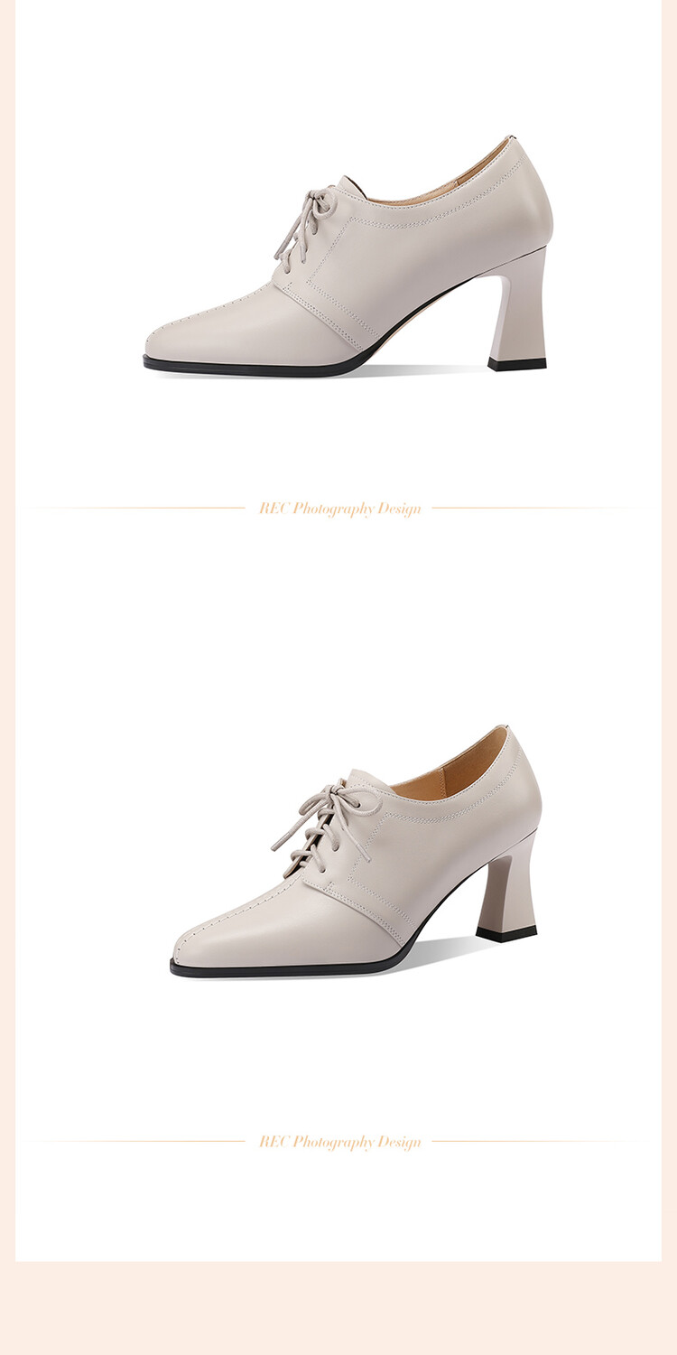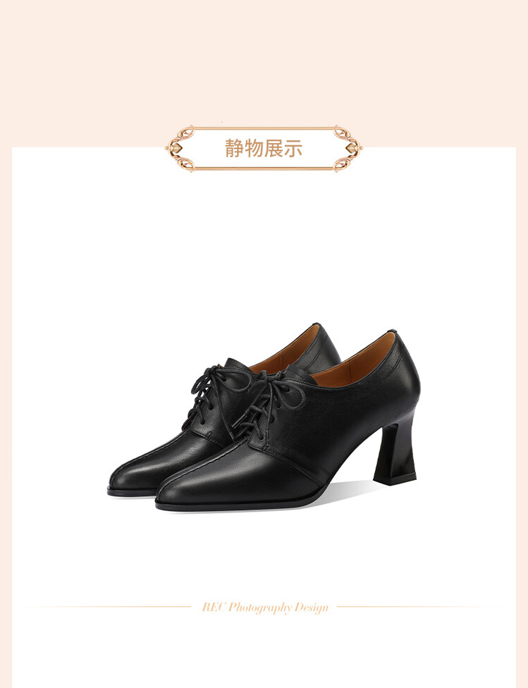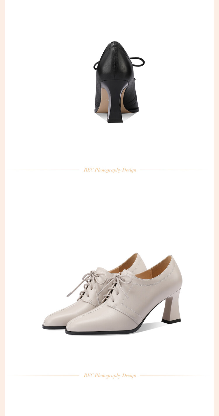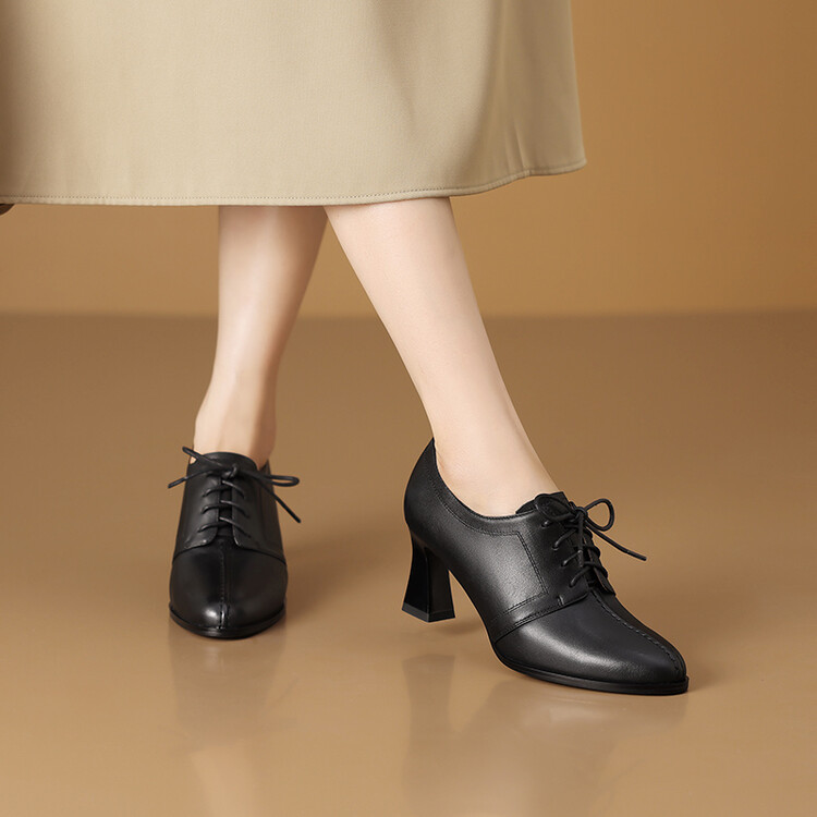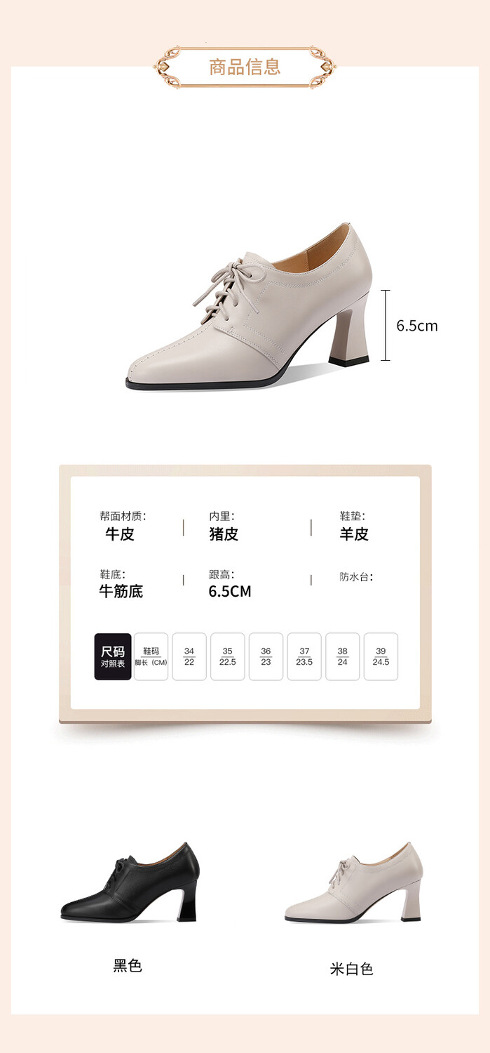 【预售5天】春秋款深口真皮单鞋粗跟高跟鞋系带女鞋时尚百搭英伦尖头小皮鞋HY&H3503