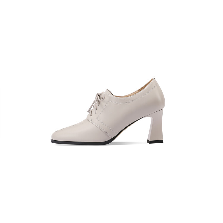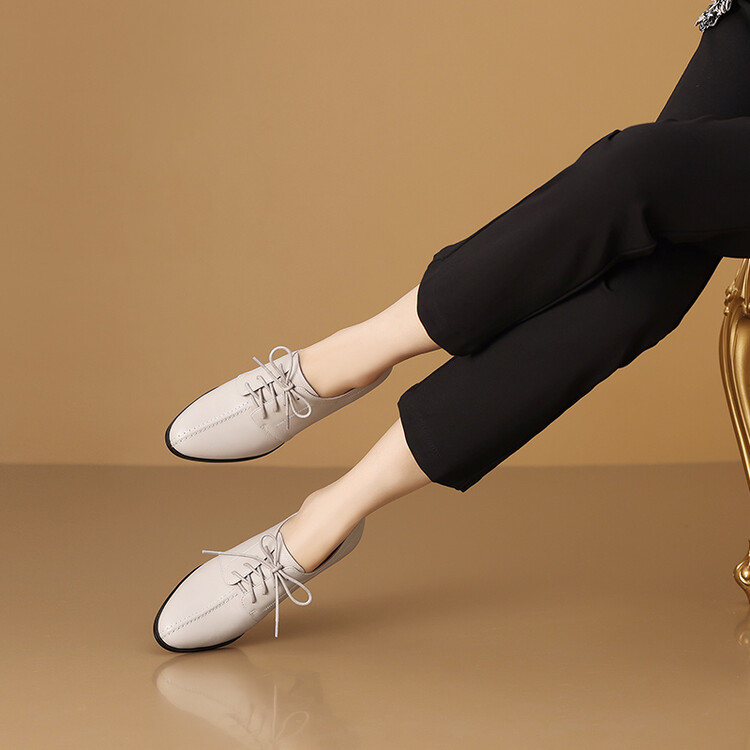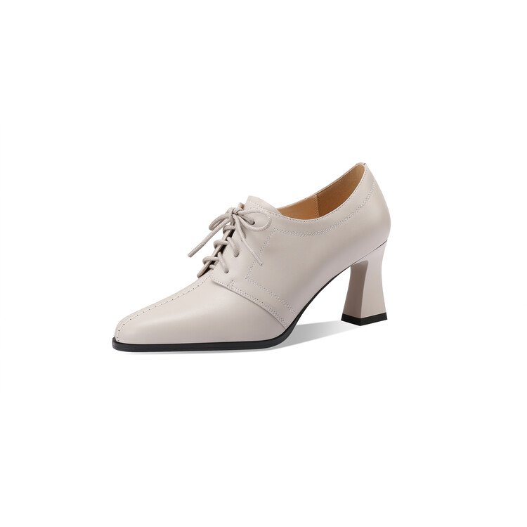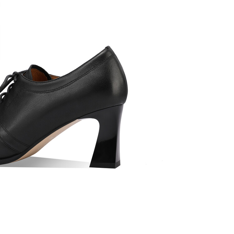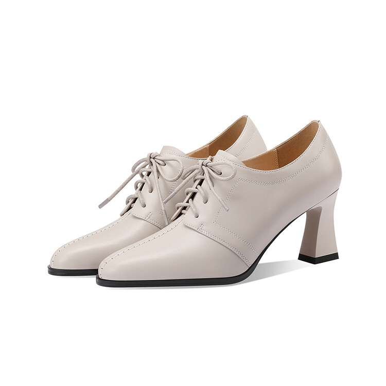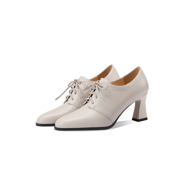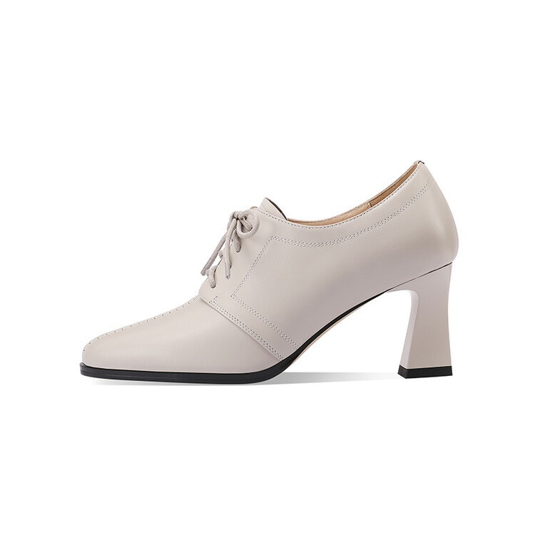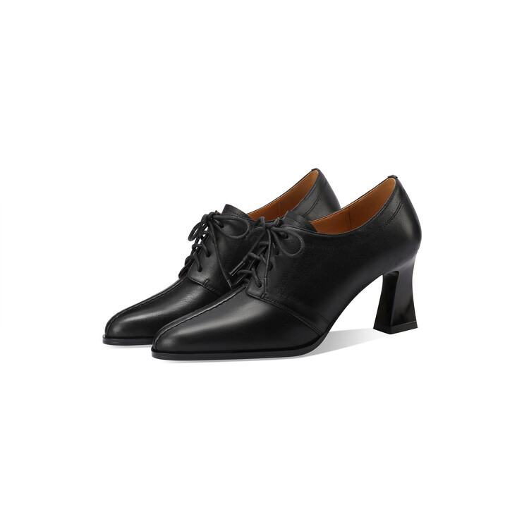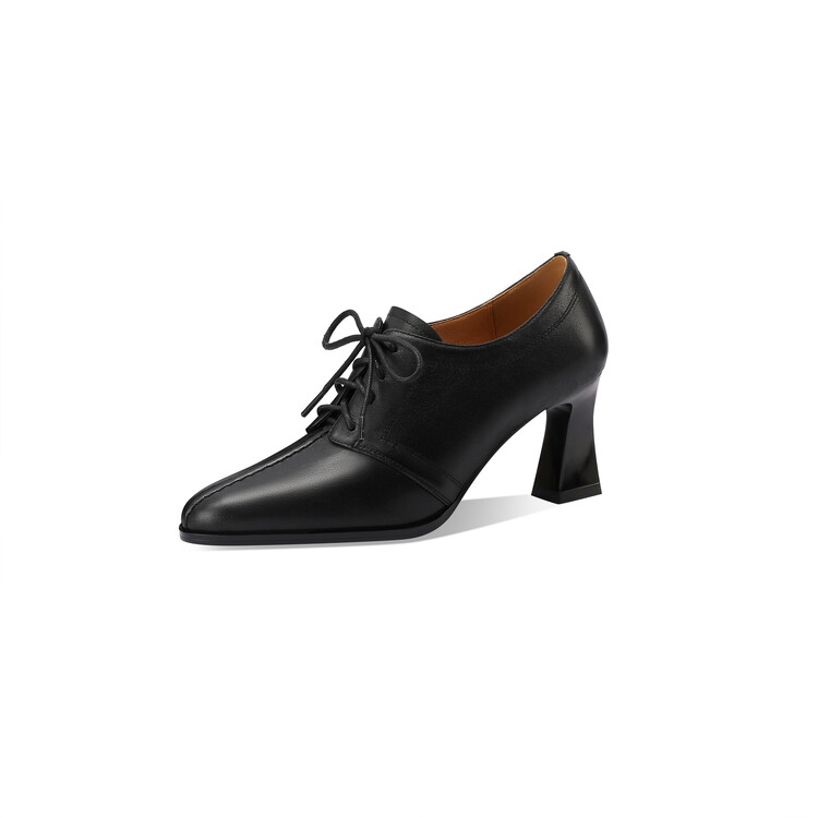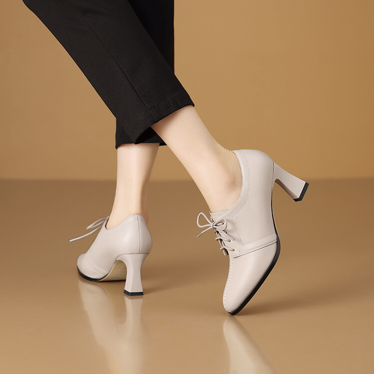 【预售5天】春秋款深口真皮单鞋粗跟高跟鞋系带女鞋时尚百搭英伦尖头小皮鞋HY&H3503