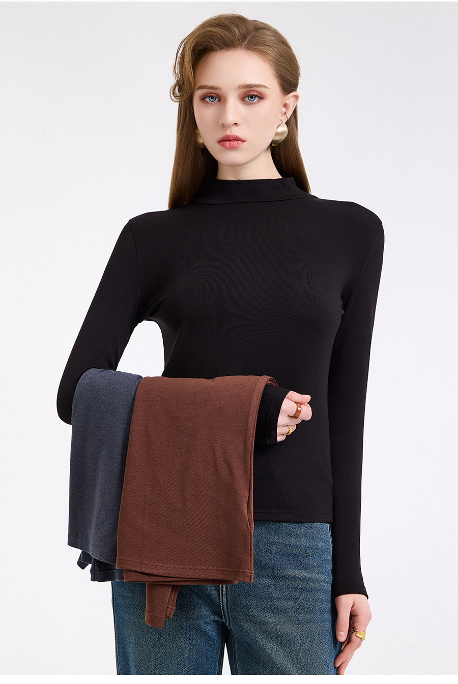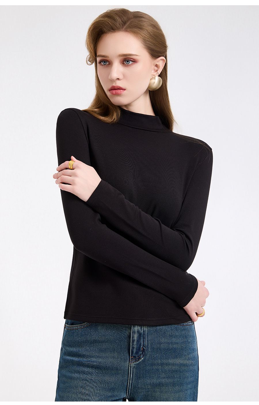 【三色可选】乔万尼轻奢百搭半高领保暖长袖羊毛修身打底衫EZ4C211