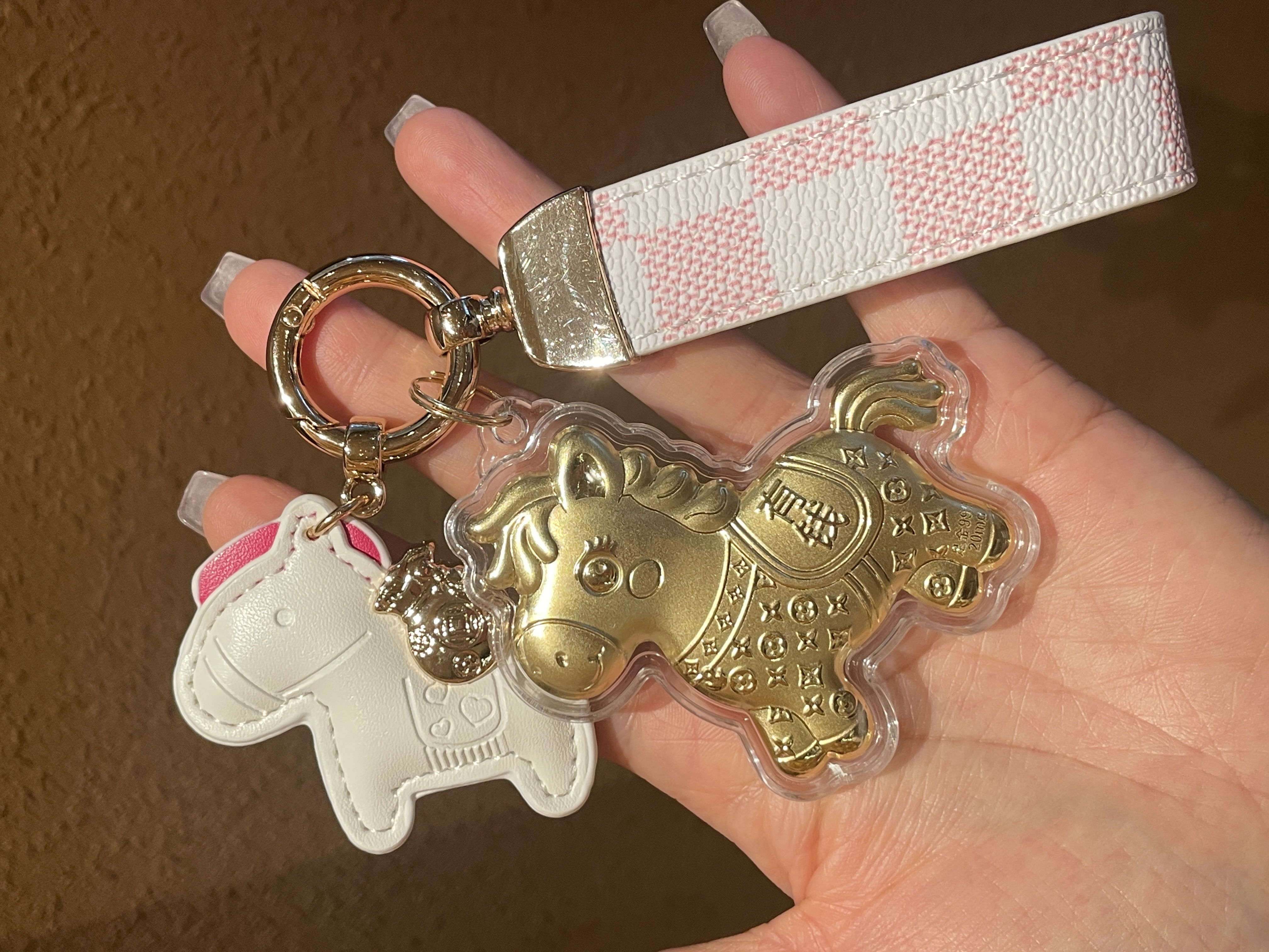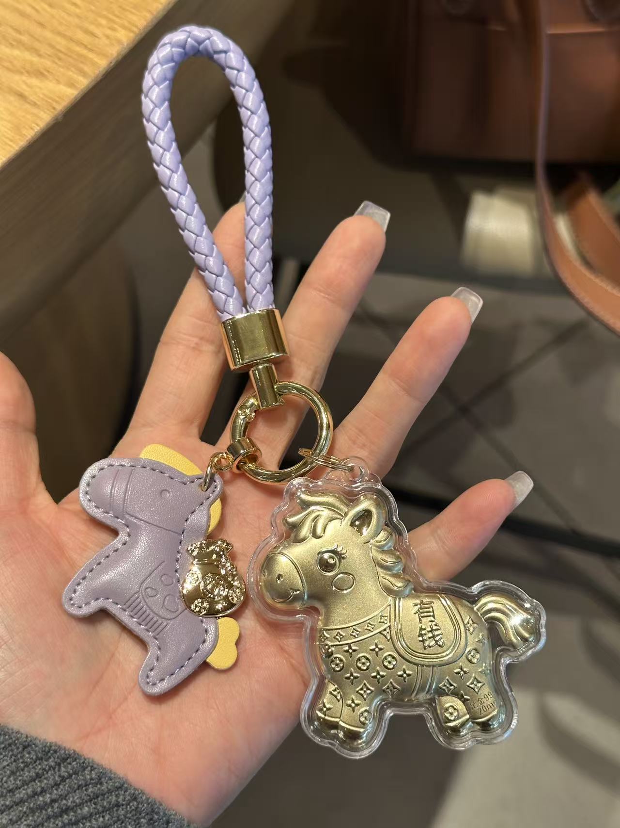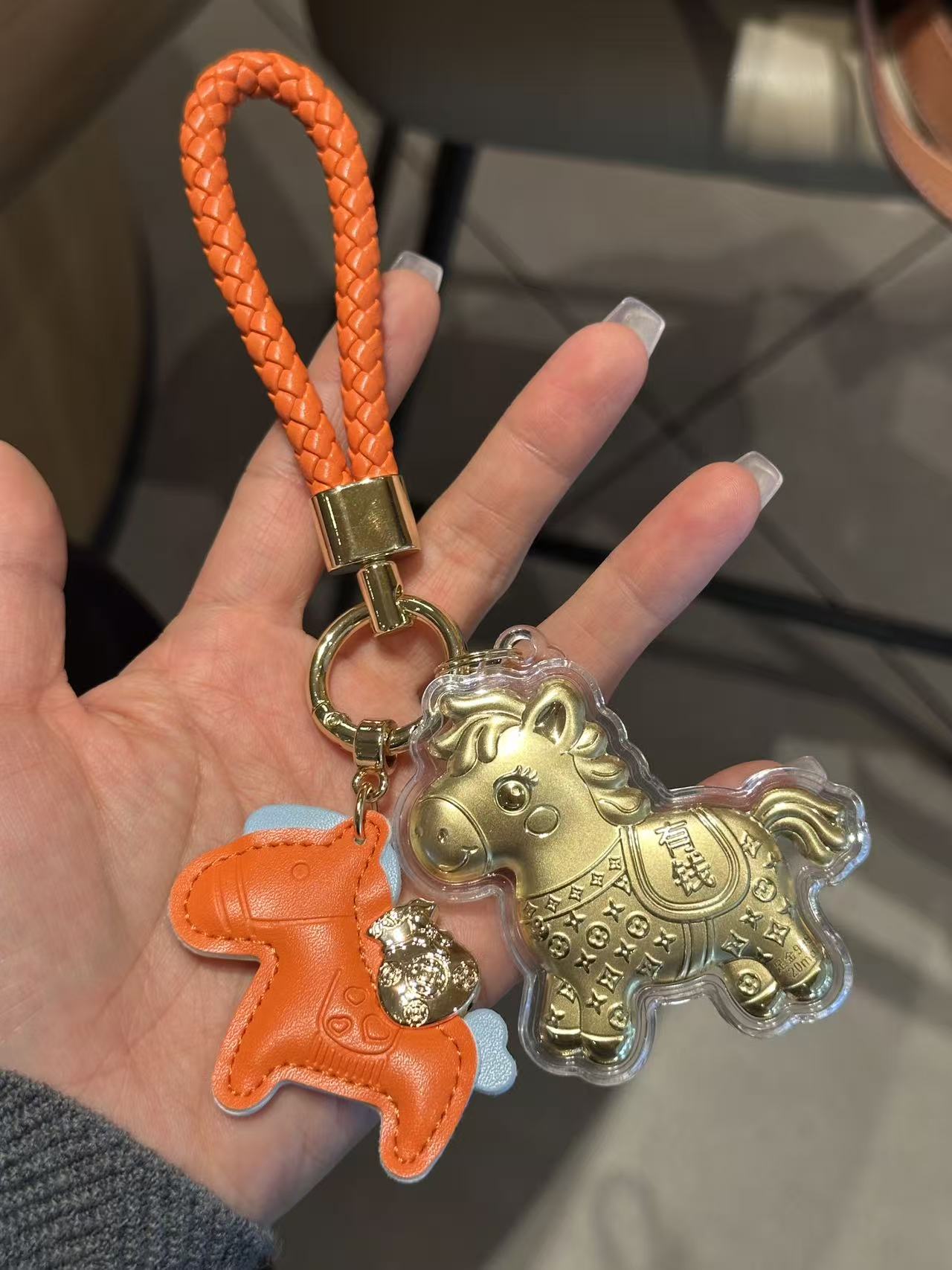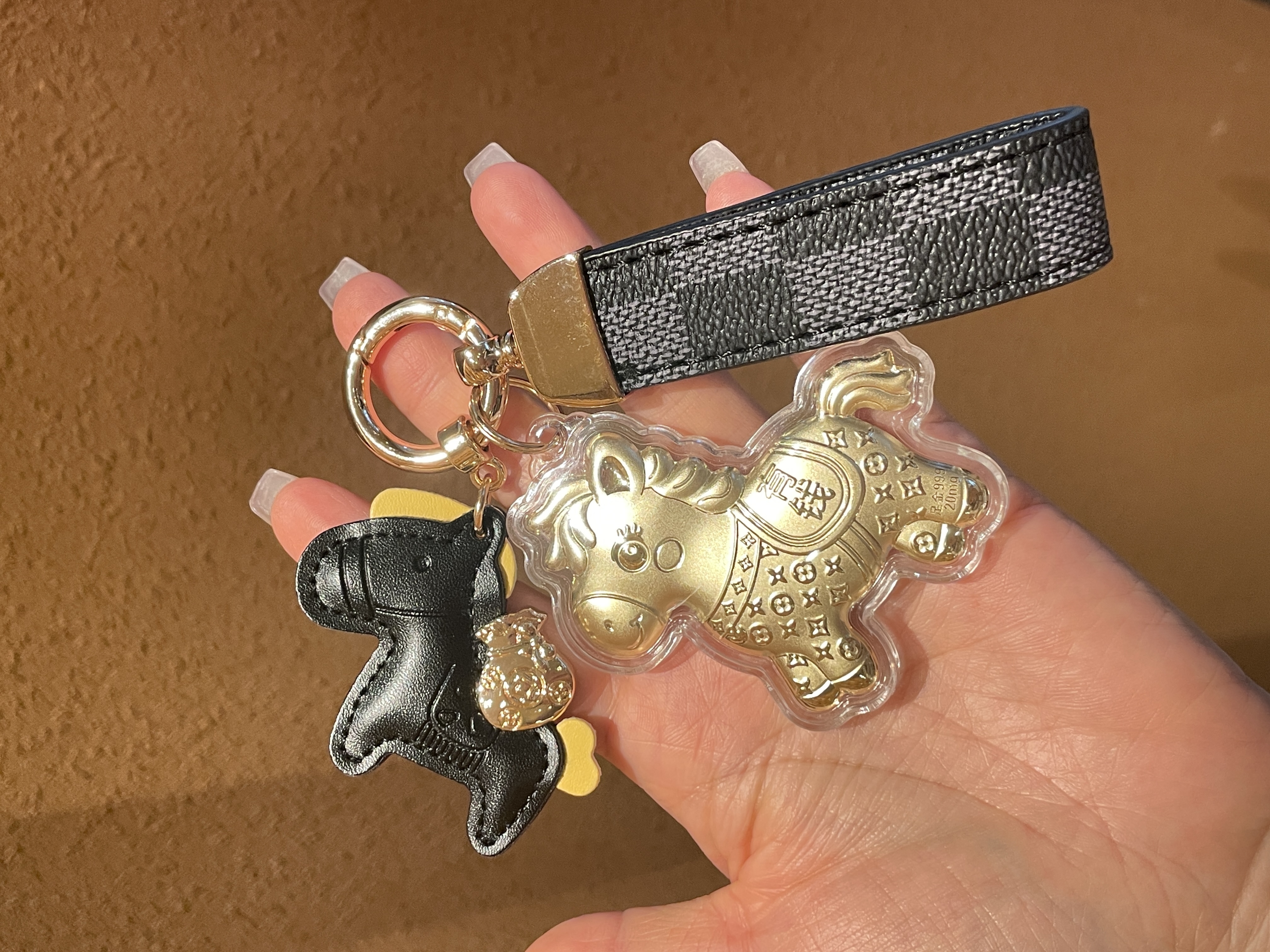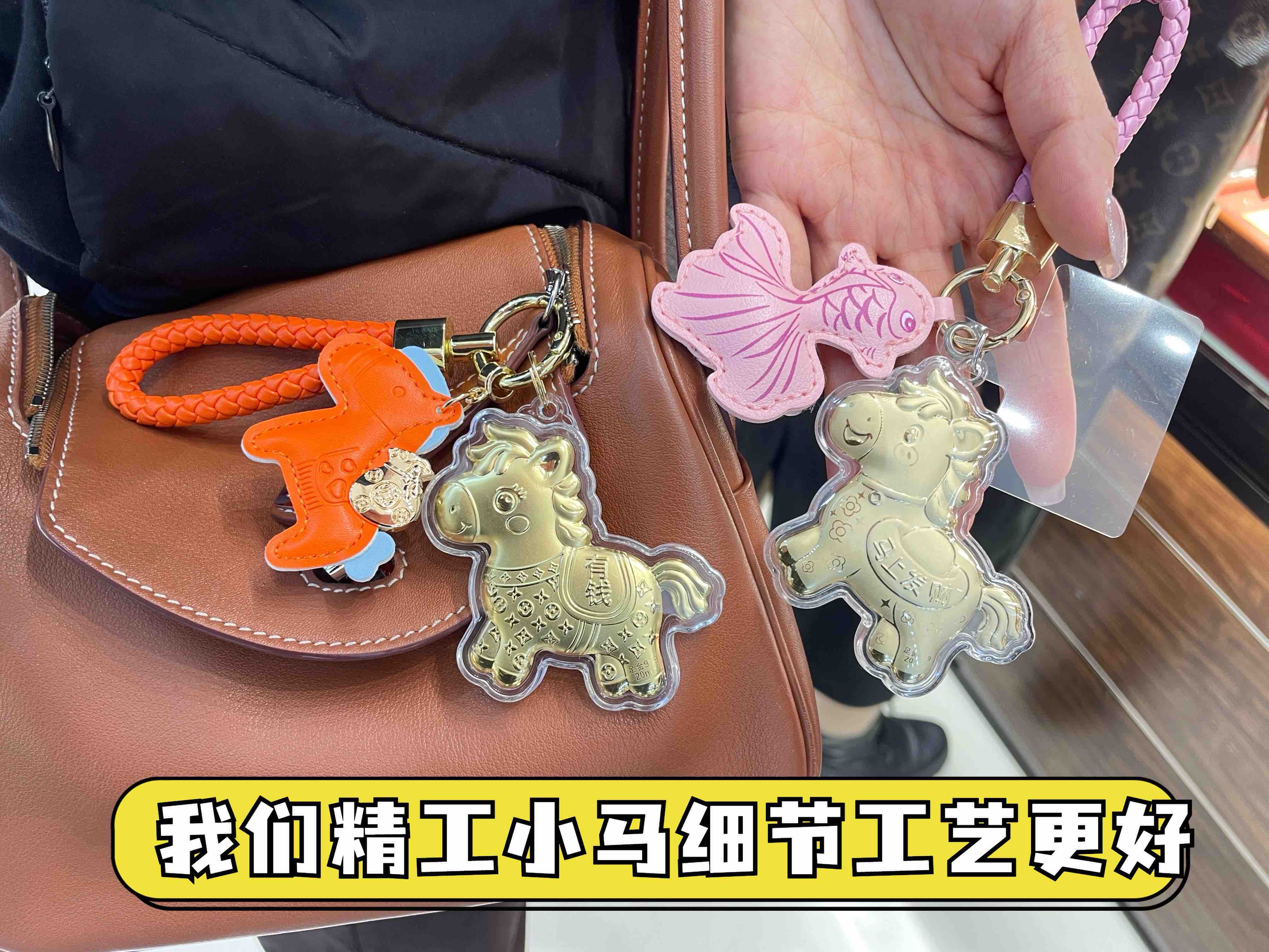 【拍2送赠品 新年必买!足金20mg!光谱仪可测】新年小马/财神 黄金钥匙扣 小金马包包挂件 手机挂绳