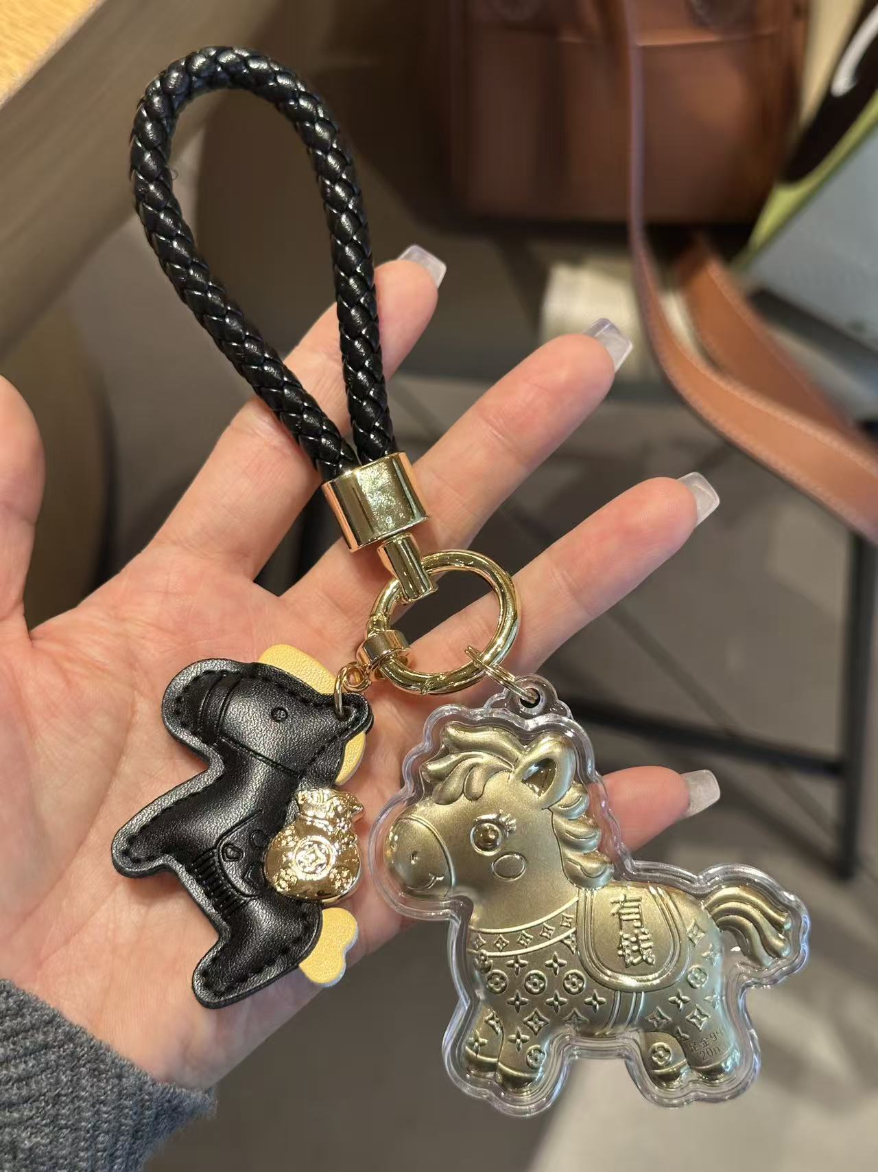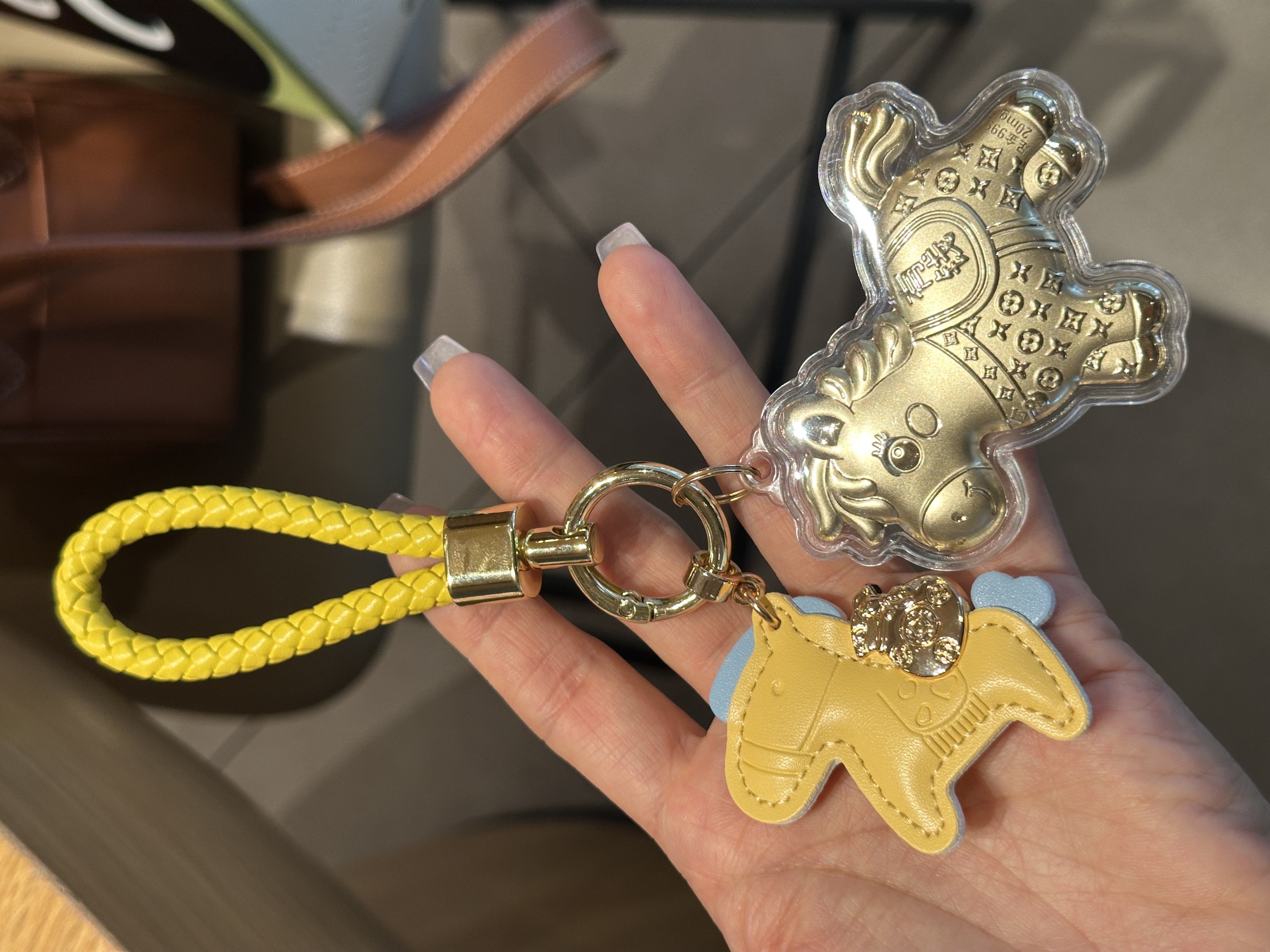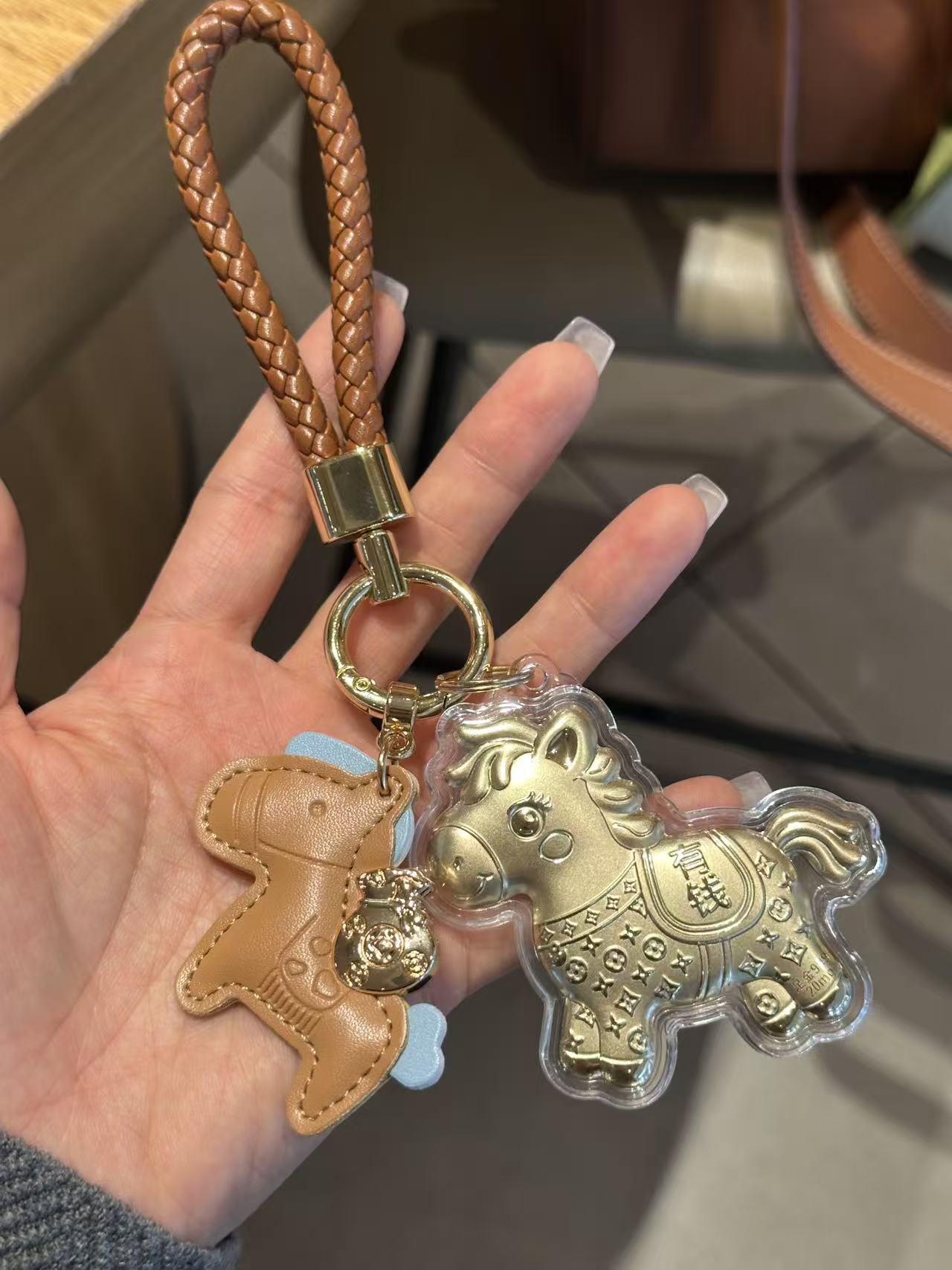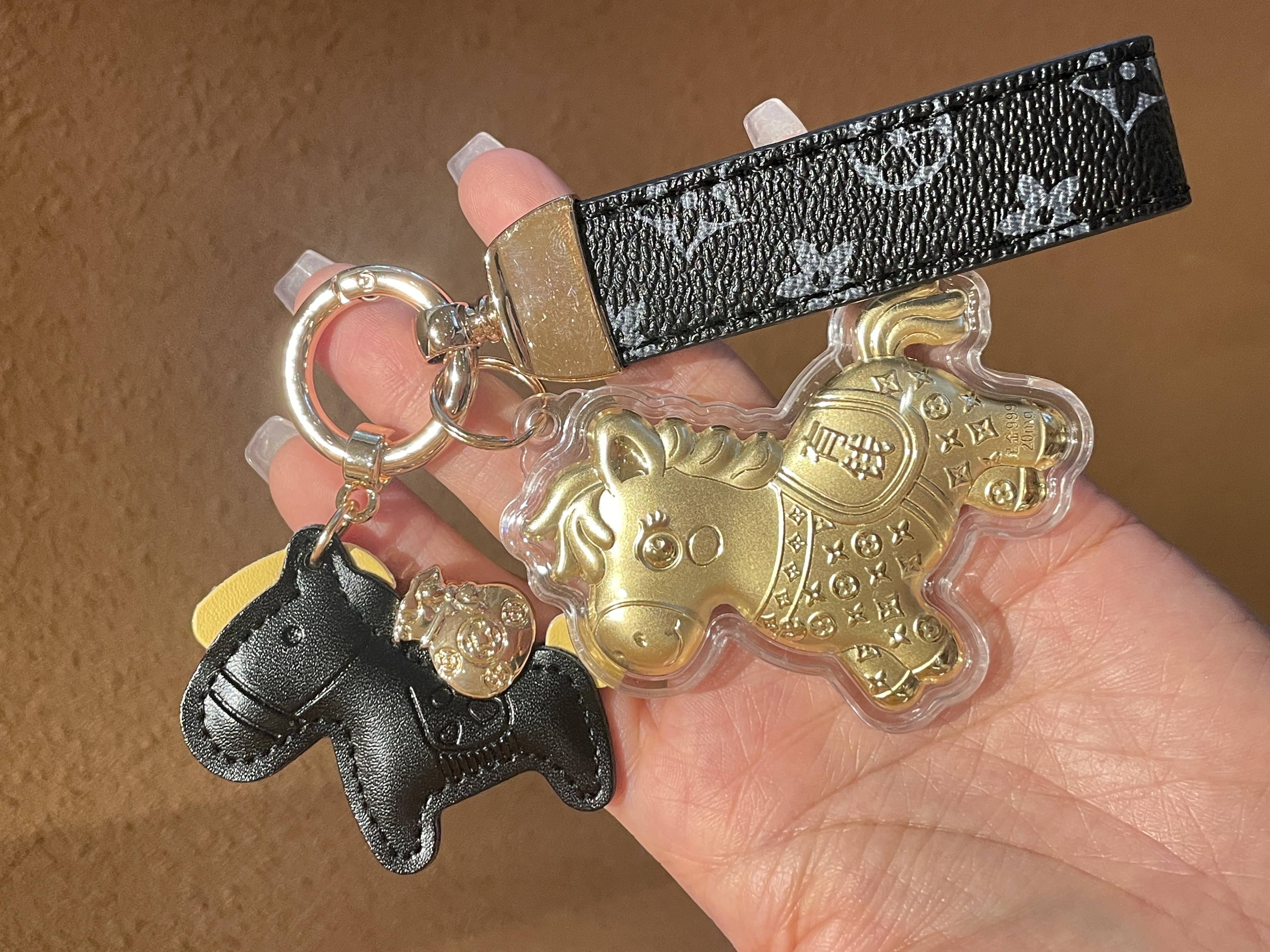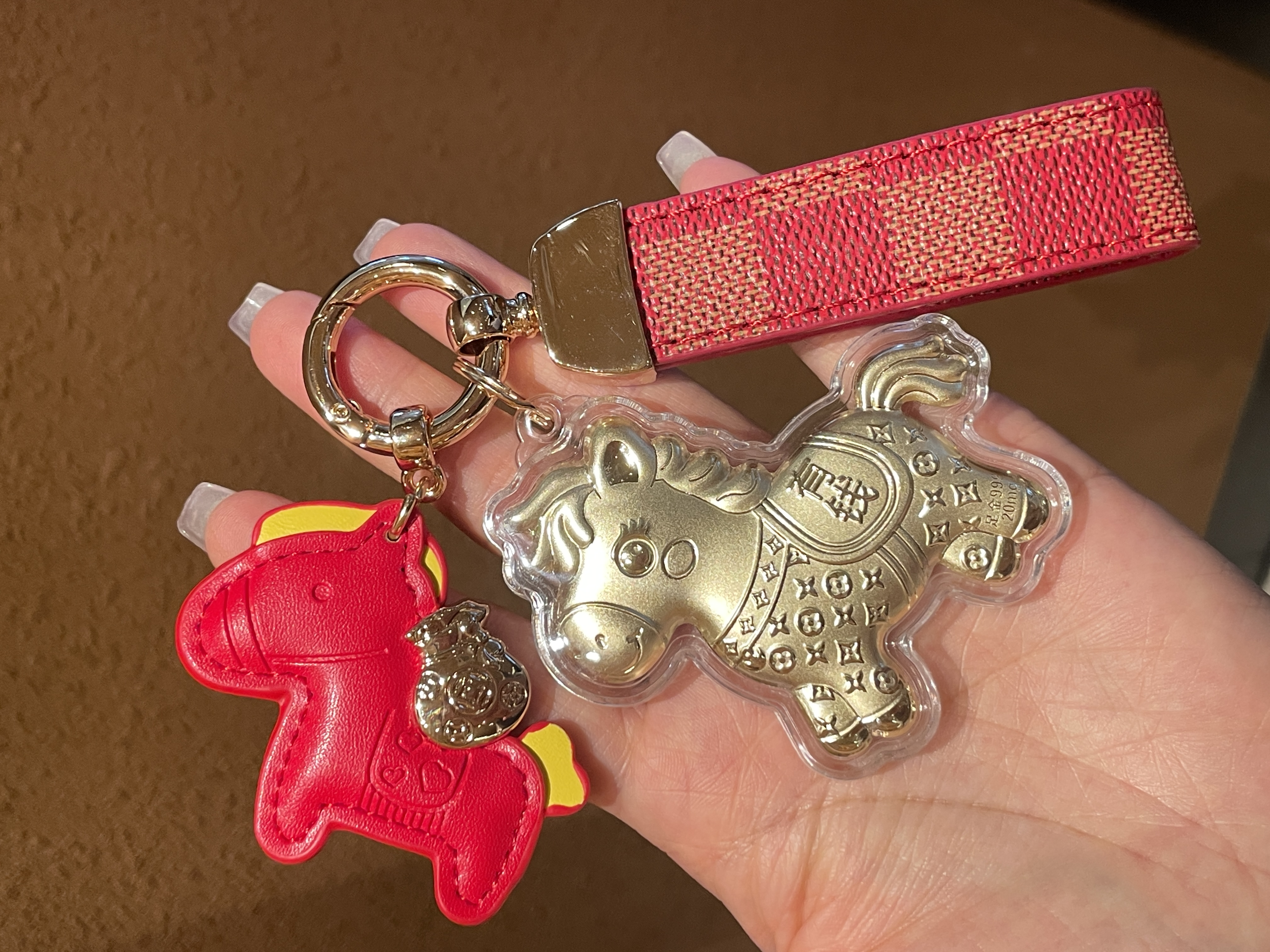 【拍2送赠品 新年必买!足金20mg!光谱仪可测】新年小马/财神 黄金钥匙扣 小金马包包挂件 手机挂绳