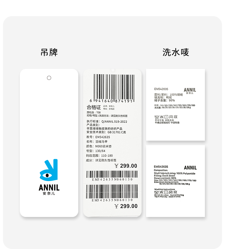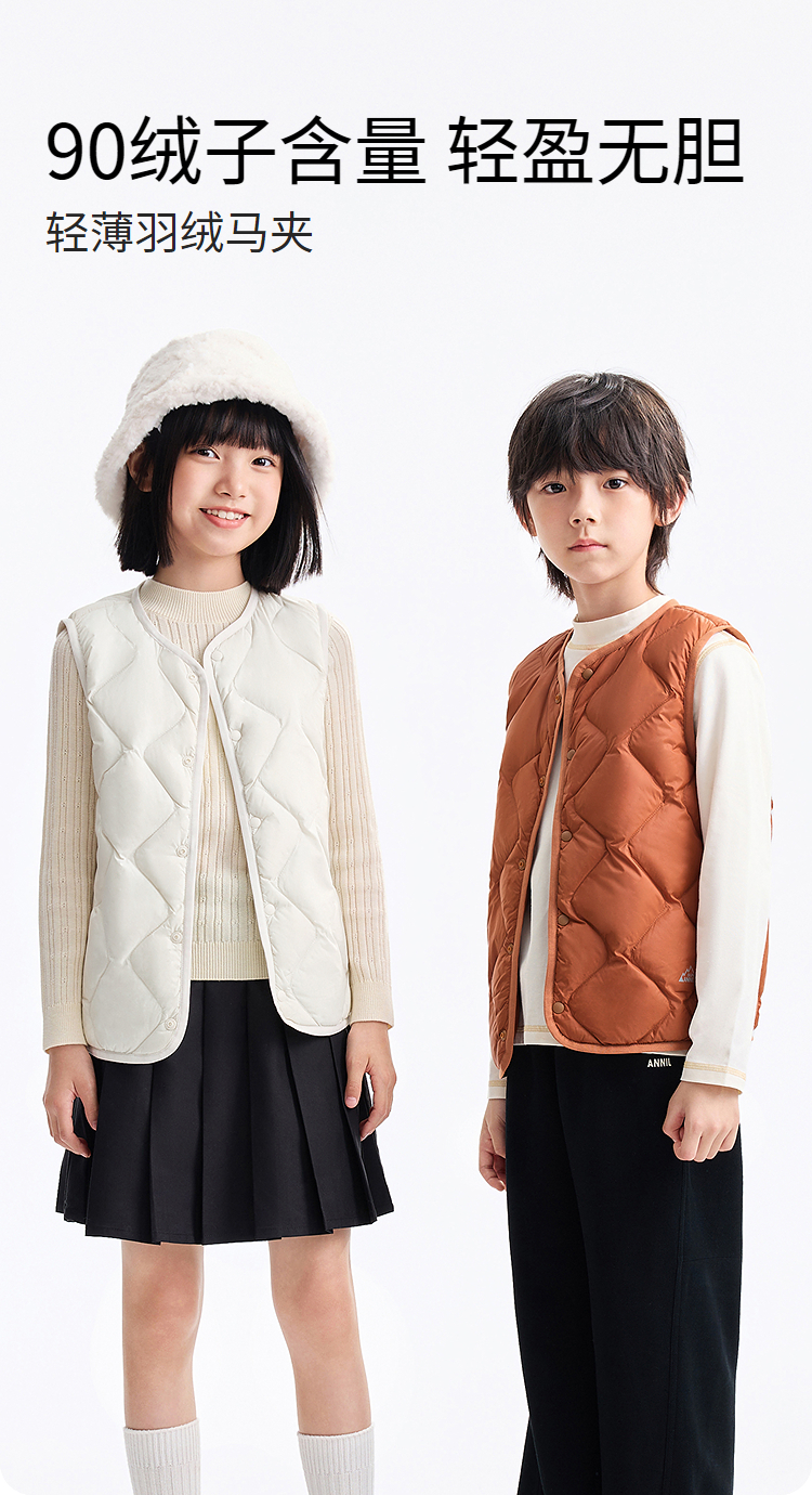 【5~15℃空气系列】校服内胆神器男女童羽绒马甲冬季新款安奈儿童装EM542635