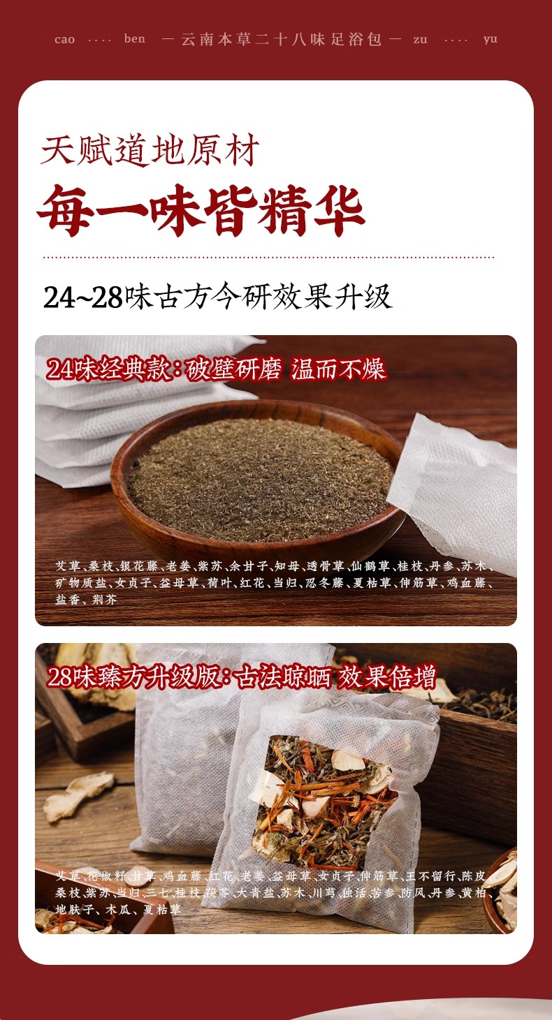 【品牌方直销】云南本草28味草本足浴包批发艾叶老姜红花艾草泡脚包去湿气包助睡