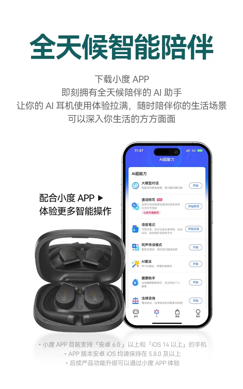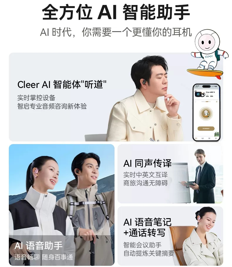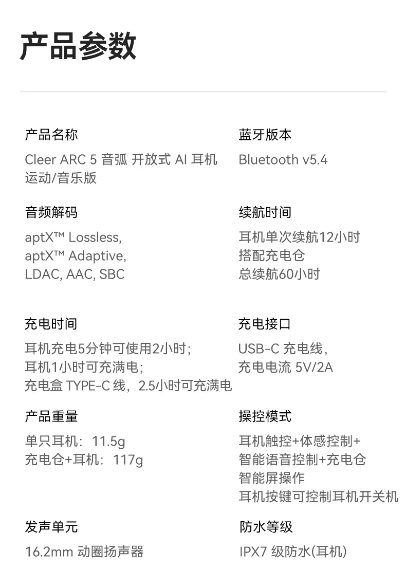 cleer Arc5代音弧不入耳开放式挂耳式AI智能杜比音效大师音质无线蓝牙运动耳机适配华为苹果小米