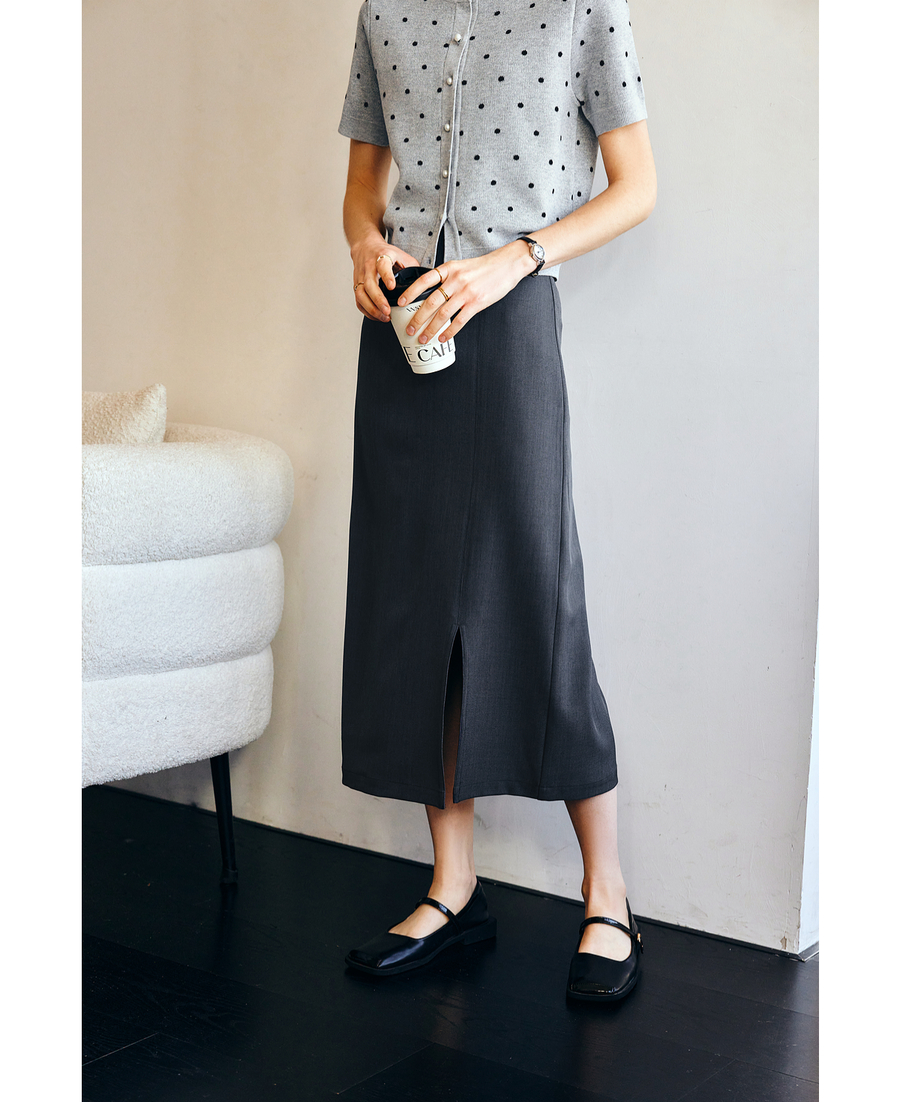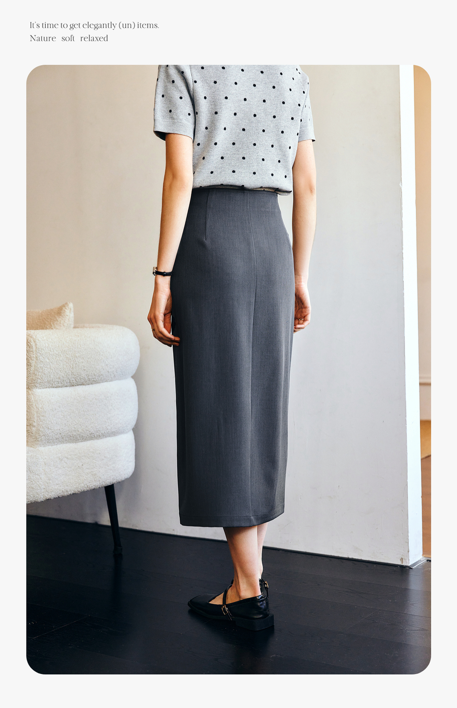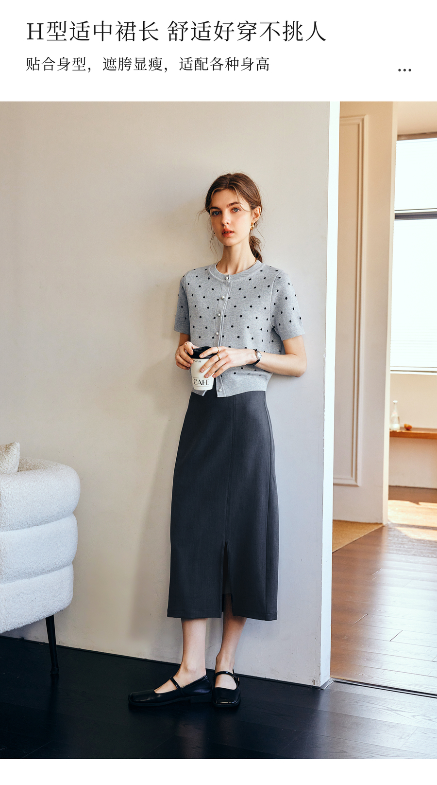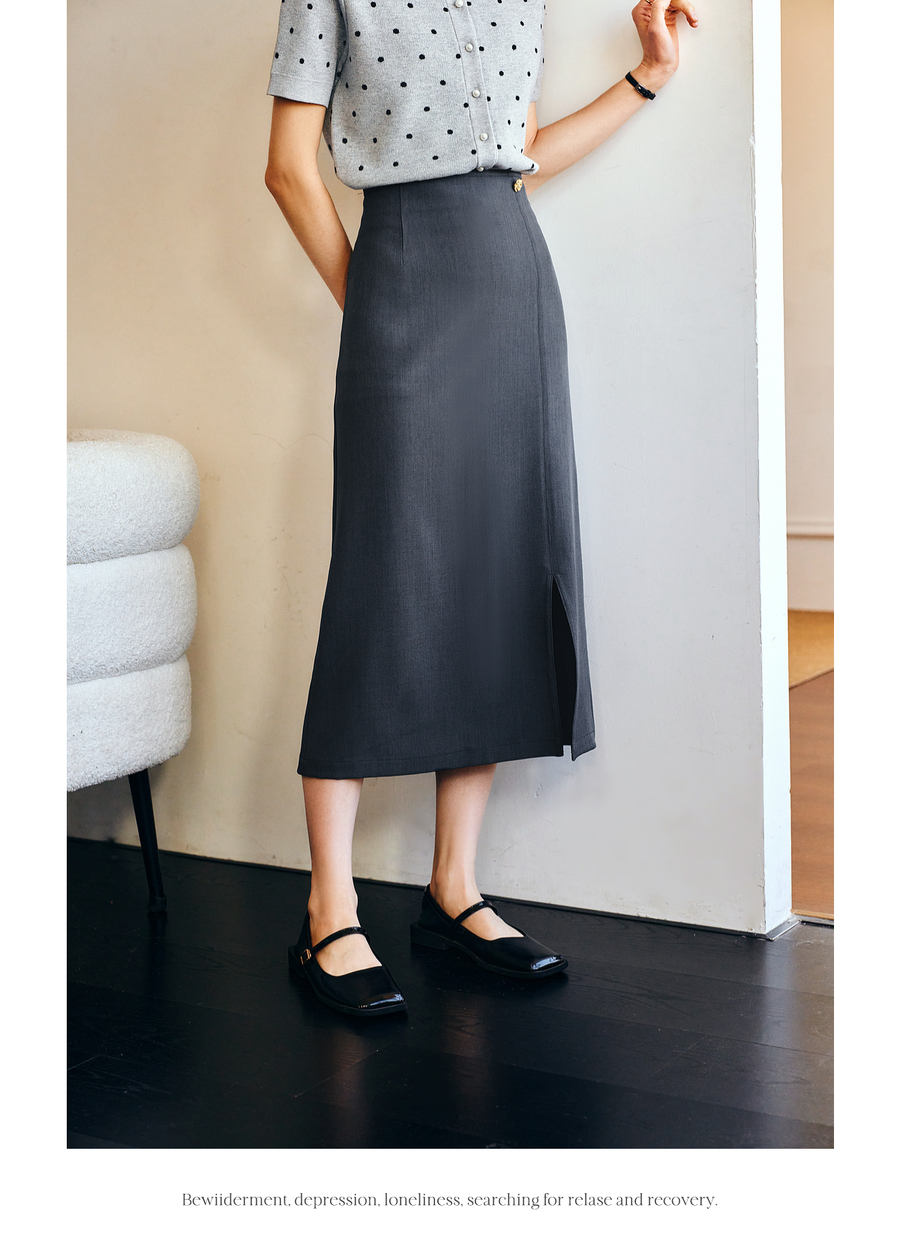 OLrain欧芮儿灰色直筒半身裙女春季2025新款通勤设计感开叉半裙