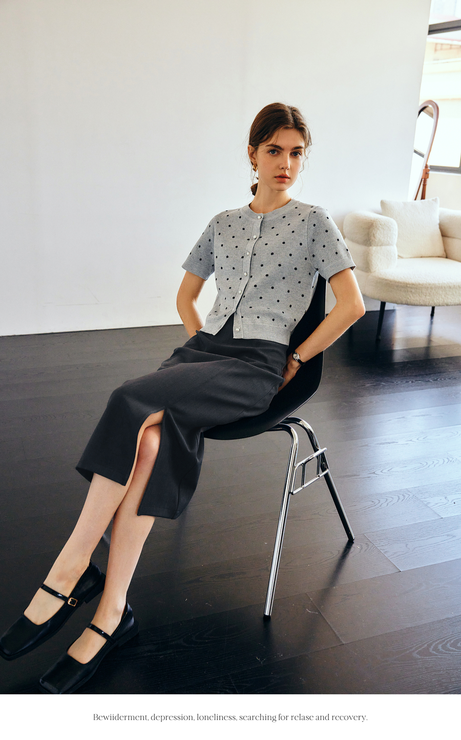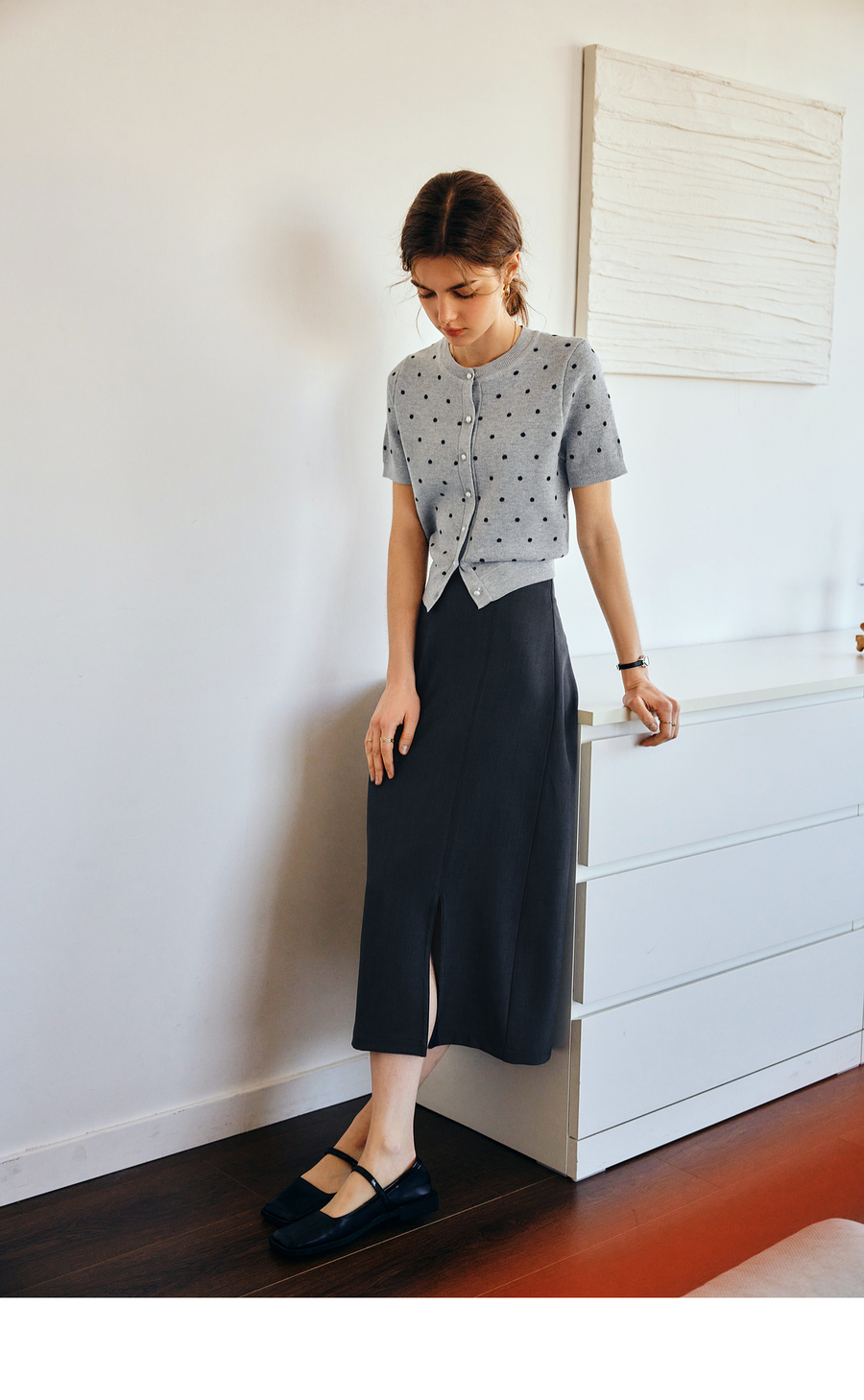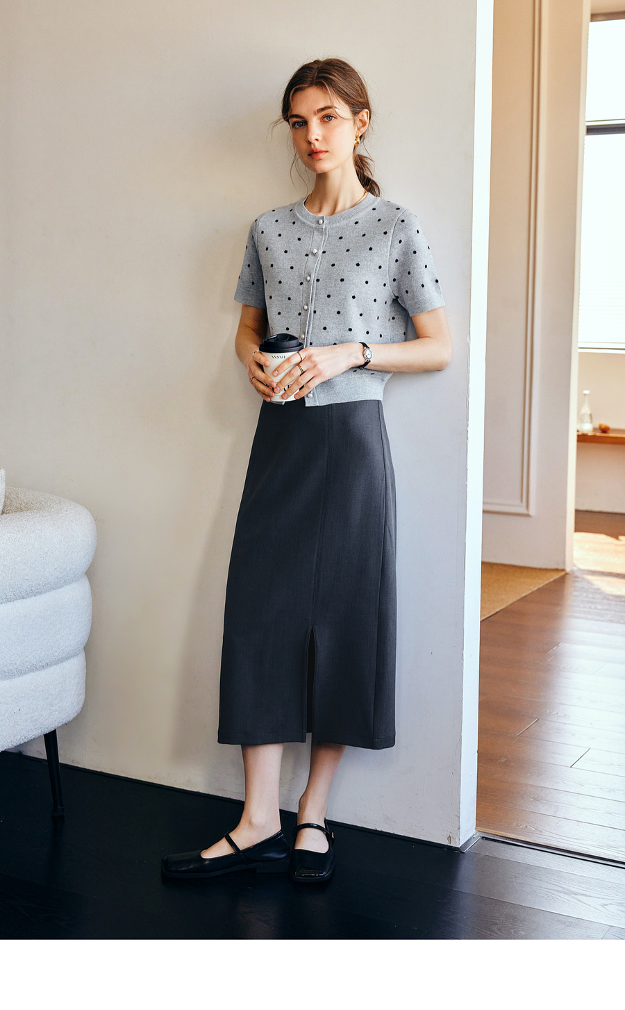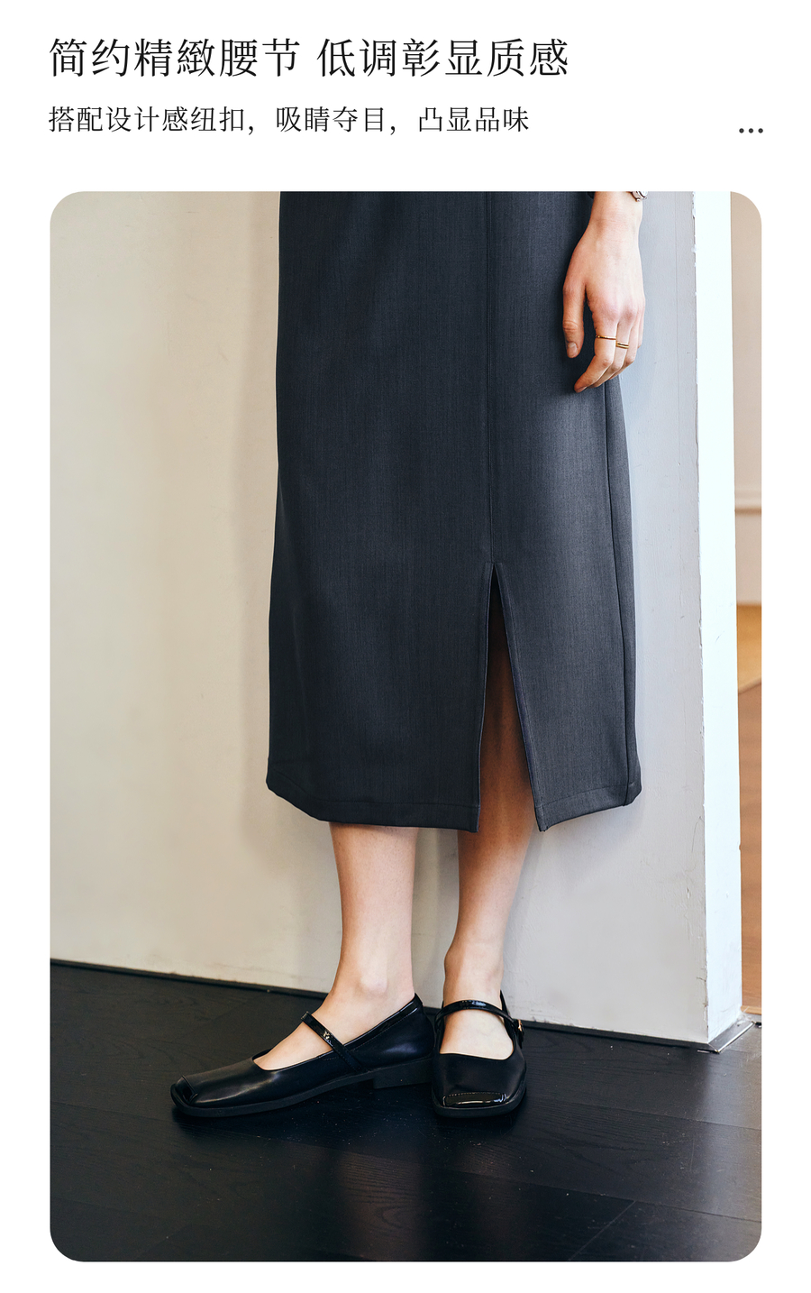 OLrain欧芮儿灰色直筒半身裙女春季2025新款通勤设计感开叉半裙