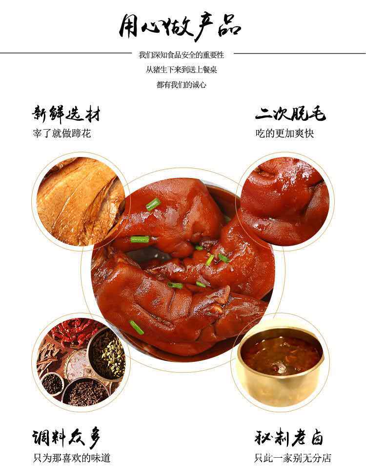 我们的猪蹄是酱猪蹄,味道很好,因夏天天气非常热,货一经发出就不允许拒收的,因为运输途中,在车厢里温度也很高,要是在拒收退货运回来的话,来来回回经过10天左右的高温长途运输,肯定有胀袋,压坏,漏气等原因会造成损失的,希望顾客理解