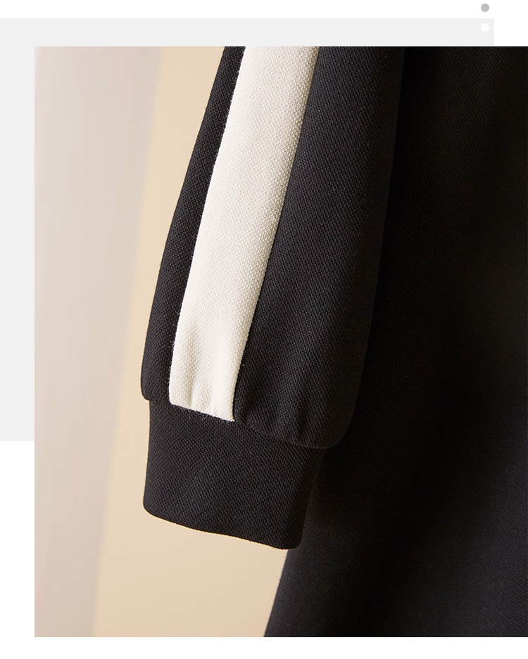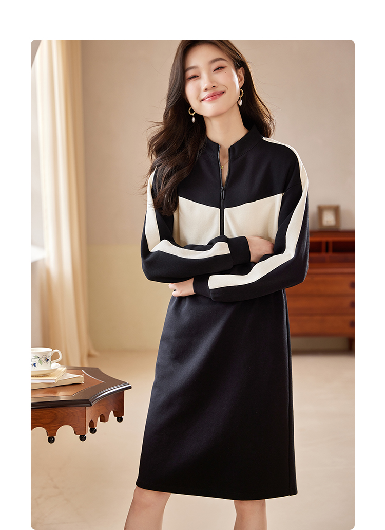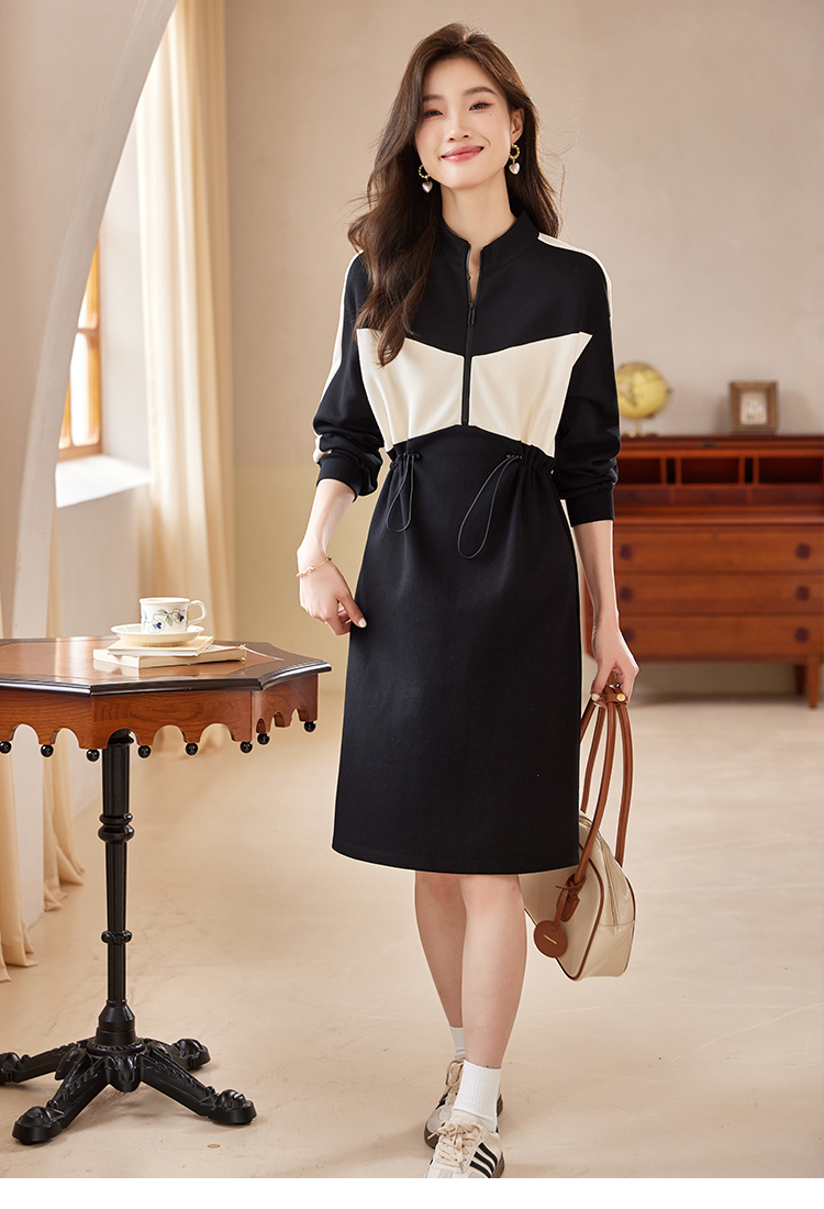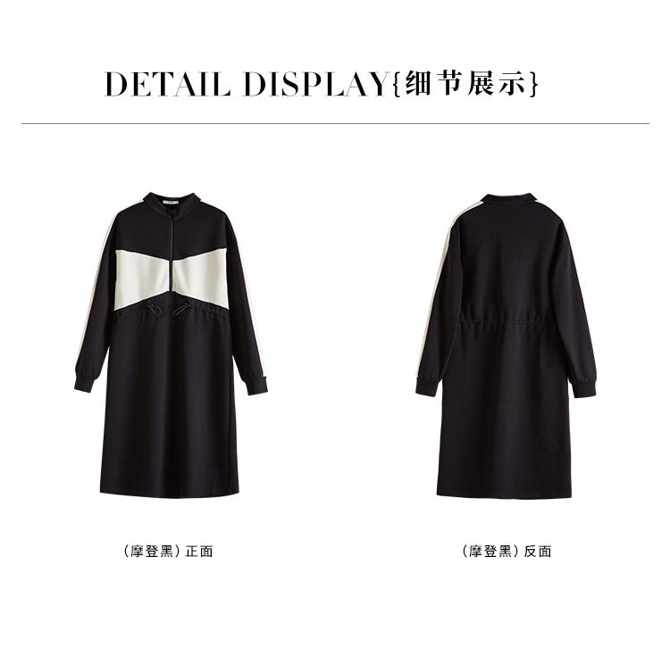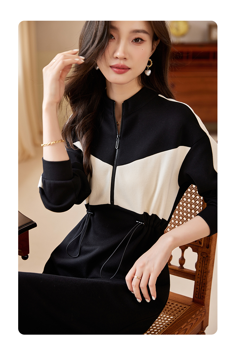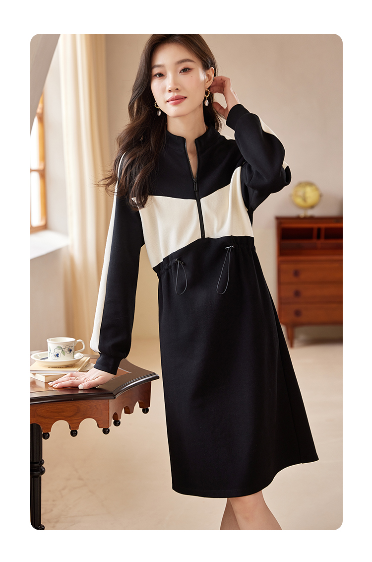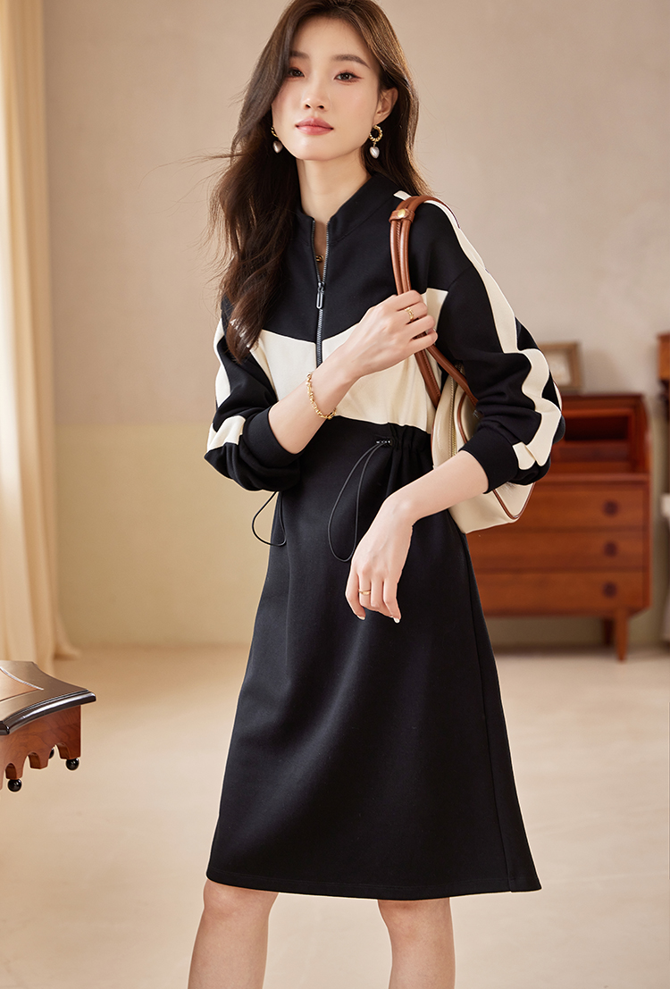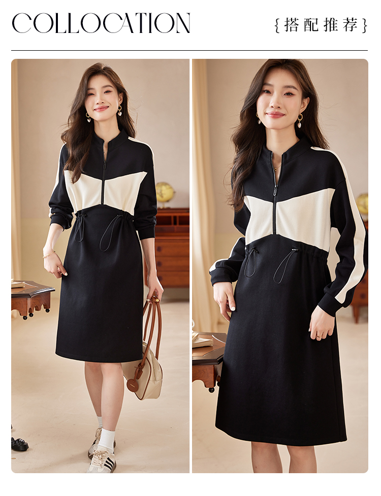 【专属特惠】熙世界运动休闲连衣裙女收腰抽绳显瘦时尚撞色卫衣裙2025秋季新款