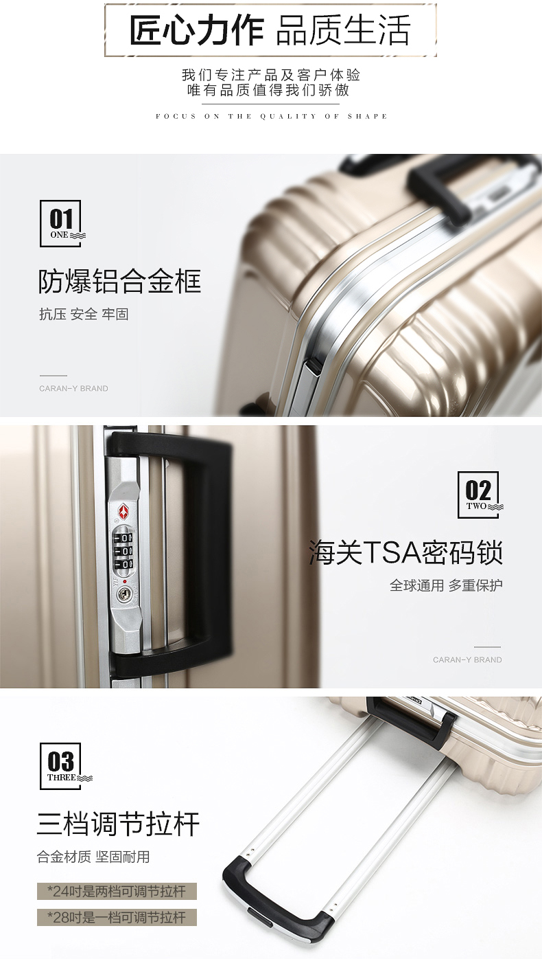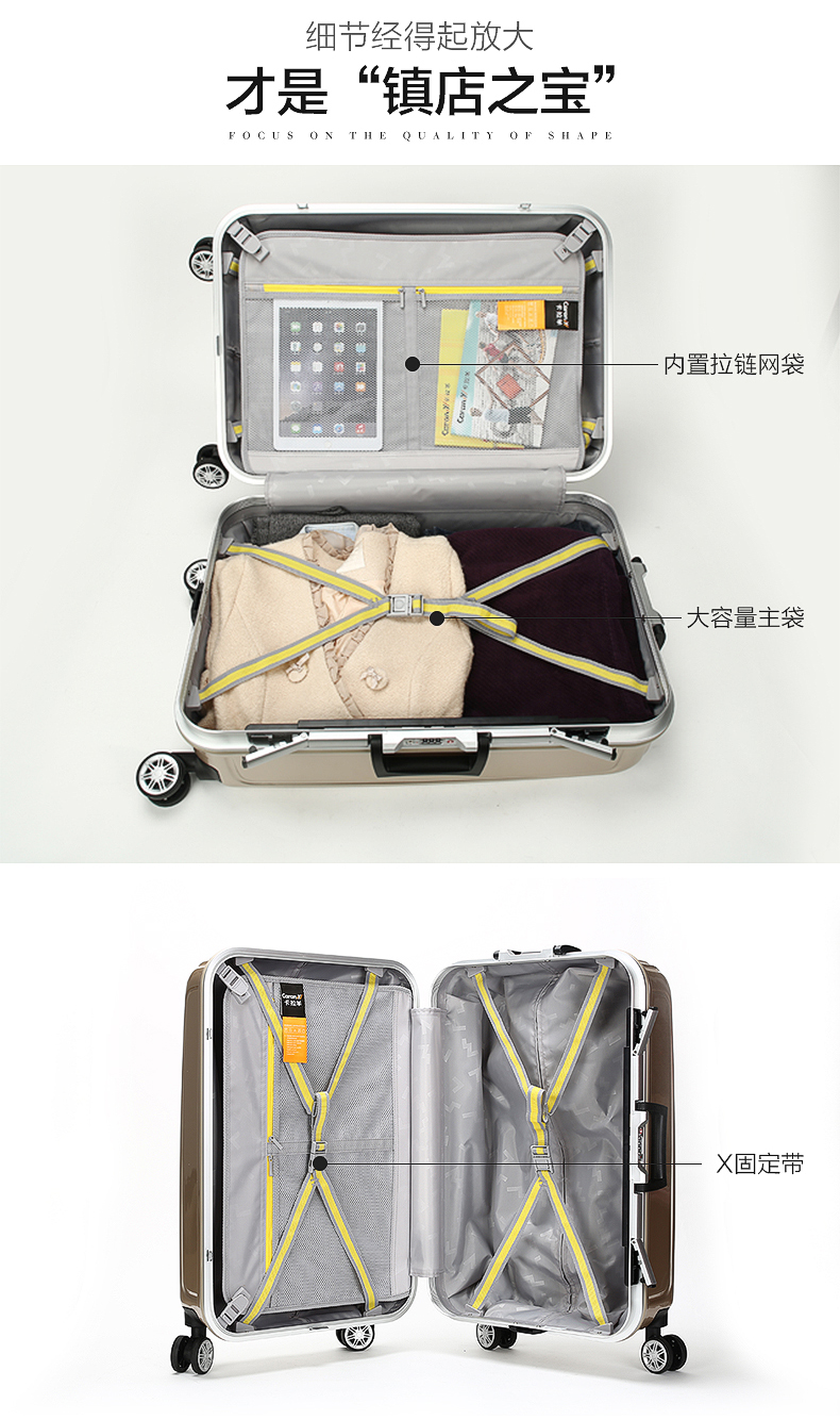 【已售罄】【物得猫 每日10点上新】飞机轮铝框旅行箱PC拉杆箱子登机行李箱20寸24寸28男女硬箱A-9278K
