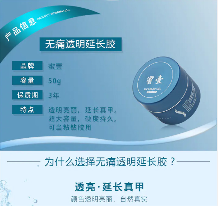 蜜壹无痛透明光疗延长胶50g装、日式免洗硬式封层(10瓶送一支光疗笔)